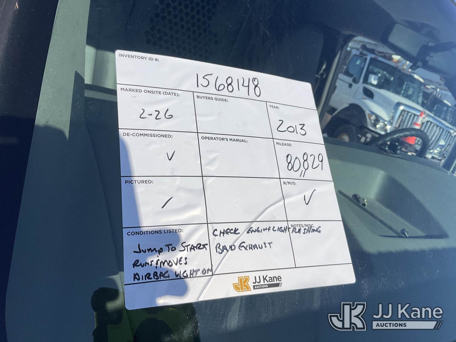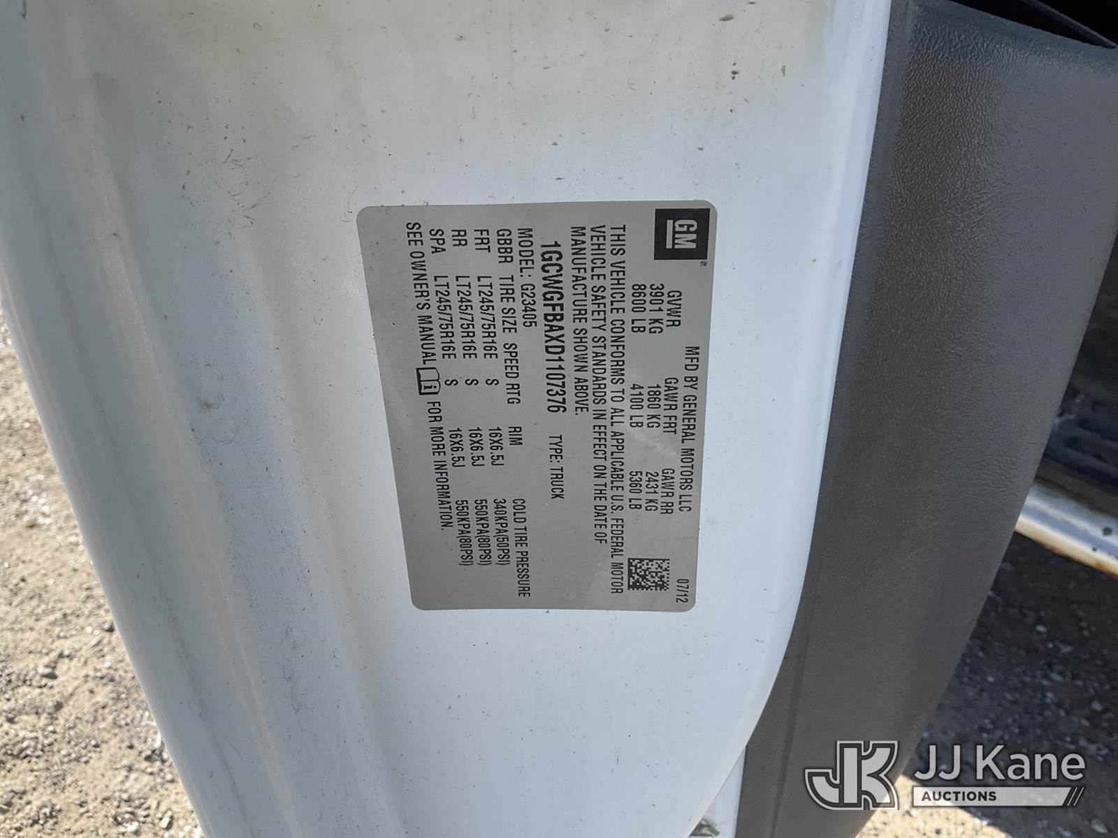 2013 Chevrolet Express G2500 Cargo Van, 8-cyl gas, Auto, A/C, (80,829 miles) (Runs. & Moves, Jump to Start, Check Engine Light On, Traction & Airbag Light On , Bad Exhaust) This is a Titled Item NOTE: This unit is being sold AS IS/WHERE IS via Timed Auction and is located in Rome, NY. Inspection & preview days for this unit are the 2 business days prior to the first day of items closing for this auction, item is located at 5835 Success Dr Rome, NY 13440 and hours of operations are 8a-4p. For pre-sale questions, please contact Ryan Jackson @ (315) 749-3790 or Ryan.Jackson@jjkane.com. (Buyer is responsible for removal. Assistance by consignor or JJ Kane Auctions is not assured.)