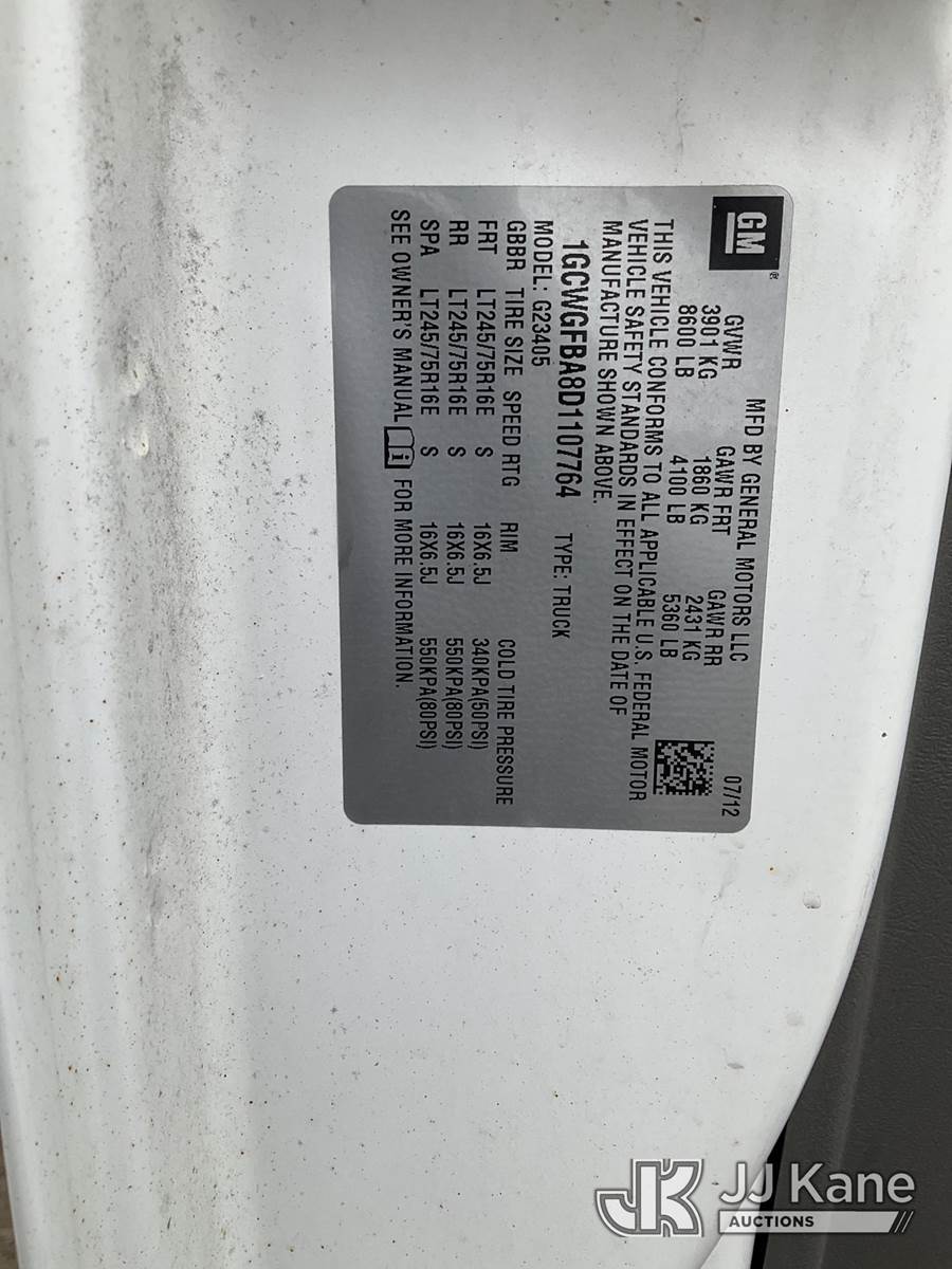 2013 Chevrolet Express G2500 Cargo Van, 8-cyl gas, Auto, A/C, (135,234 miles) (Runs & Moves, Jump To Start, ABS Light On Stability Trac Light On, Service Traction Control Message, Body & Rust Damage) This is a Titled Item NOTE: This unit is being sold AS IS/WHERE IS via Timed Auction and is located in Rome, NY. Inspection & preview days for this unit are the 2 business days prior to the first day of items closing for this auction, item is located at 5835 Success Dr Rome, NY 13440 and hours of operations are 8a-4p. For pre-sale questions, please contact Ryan Jackson @ (315) 749-3790 or Ryan.Jackson@jjkane.com. (Buyer is responsible for removal. Assistance by consignor or JJ Kane Auctions is not assured.)