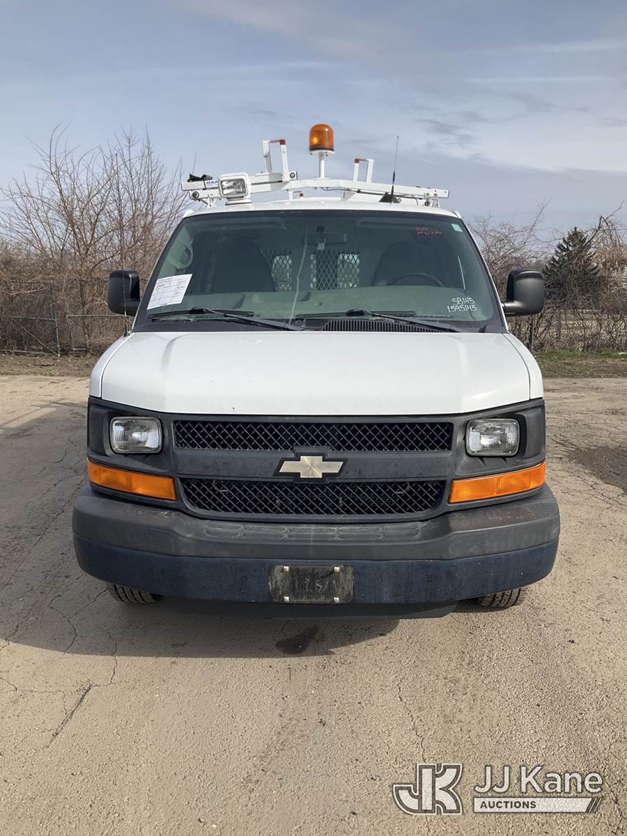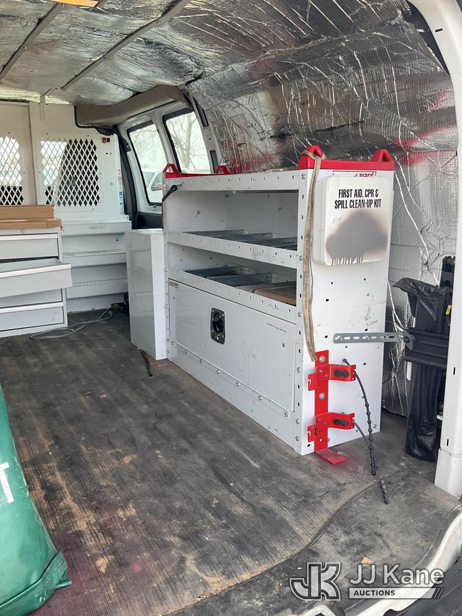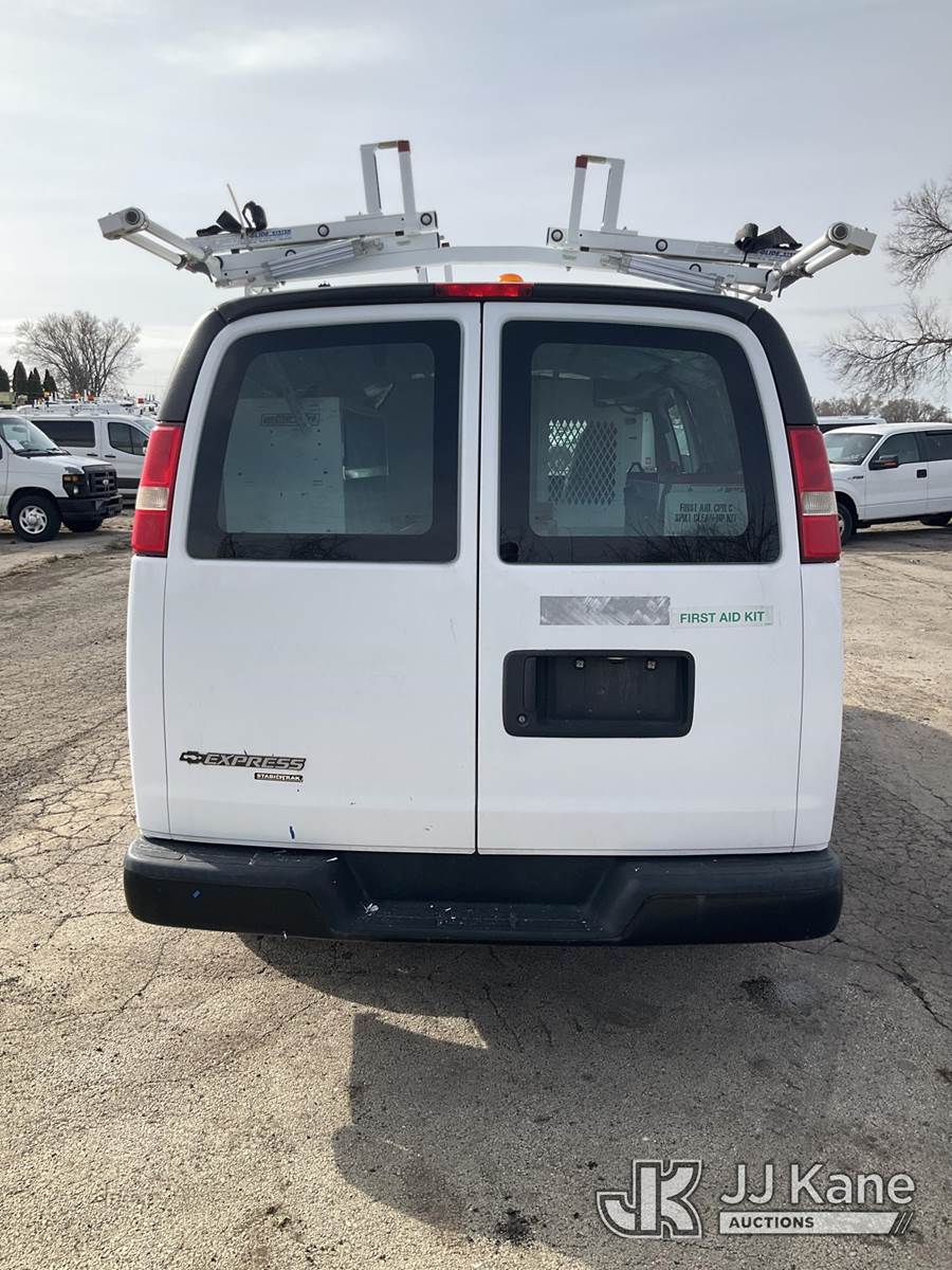 2013 Chevrolet Express G3500 Cargo Van, 6.0L V8 OHV 16V FFV gas, RWD, 6-Speed Automatic, A/C, with ladder rack, (79,910 miles) (Runs & Moves) (Mouse Odor) (Reads 2,546 hours) This is a Titled Item NOTE: This unit is being sold AS IS/WHERE IS via Timed Auction and is located in South Beloit, IL. Inspection & preview days for this unit are the 2 business days prior to the first day of items closing for this auction, item is located at 14354 Dearborn Ave South Beloit, IL and hours of operations are 8a-4p. For pre-sale questions, please contact Derek Eklund at (608) 904-0618 or (derek.eklund@jjkane.com). (Buyer is responsible for removal. Assistance by consignor or JJ Kane Auctions is not assured.)
