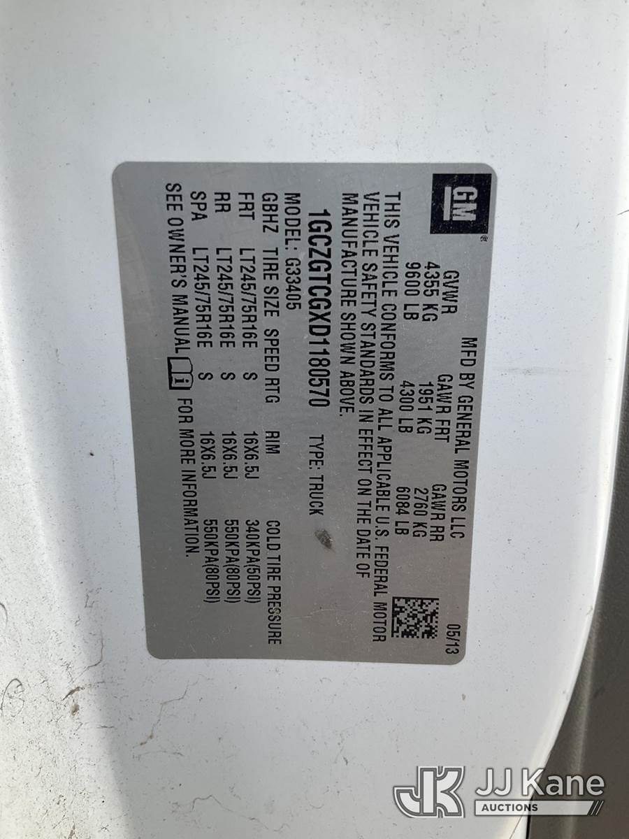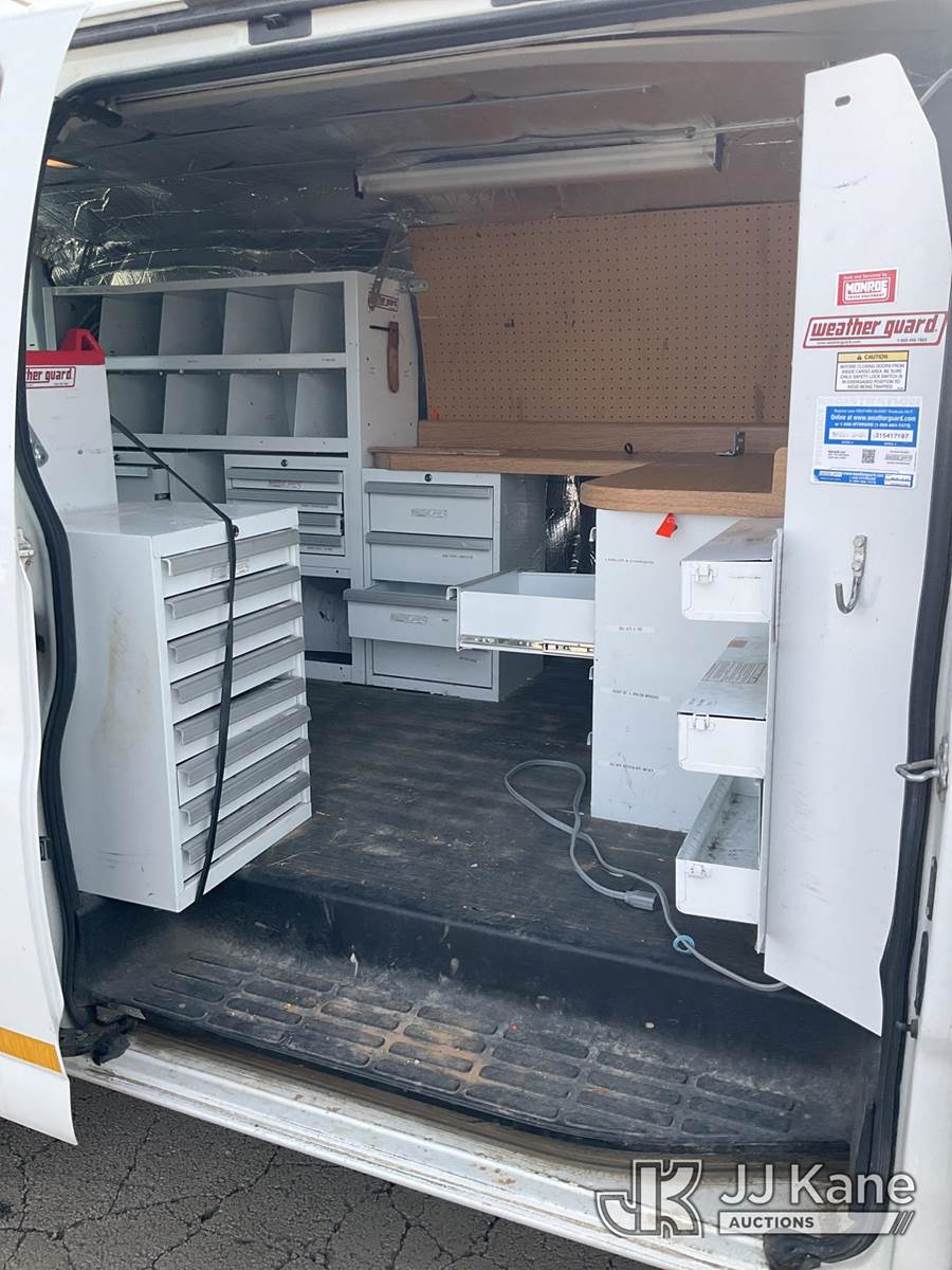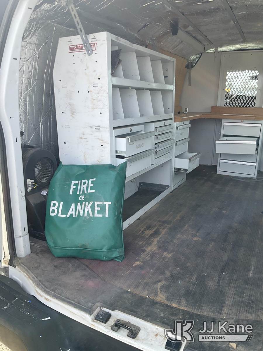 2013 Chevrolet Express G3500 Cargo Van, 6.0L V8 OHV 16V FFV gas, RWD, 6-Speed Automatic, A/C, with ladder rack, (79,910 miles) (Runs & Moves) (Mouse Odor) (Reads 2,546 hours) This is a Titled Item NOTE: This unit is being sold AS IS/WHERE IS via Timed Auction and is located in South Beloit, IL. Inspection & preview days for this unit are the 2 business days prior to the first day of items closing for this auction, item is located at 14354 Dearborn Ave South Beloit, IL and hours of operations are 8a-4p. For pre-sale questions, please contact Derek Eklund at (608) 904-0618 or (derek.eklund@jjkane.com). (Buyer is responsible for removal. Assistance by consignor or JJ Kane Auctions is not assured.)