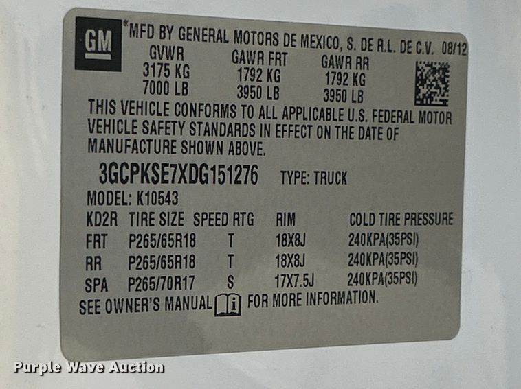 VIN: 3GCPKSE7XDG151276
