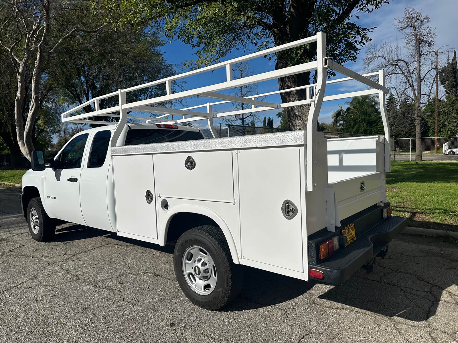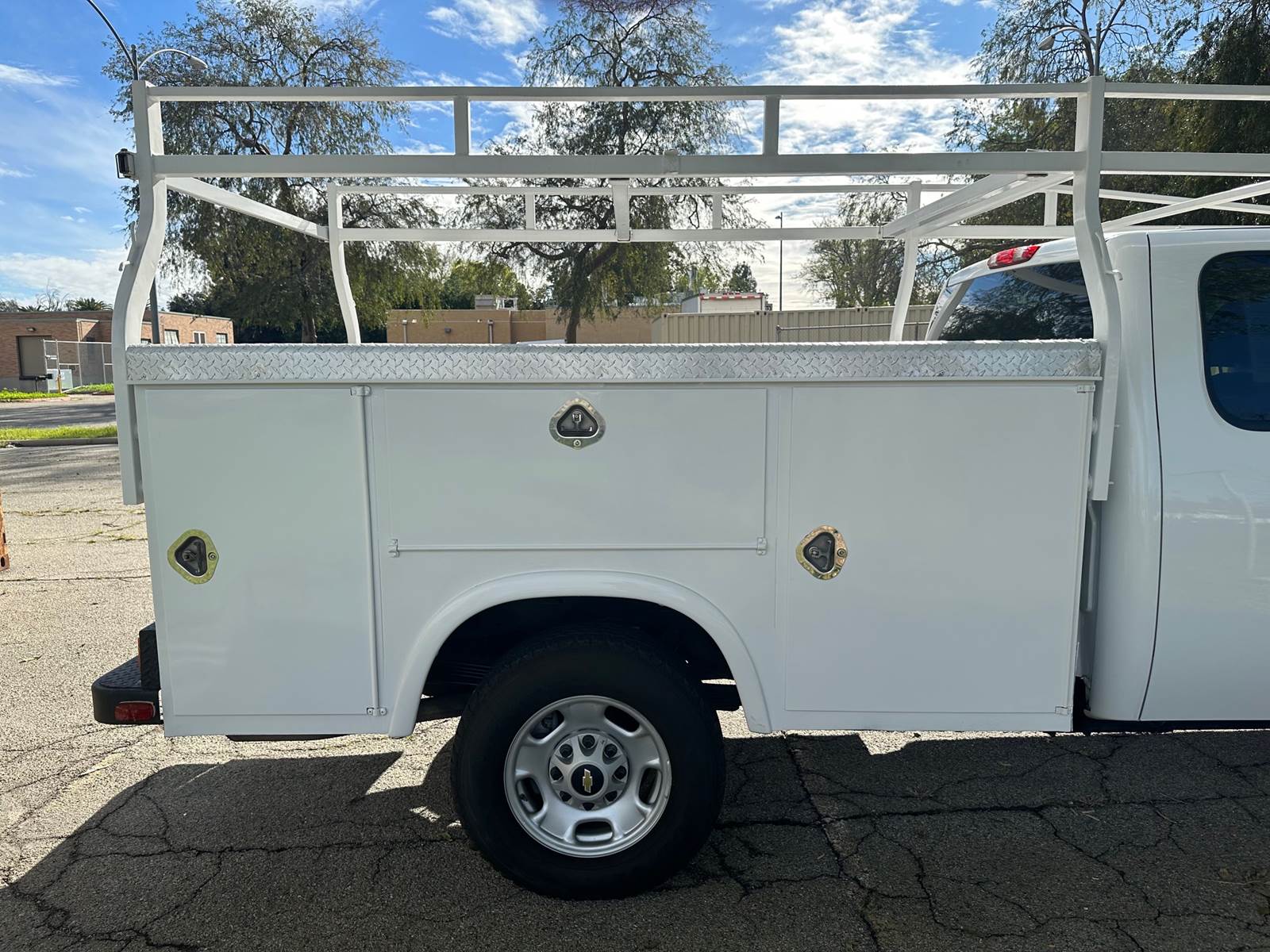 2013 Chevy Silverado 2500 H.D. Extra Cab 4x4 Service Body/ Utility Truck, 6.0L V-8, auto trans, a/c, tilt, cruise, power windows and locks, 141k miles, trailer brakes, power mirrors, Royal service body, top loader trays, ladder rack, tow pkg, new front tires, 70% rear tread, just serviced, lumber rack available-call for pricing. Nationwide shipping and financing are available.