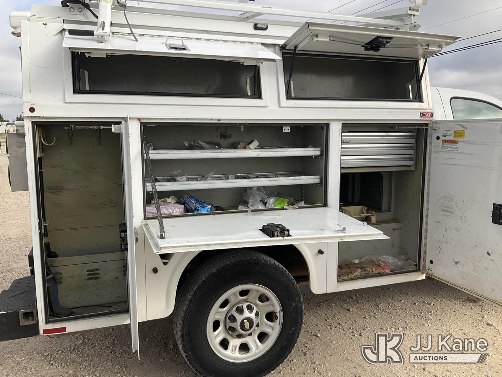 2013 Chevrolet Silverado 3500HD Enclosed Service Truck, 8-cyl gas, Auto, A/C, (169,825 miles) (Runs & Moves) (Jump To Start, Paint Damage) This is a Titled Item NOTE: This unit is being sold AS IS/WHERE IS via Timed Auction and is located in Waxahachie, TX. Inspection & preview days for this unit are the 2 business days prior to the first day of items closing for this auction, item is located at 999 Solon Rd Waxahachie, TX 75165 and hours of operations are 8a-4p. For pre-sale questions, please contact Alex Bayless @ (469) 550-4938. (Buyer is responsible for removal. Assistance by consignor or JJ Kane Auctioneers is not assured.)