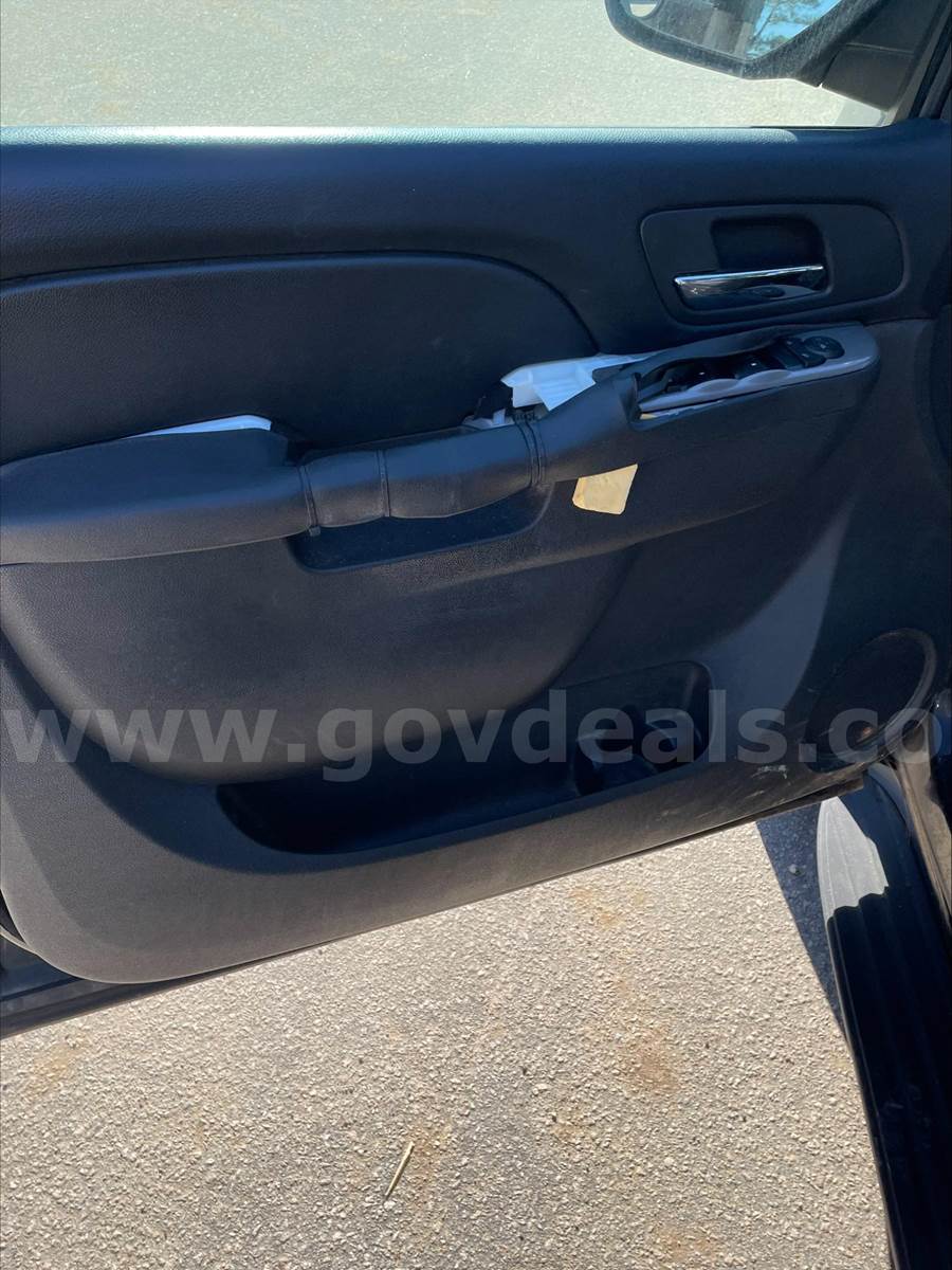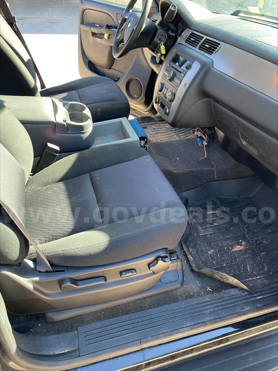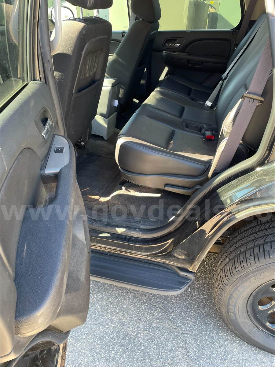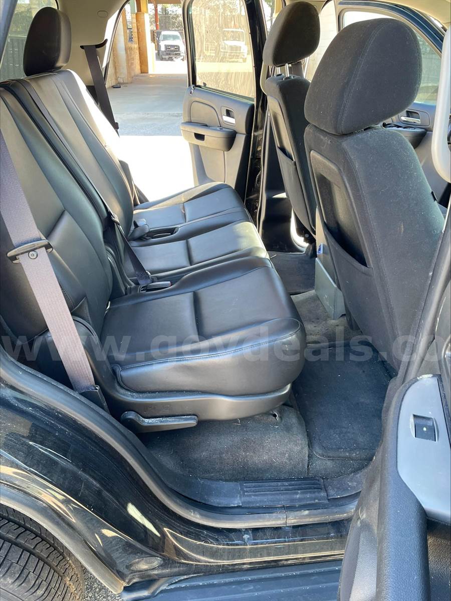 2013 Chevrolet Tahoe SPORT UTILITY 4-DR, 5.3L V8 OHV 16V FFV. 2 WD. Does not have 3rd row seating. Power steering, windows, locks, rearview mirrors. Power / Manual Seat adjustments. 99,532 miles. Black exterior with Black interior. Cloth front seats and vinyl rear seats. Homemade center console between front seat with a power converter mount to the front of the console. The drivers door handle is damaged and needs replacing. Scratches and dents on the exterior and decals have been removed from the vehicle but impressions remain. This vehicle was originally purchased and used for our Police department then transferred to our Engineering department. Being sold due to age of vehicle. No known mechanical issues noted by our fleet department.