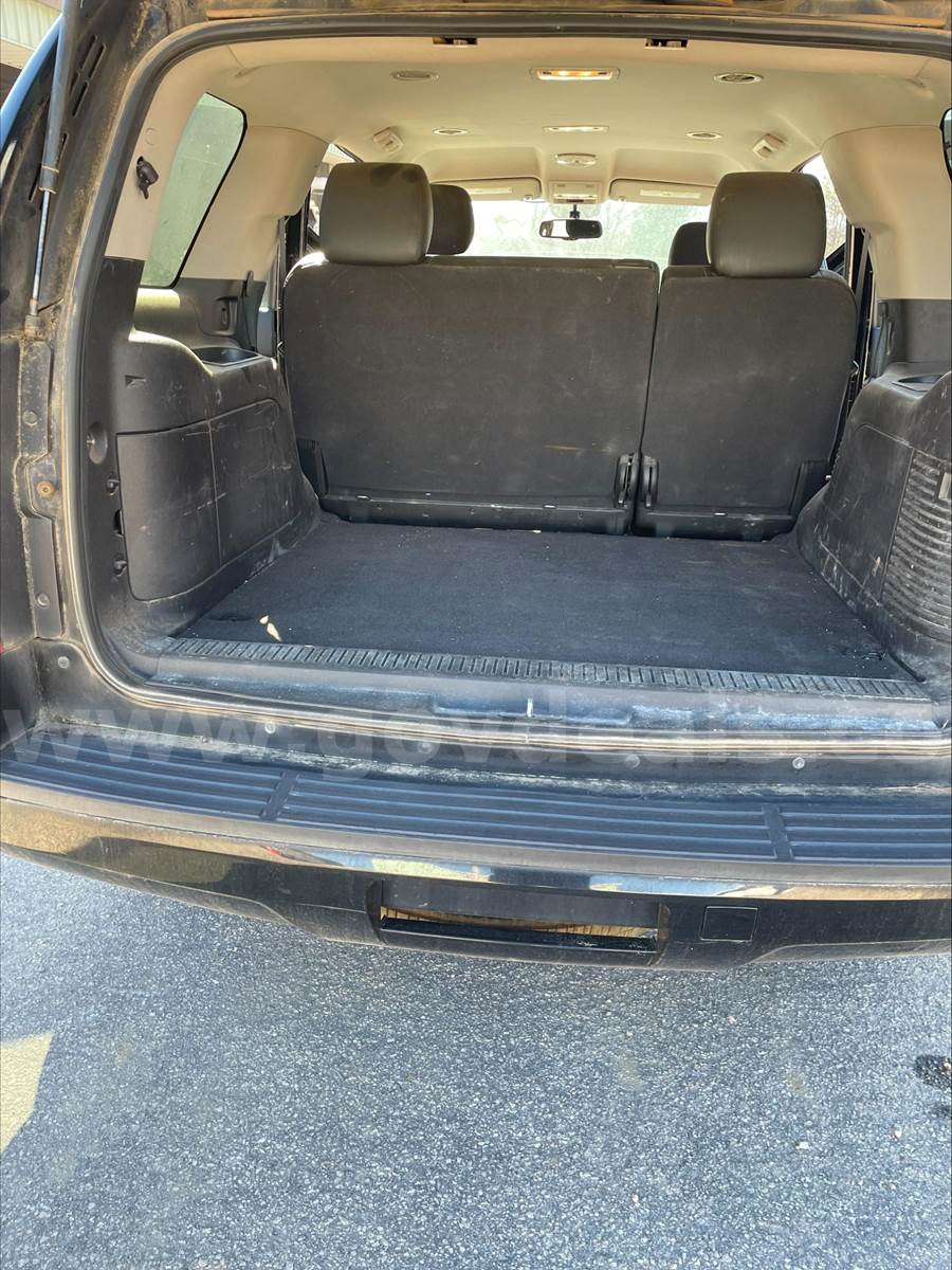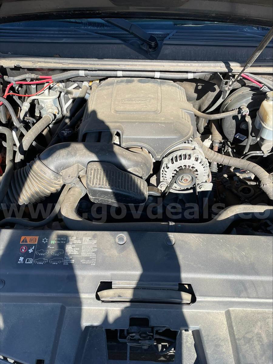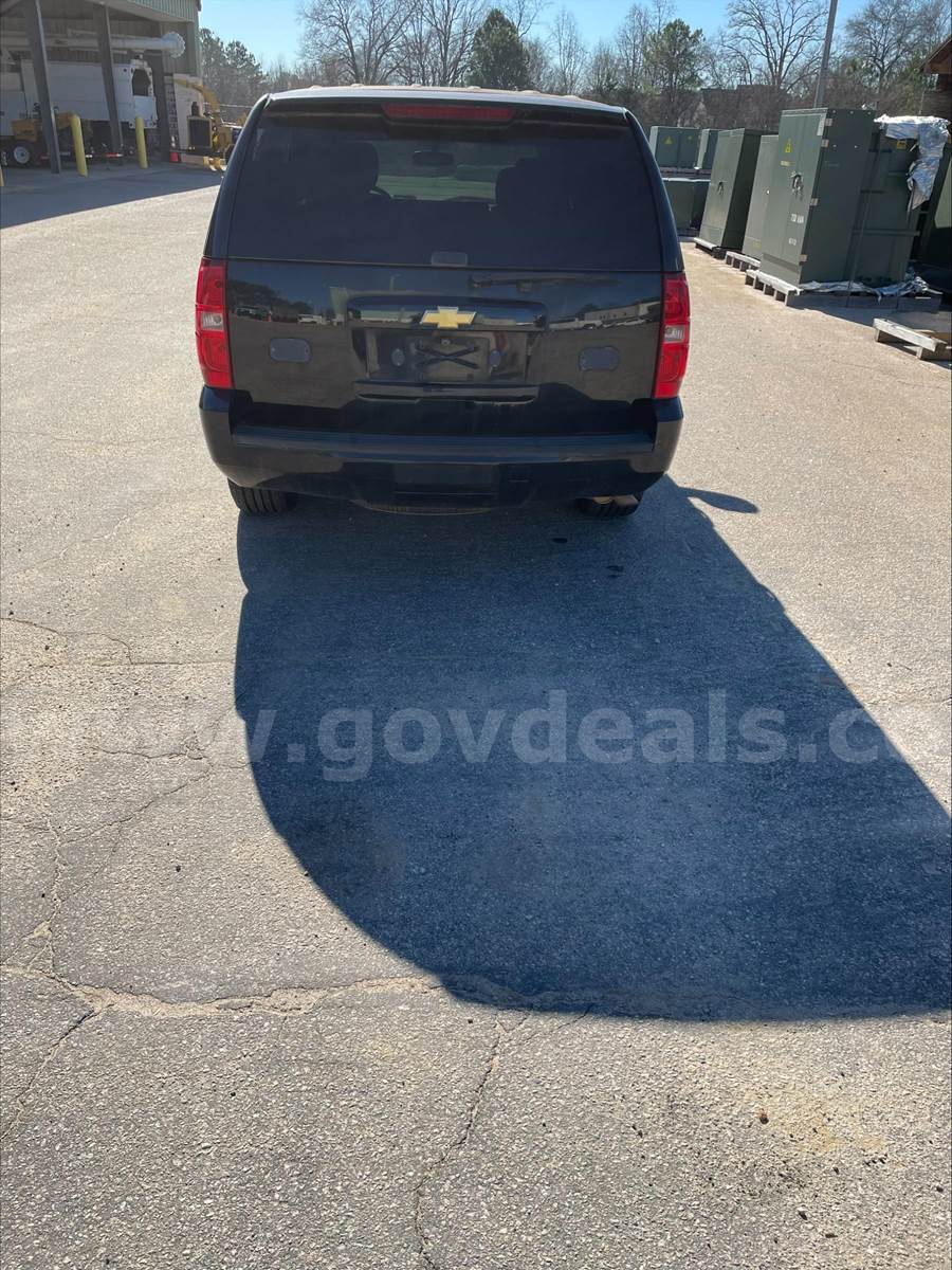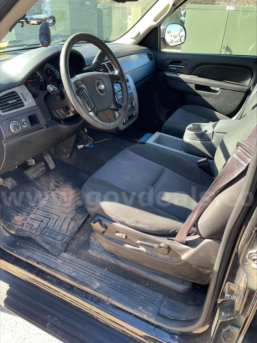 2013 Chevrolet Tahoe SPORT UTILITY 4-DR, 5.3L V8 OHV 16V FFV. 2 WD. Does not have 3rd row seating. Power steering, windows, locks, rearview mirrors. Power / Manual Seat adjustments. 99,532 miles. Black exterior with Black interior. Cloth front seats and vinyl rear seats. Homemade center console between front seat with a power converter mount to the front of the console. The drivers door handle is damaged and needs replacing. Scratches and dents on the exterior and decals have been removed from the vehicle but impressions remain. This vehicle was originally purchased and used for our Police department then transferred to our Engineering department. Being sold due to age of vehicle. No known mechanical issues noted by our fleet department.