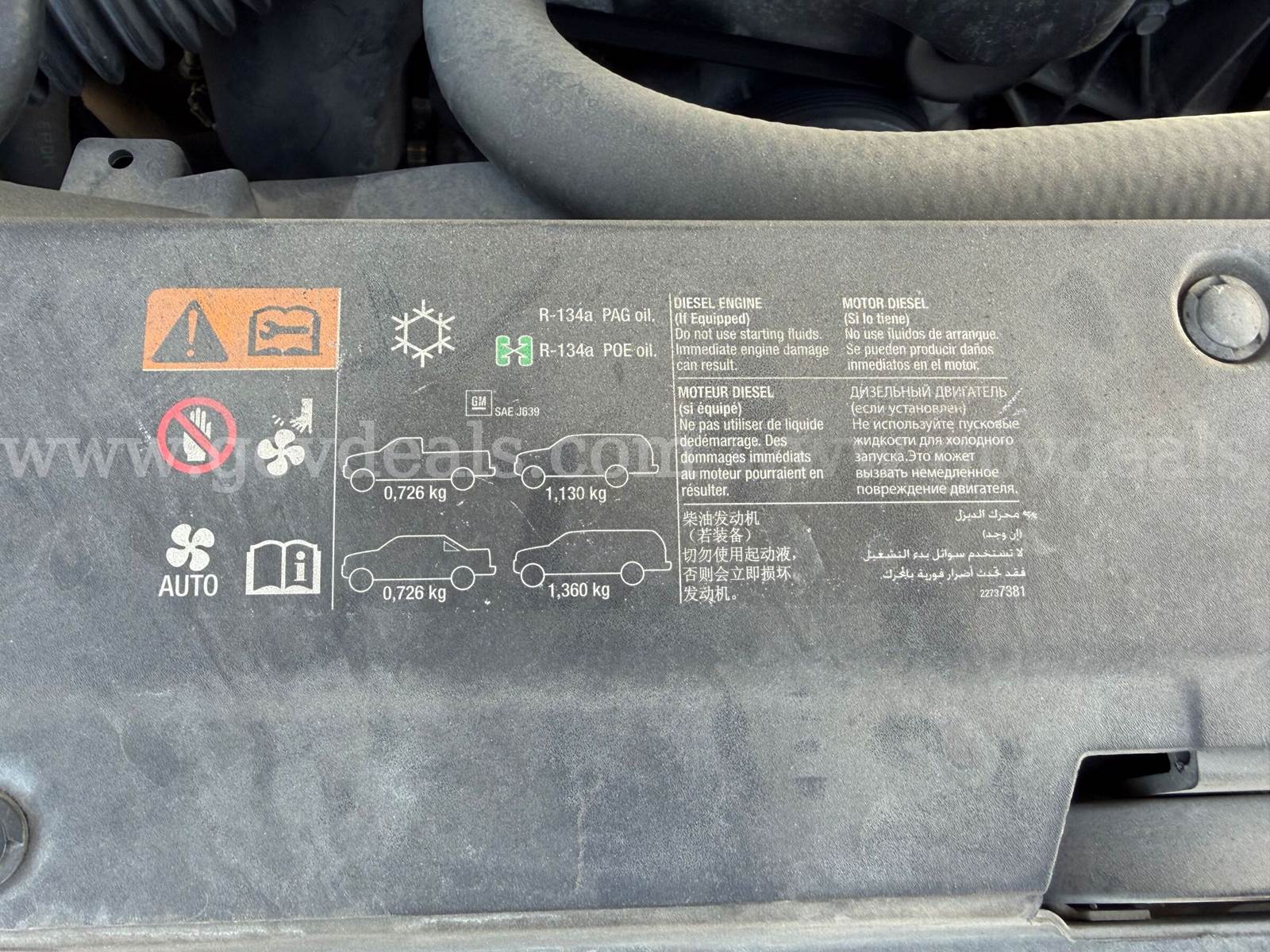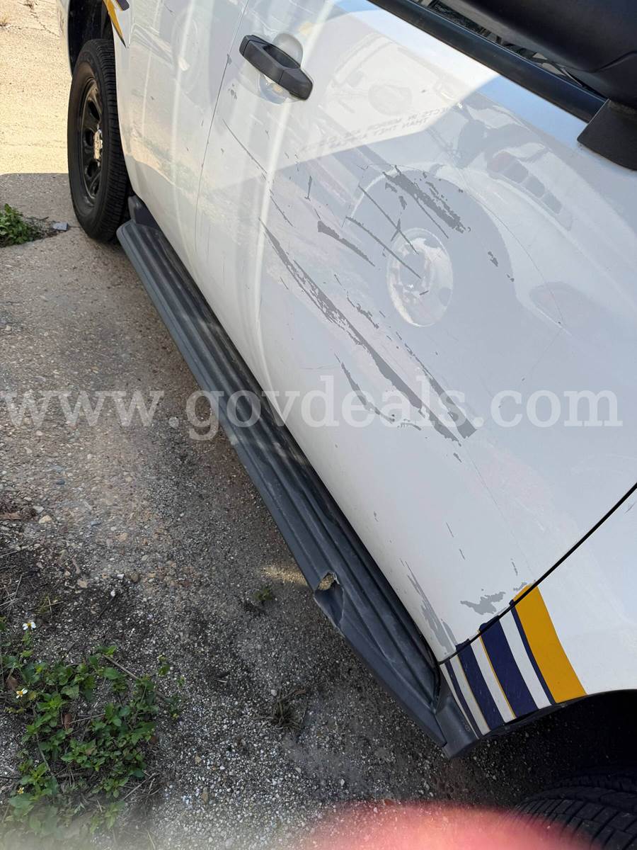 2013 Chevrolet Tahoe SPORT UTILITY 4-DR, 5.3L V8 OHV 16V FFV. Taken out of service because of electrical problems, otherwise transmission and AC in good working condition. Exterior: White with shows where decals removed. Interior: see media, all seats and dash in very good condition