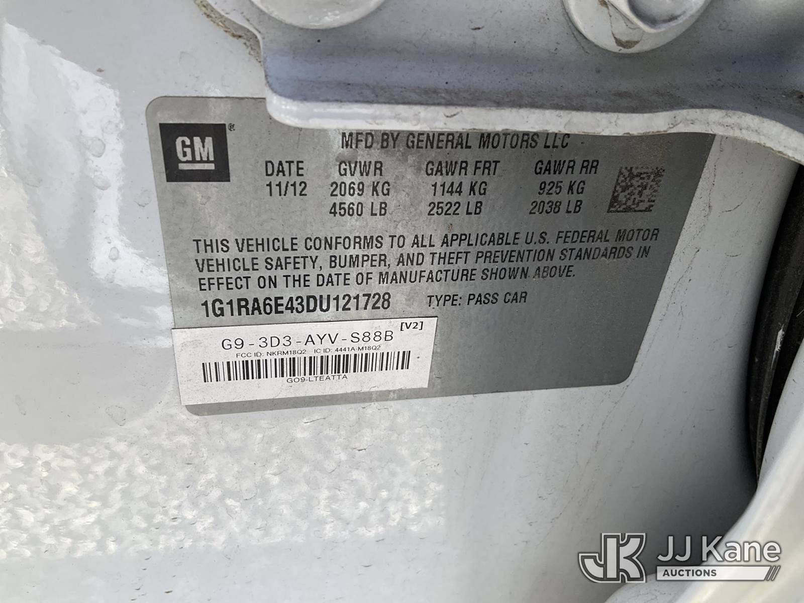 2013 Chevrolet Volt 4-Door Sedan, 1.4L L4 DOHC 16V PLUG-IN HYBRID FWD, Auto, A/C, (26,243 miles) (Runs & Moves) (Paint Damage) This is a Titled Item NOTE: This unit is being sold AS IS/WHERE IS via Timed Auction and is located in Las Vegas, NV. Inspection & preview days for this unit are the 2 business days prior to the first day of items closing for this auction, item is located at 14655 Grand Valley Pkwy Las Vegas, NV 89165 and hours of operations are 8a-4p. Titles executed exactly as bidder registered. Ensure your name and/or business name and address in JJ Kane and/or ProxiBid is correct before bidding. For pre-sale questions, please contact Office Staff @ (801) 519-0123 and provide sale date and lot number. Las Vegas Dealer License Number DLR000053086 / OHV000053094. (Buyer is responsible for removal. Assistance by consignor or JJ Kane Auctions is not assured.)
