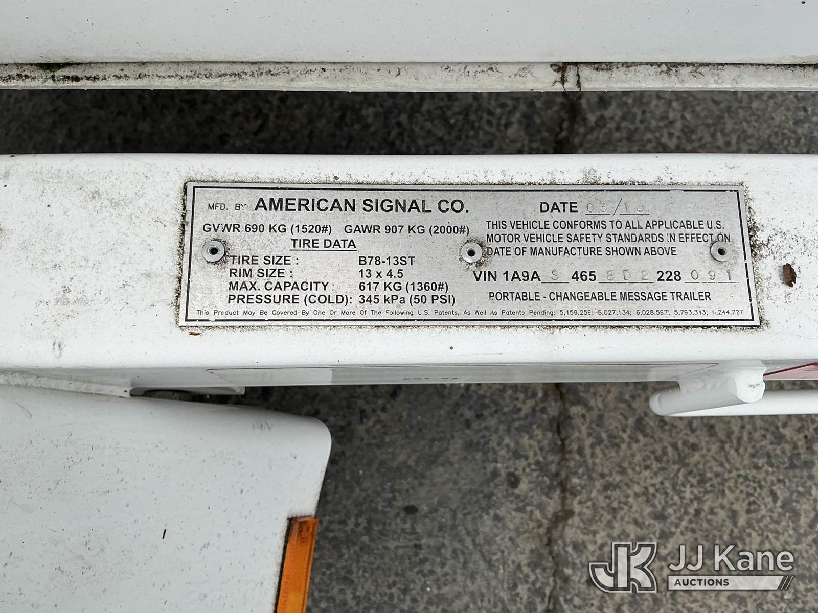 2013 CMS Arrowboard, with ball hitch, (Not Running, Condition Unknown)(No Power, Conditions Unknown) This is a Titled Item NOTE: This unit is being sold AS IS/WHERE IS via Timed Auction and is located in Dixon, CA. Inspection & preview days for this unit are the 2 business days prior to the first day of items closing for this auction, item is located at 8668 Sparling Ln Dixon, CA 95620 and hours of operations are 8a-4p. For pre-sale questions, please contact JJ Kane Staff at (707) 678-8060 (dixon@jjkane.com). Dealer License Number 45696. (Buyer is responsible for removal. Assistance by consignor or JJ Kane Auctioneers is not assured.)