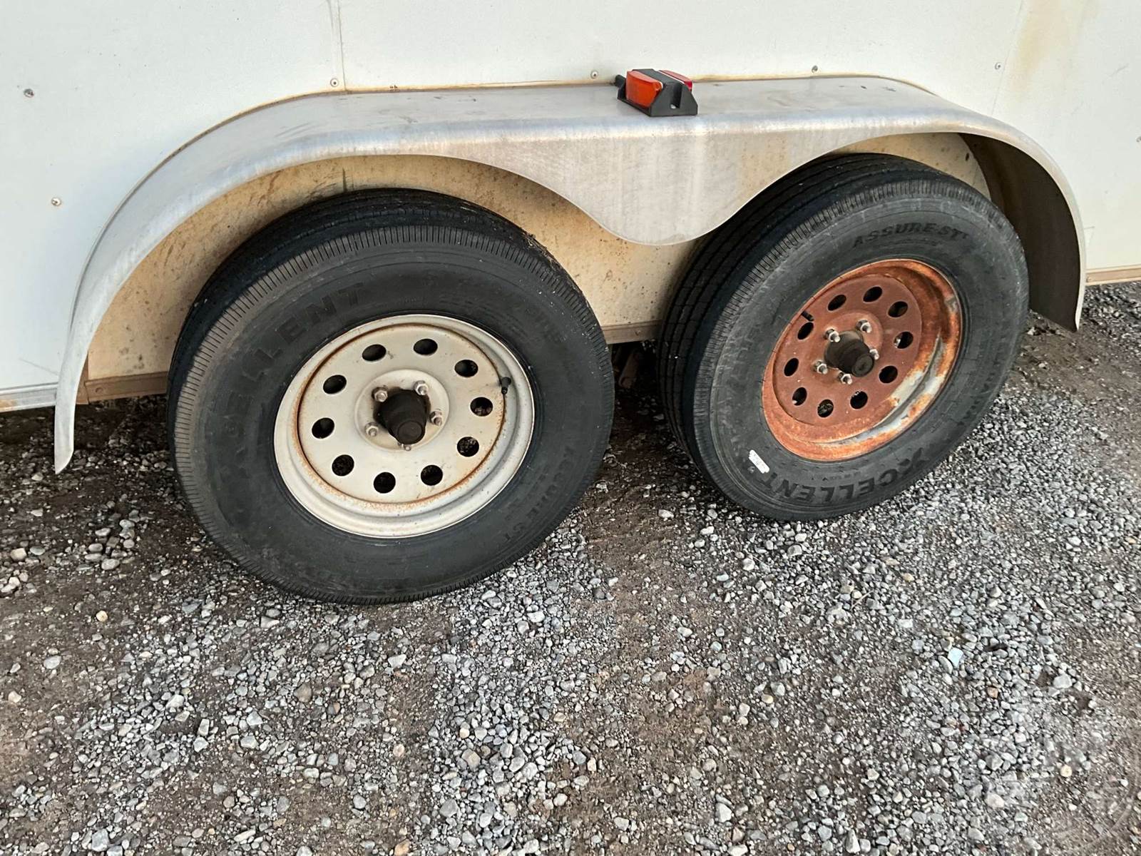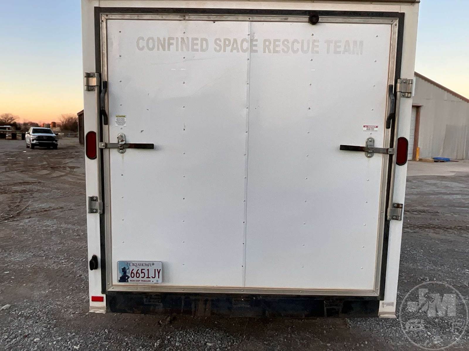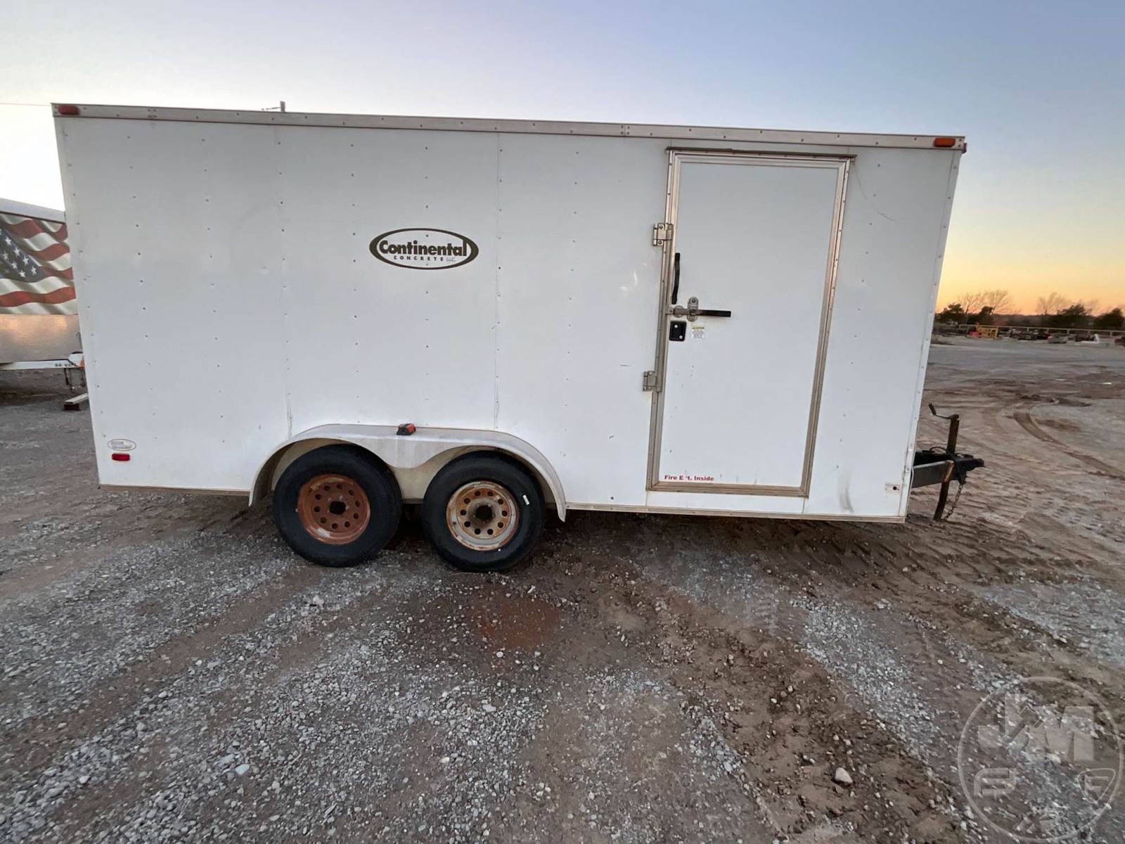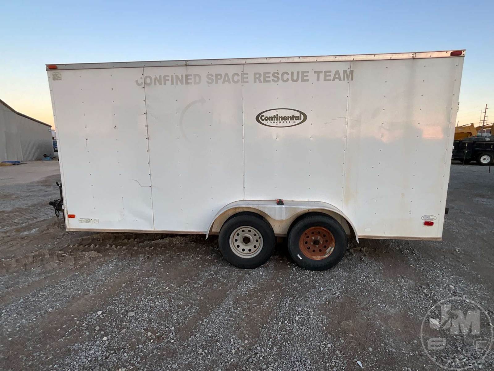 ENCLOSED TRAILER 7'X18', 2 AXLE, REAR GATE, CURB SIDE DOOR, WOOD DECKING, COVERED WHEELS, ELECTRIC BRAKES, 225/75-15 TIRES, V NOSE
