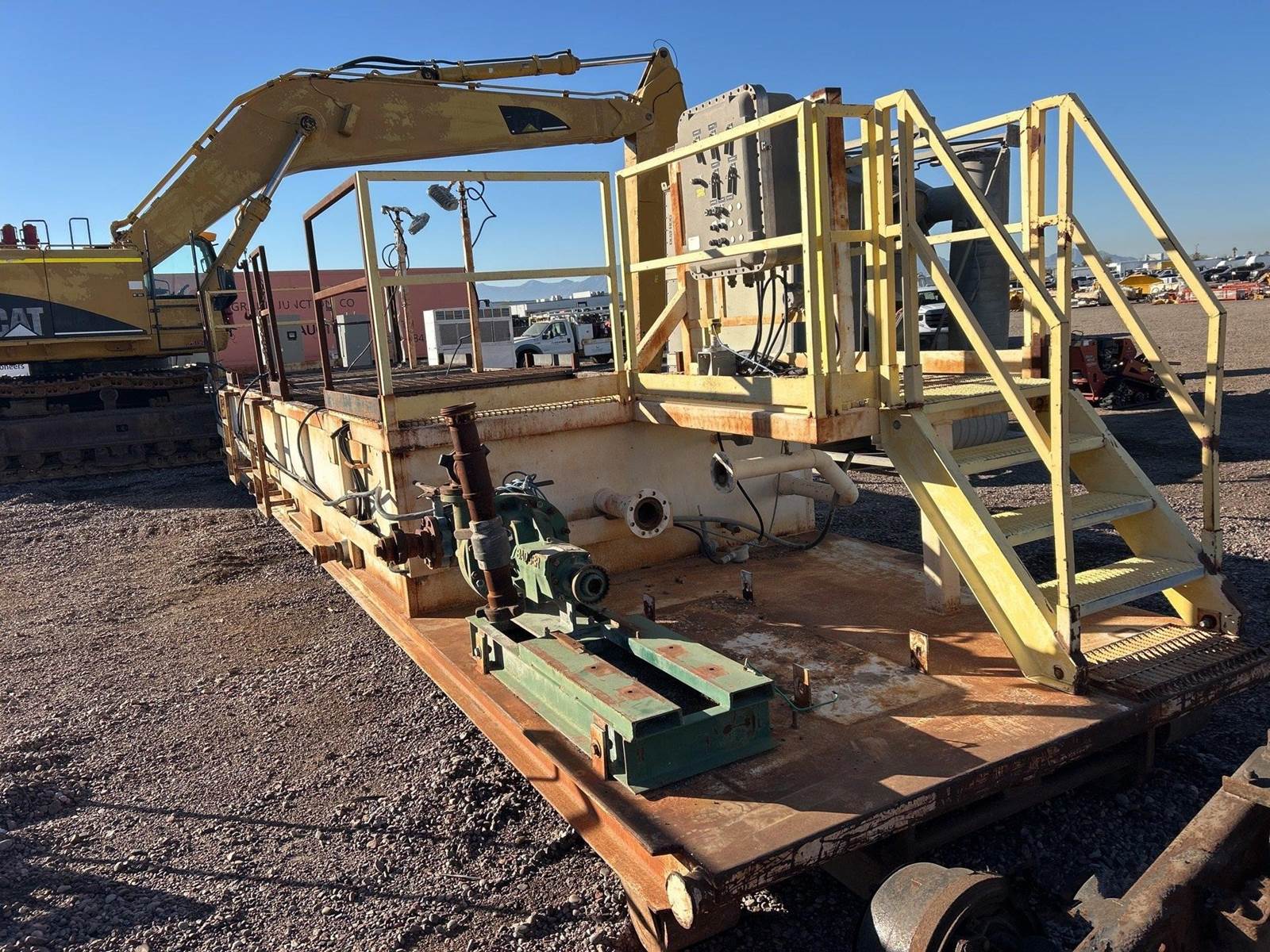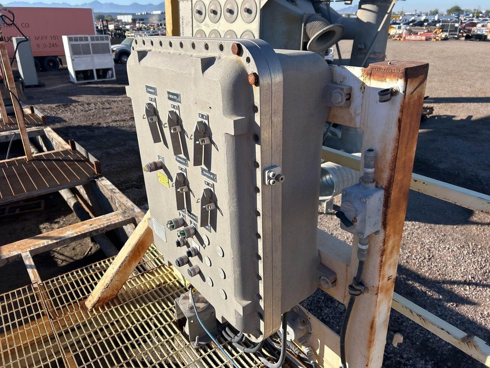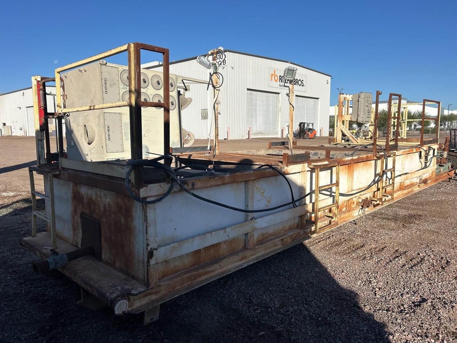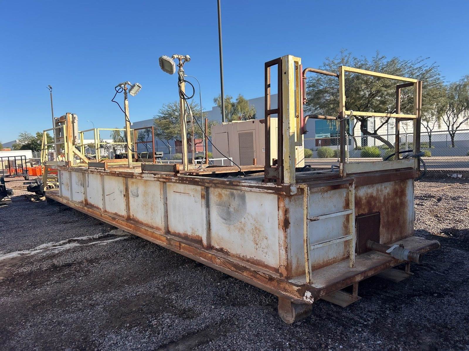 Up forsale is a Frac Tank Mud Mixer Agitator / Shaker Tank Roll Off. Stair Access, Control panel pumps and grates. Can be moved via roll-Off. Please call with any questions.