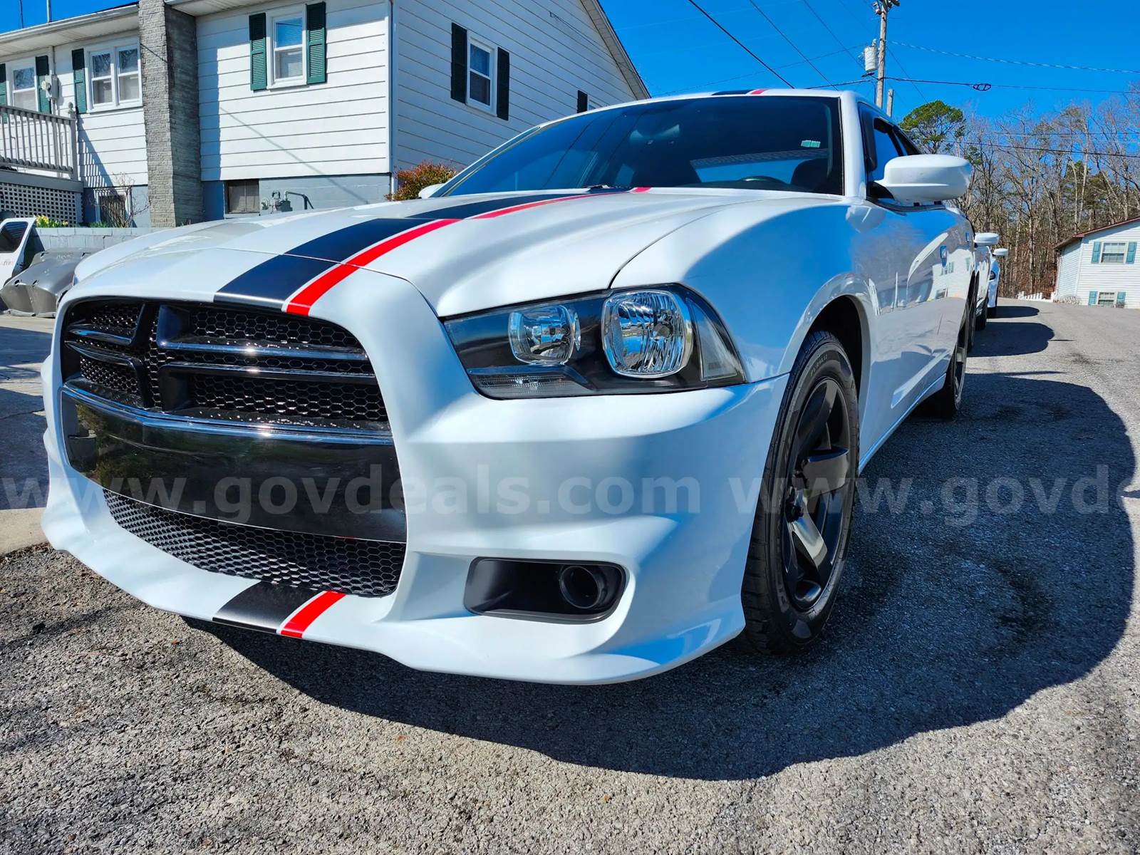 2013 Dodge Charger SEDAN 4-DR, 5.7L V8 OHV 16V.Car relisted due to non-payment and no contact from the previous winner.98814 miles.5515 idle hours.New Strut Assemblies.New Sway Bar Links.New Upper Control Arms. Drives good over bumps with no suspension noise with all new parts. New Headlight Assemblies.New battery.New Spoiler.Vehicle starts, runs, and drives strong. (See attached test drive video)5.7 V8 gas engine is operable.Automatic transmission is operable.RWD.Drivetrain is in good condition.Exterior is white paint with dings and scratches that may not be visible in photos.Vehicle polished and waxed with Collinite sealant wax.Red and Black vinyl wrap kit was recently added new.No glue residue remains.Interior is black with no damage to the flooring, dash, and door panels.Some screw holes remain where emergency equipment was installed.Front seats are black cloth in good condition.Rear seats are vinyl and in good condition.Stock AM/FM CD radio.AC blows cold.Dual airbags to the front. Side airbags.Cruise control, tilt steering, remote mirrors, power driver seat.Power steering, windows, and door locks.Three key fobs and two remotes included.