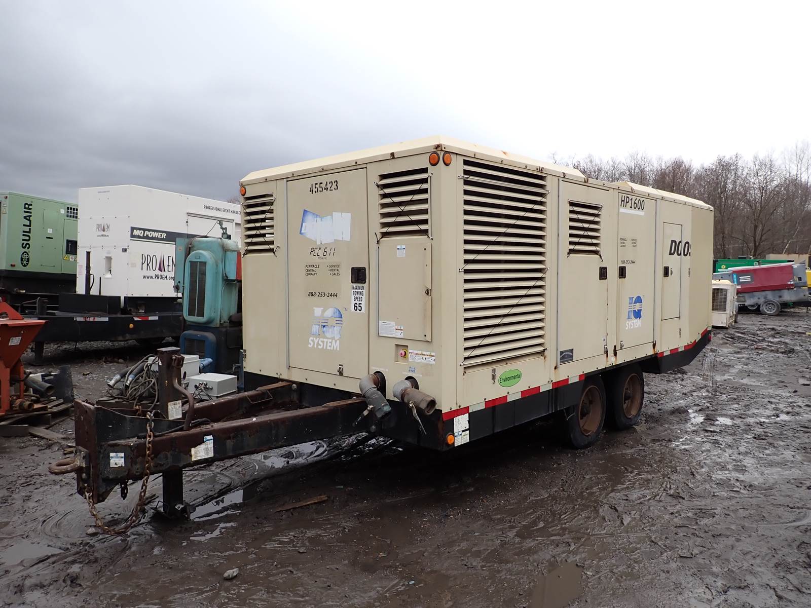 2013 Doosan HP1600WCU air compressor, 1600 CFM at 150 PSI rating, standard & instrument quality (aftercooled) air circuits, Cummins QSX15 diesel engine, tier 4 emissions compliant, 7735 hours, trailer mounted, towable. GOOD RUNNING UNIT -- SEE VIDEO -- RUNS AND OPERATES, IQ AIR CIRCUIT FOR SPECIALTY AIR NEEDS -- EXCELLENT PRICE -- NICE UNIT !! ** BILL OF SALE ONLY, NO TITLE AVAILABLE **