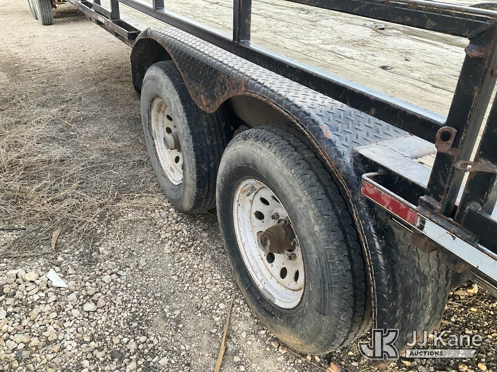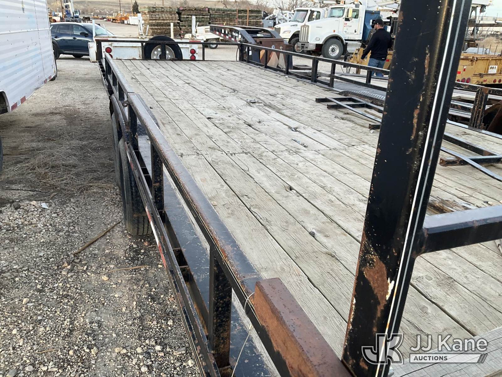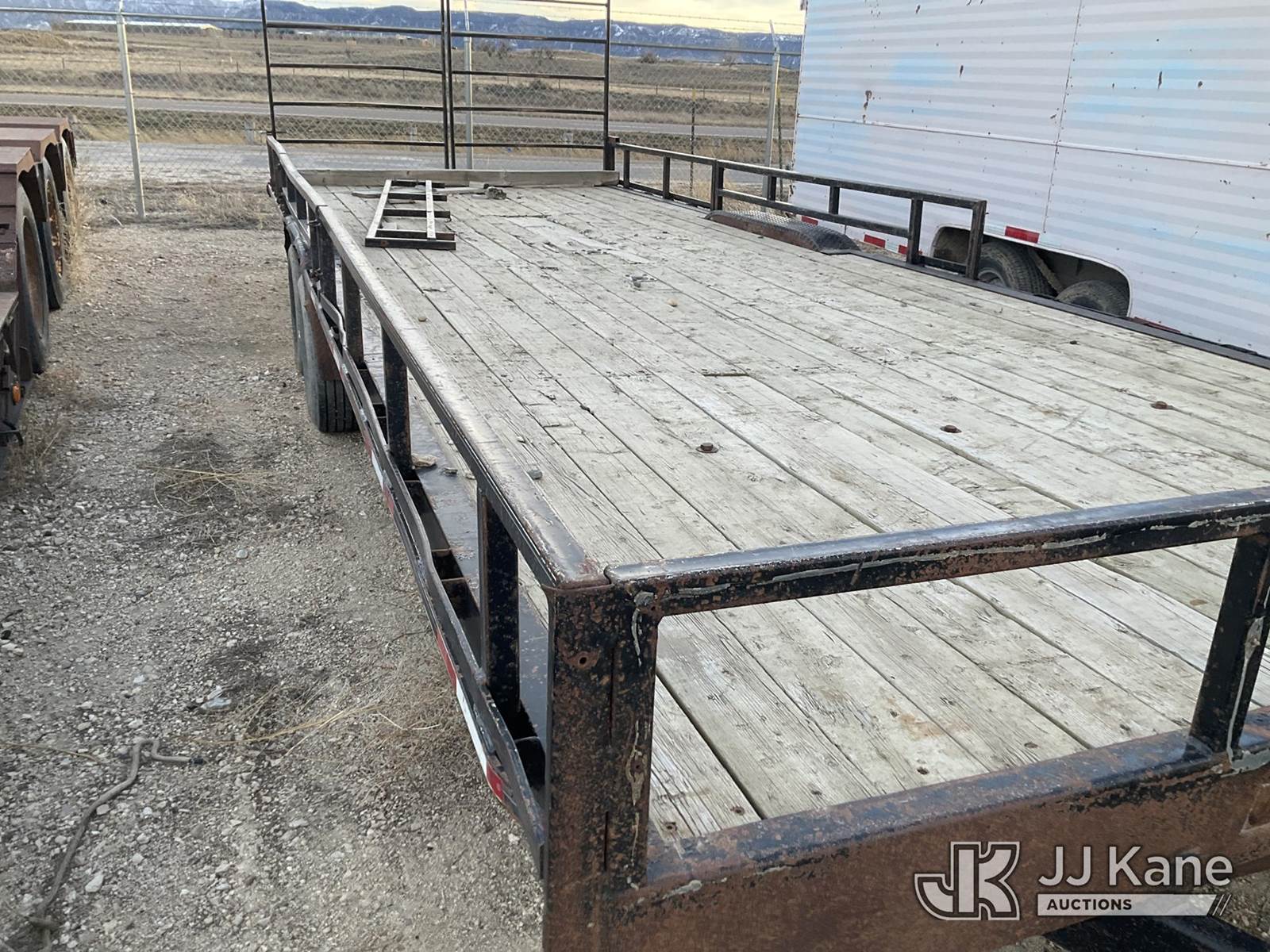 2013 Double A T/A Tagalong Flatbed Trailer, with 24ft long x 8ft, removable rails, tie-downs, This is a Titled Item NOTE: This unit is being sold AS IS/WHERE IS via Timed Auction and is located in Evansville, WY. For more information & removal arrangements please contact John Larkin @ John.larkin@jjkane.com (Buyer is responsible for removal. Assistance by consignor or JJ Kane Auctions is not assured.)