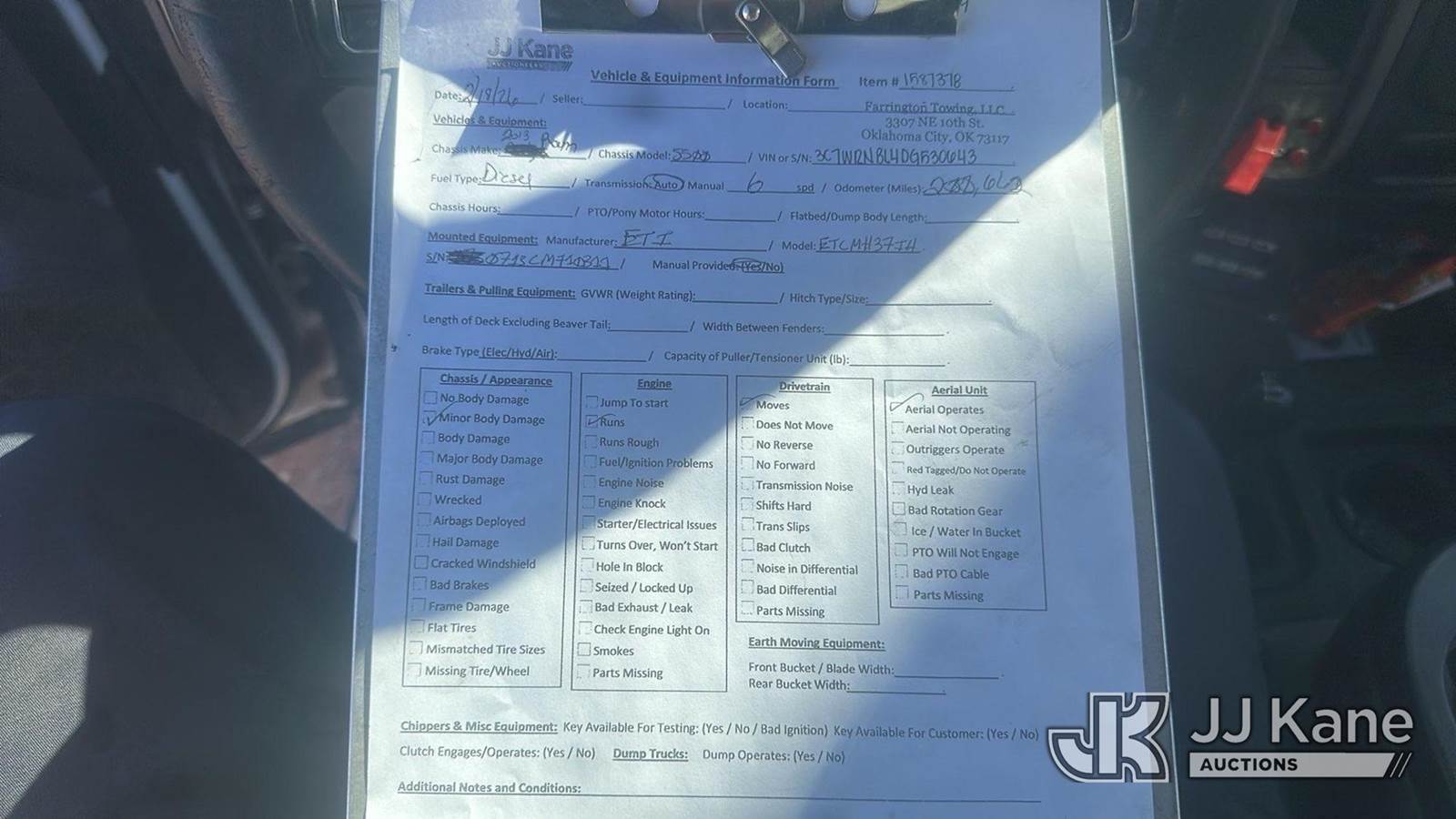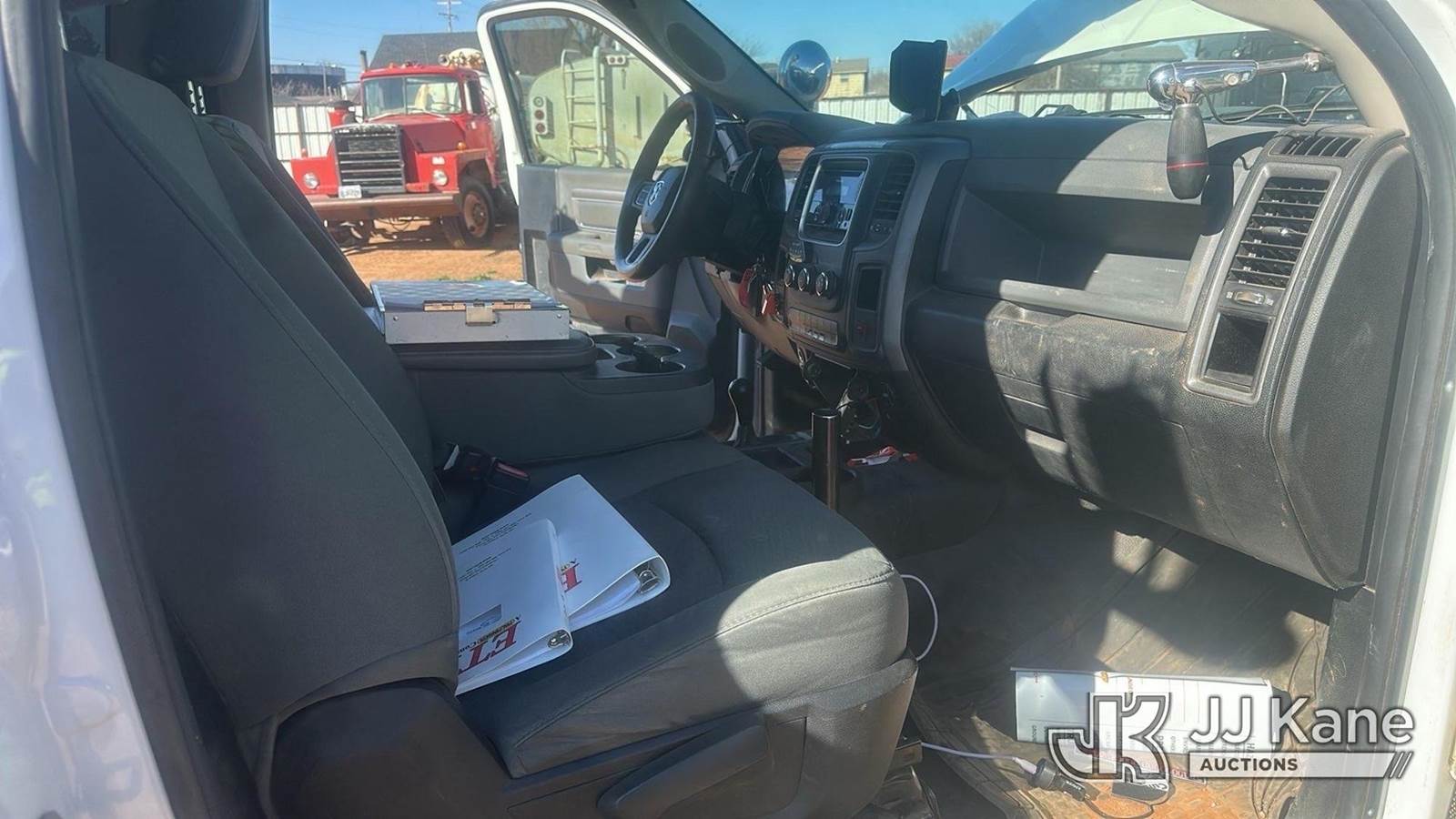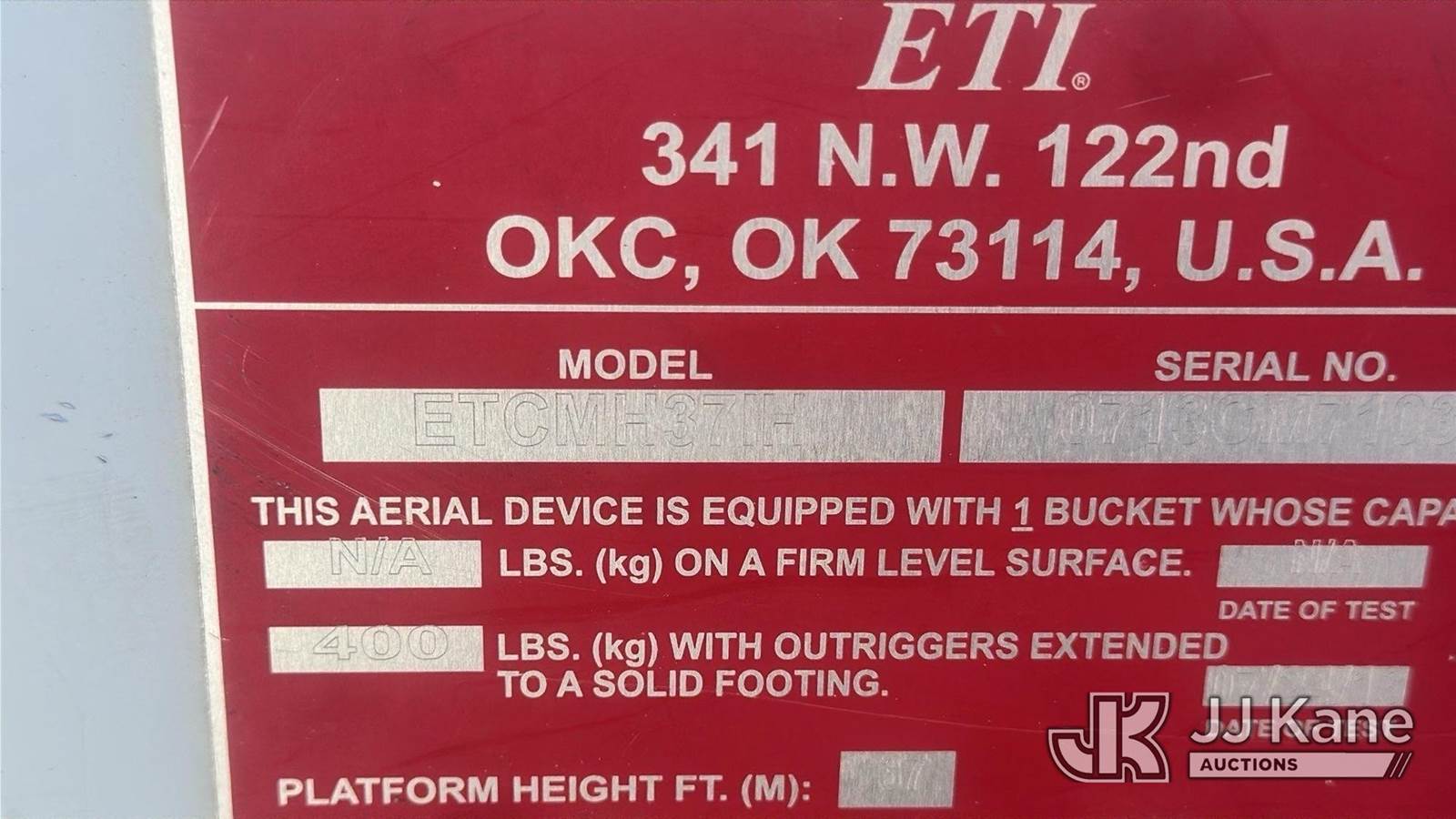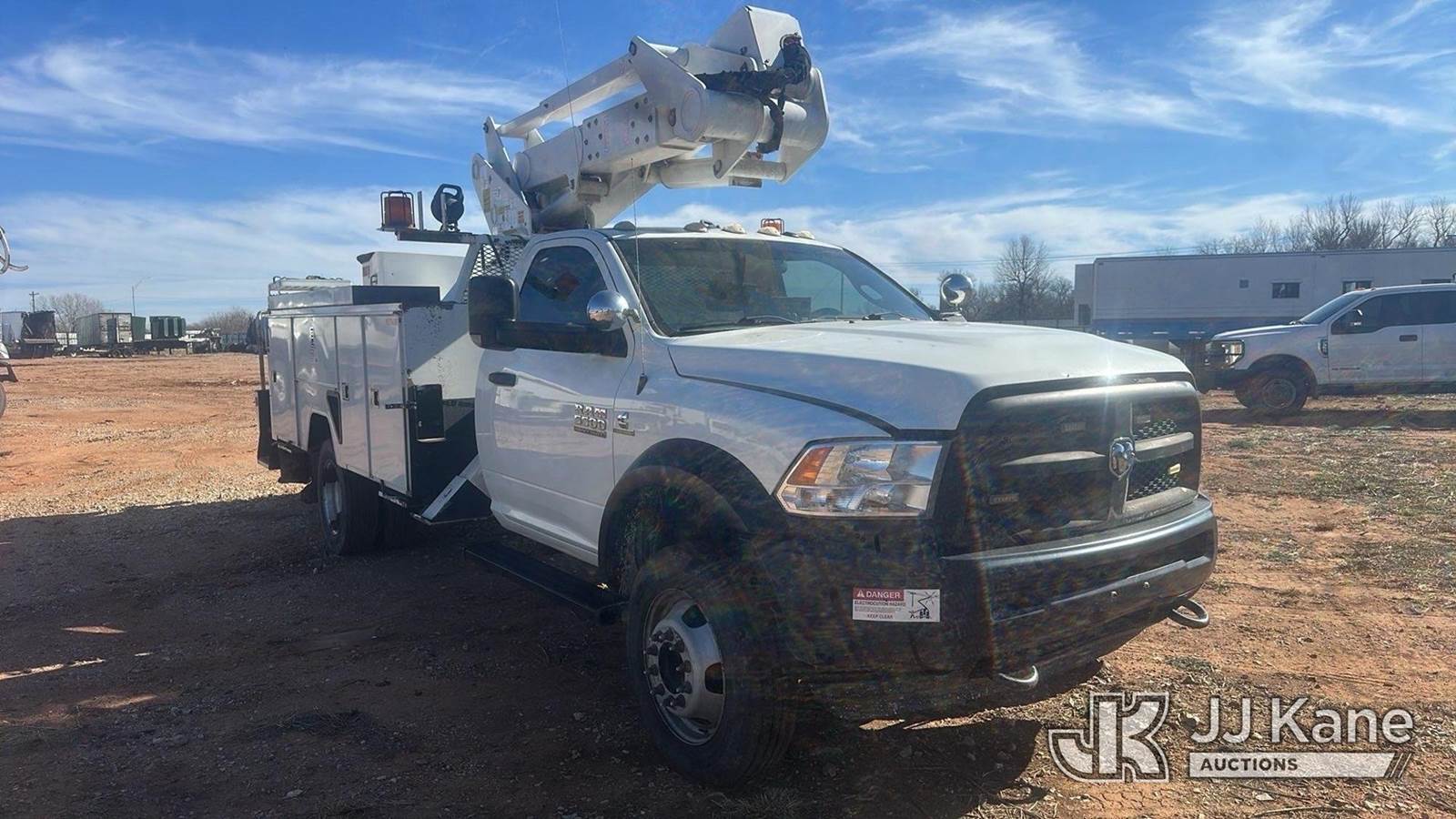 ETI ETCMH37-IH, 42 ft, Articulating & Telescopic Material Handling Bucket Truck s/n 0713CM710311, with single man bucket, mounted behind cab on 2013 RAM 5500 Service Truck, 6.7L diesel, 4WD, Auto, A/C, (200,662 miles) (Runs, Moves & Upper Operates)(Check Engine Light On)(Seller States: Truck Has A Damaged High Pressure Fuel Pump. Metal Intrusion In High Pressure Fuel Rails, Lines And Injectors. Truck Currently Runs. Does Has Intermittent Performance Issue Under Load Due To Fueling Issues) This is a Titled Item NOTE: This unit is being sold AS IS/WHERE IS via Timed Auction and is located in Oklahoma City, OK. Inspection & preview days for this unit are by appointment only; please contact us at contact@jjkane.com or 84-Go-JJKane for more details. (Missing manuals, See Auction Company for Manufacturers Information to obtain manuals) (Buyer is responsible for removal. Assistance by consignor or JJ Kane Auctions is not assured.)