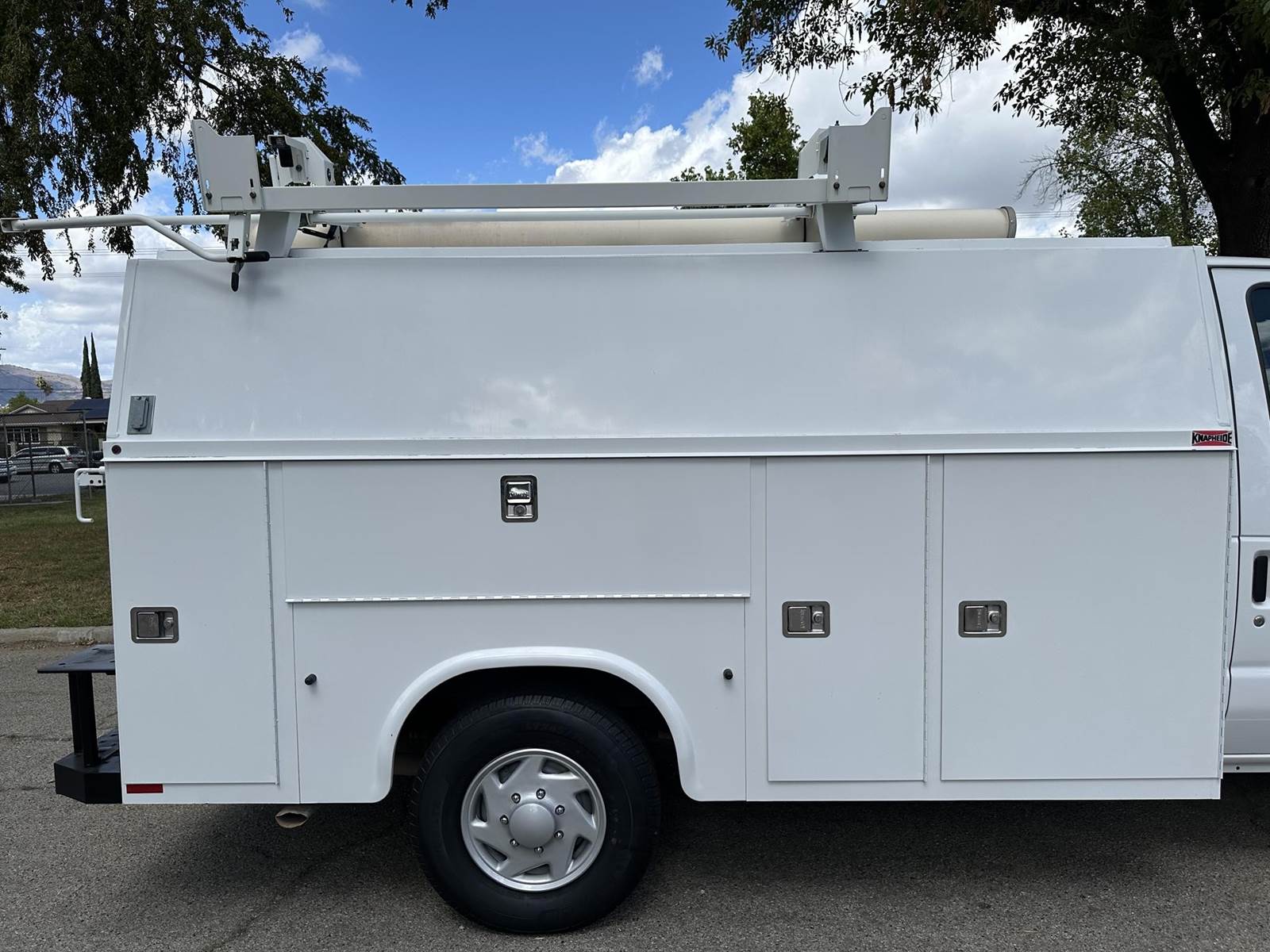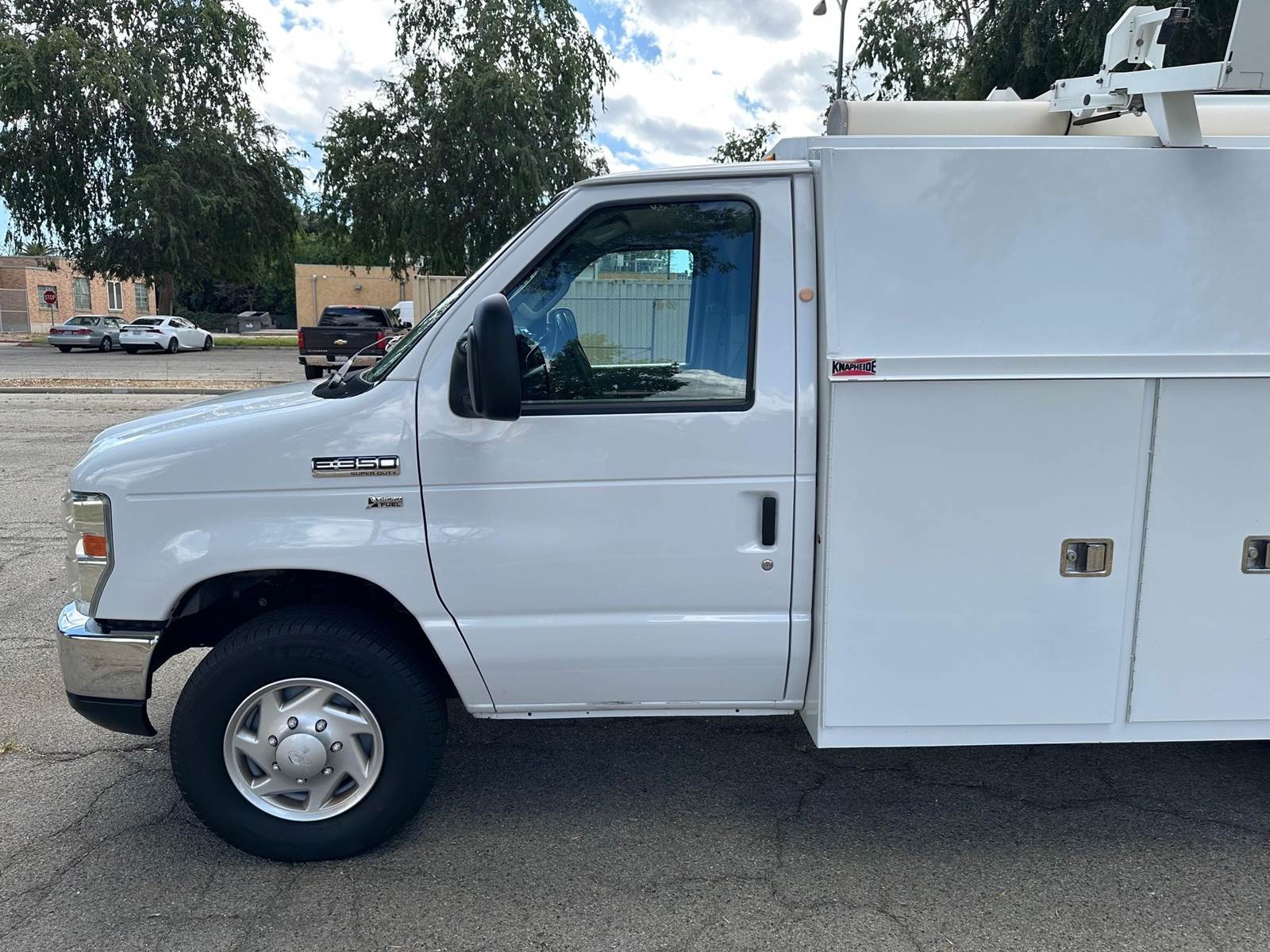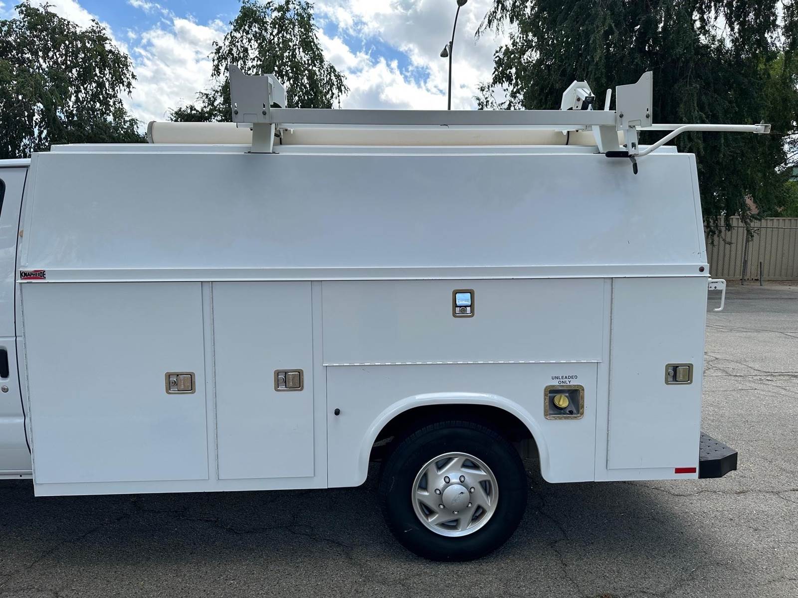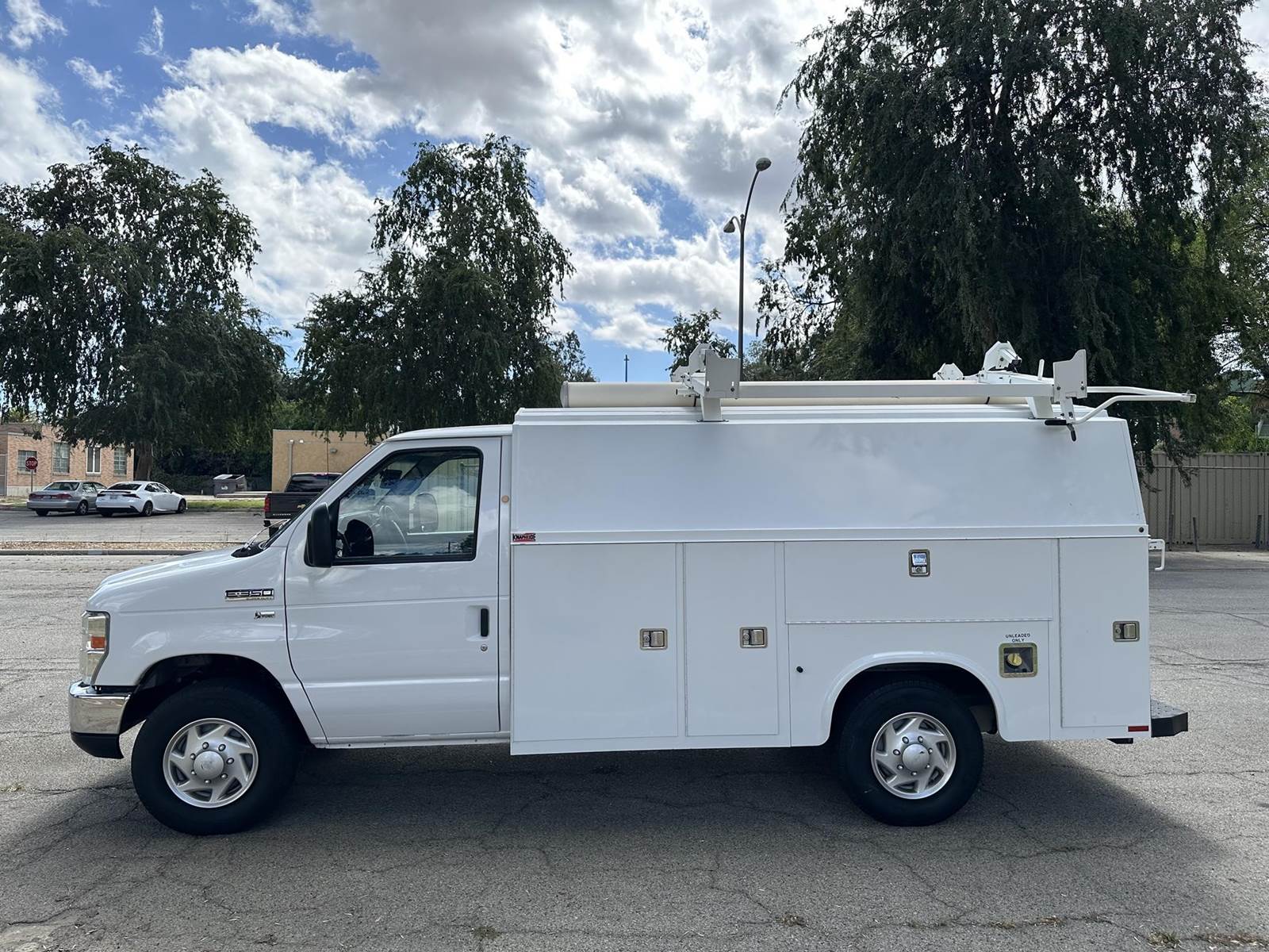 2013 Ford E-350 Cutaway Plumbers Van, Flex fuel 5.4L V-8, auto trans, A/C, tilt, cruise, 135k miles trailer brakes, backup camera, Knapheide 11' service body, slide lock security bar, ladder rack, conduit box, tow pkg, vice mount, 90% tire tread, no rust, just serviced, runs and drives great. Nationwide shipping and financing are available.