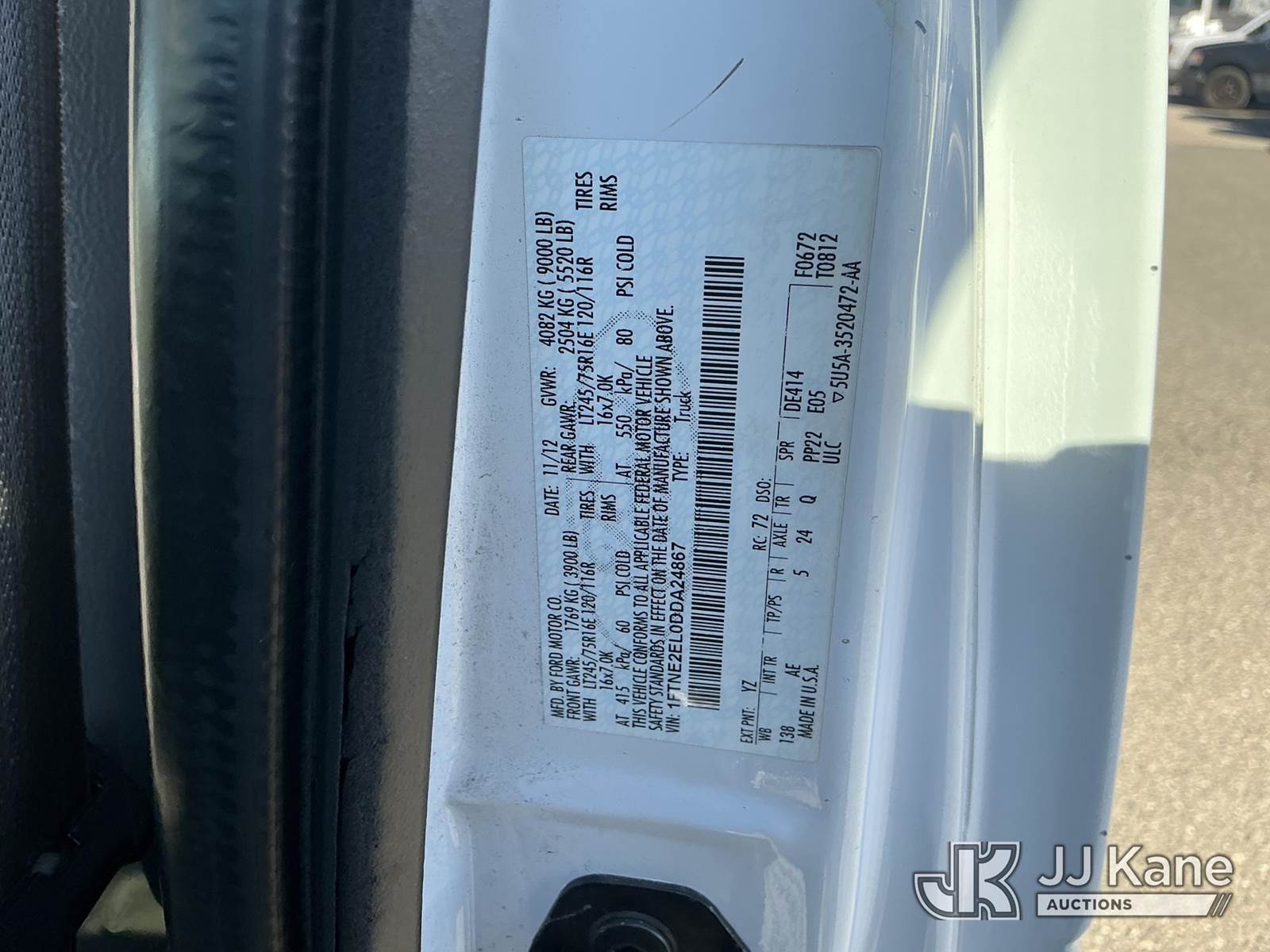 2013 Ford Econoline E-250 Cargo Van, 8-cyl gas, 4-Speed Automatic, A/C, (35,483 miles) (Runs & Moves) (Rear Bumper Slightly Damaged, Rear Passenger Hubcap Broken) This is a Titled Item NOTE: This unit is being sold AS IS/WHERE IS via Timed Auction and is located in Dixon, CA. Inspection & preview days for this unit are the 2 business days prior to the first day of items closing for this auction, item is located at 8668 Sparling Ln Dixon, CA 95620 and hours of operations are 8a-4p. For pre-sale questions, please contact JJ Kane Staff at (707) 678-8060 (dixon@jjkane.com). Dealer License Number 45696. (Buyer is responsible for removal. Assistance by consignor or JJ Kane Auctions is not assured.)