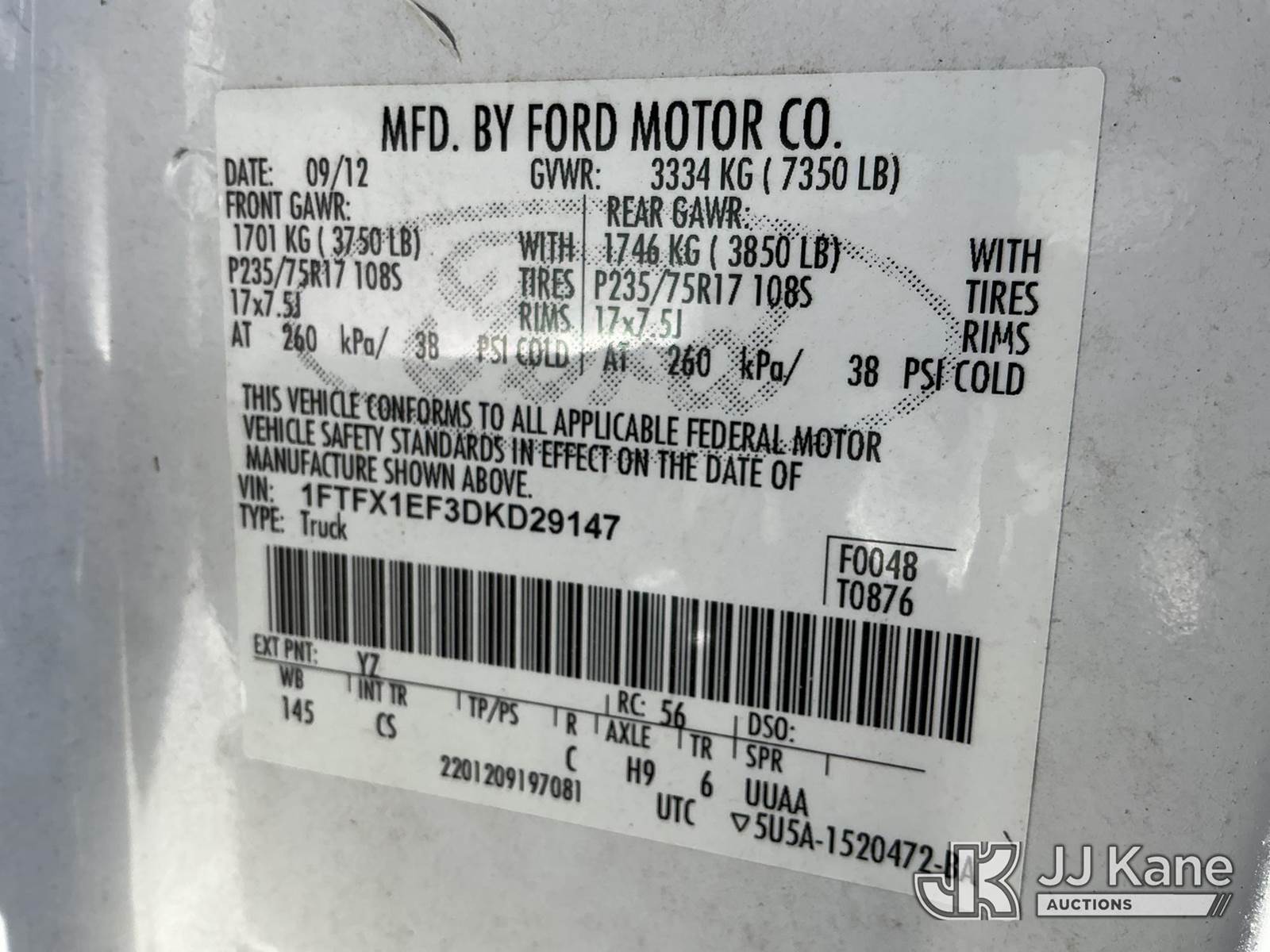 2013 Ford F-150 Extended-Cab Pickup Truck, 8-cyl gas, 4wd, 6-Speed Automatic, A/C, (139,348 miles) (Runs & Moves) (Dash Warning Indicators, See Photos)) This is a Titled Item NOTE: This unit is being sold AS IS/WHERE IS via Timed Auction and is located in Kansas City, MO. Inspection & preview days for this unit are the 2 business days prior to the first day of items closing for this auction, item is located at 962 Tel Aviv Ave Kansas City, MO 64153 and hours of operations are 8a-4p. For pre-sale questions, please contact Ricky McPherson @ (816) 610-2250. (Buyer is responsible for removal. Assistance by consignor or JJ Kane Auctions is not assured.)
