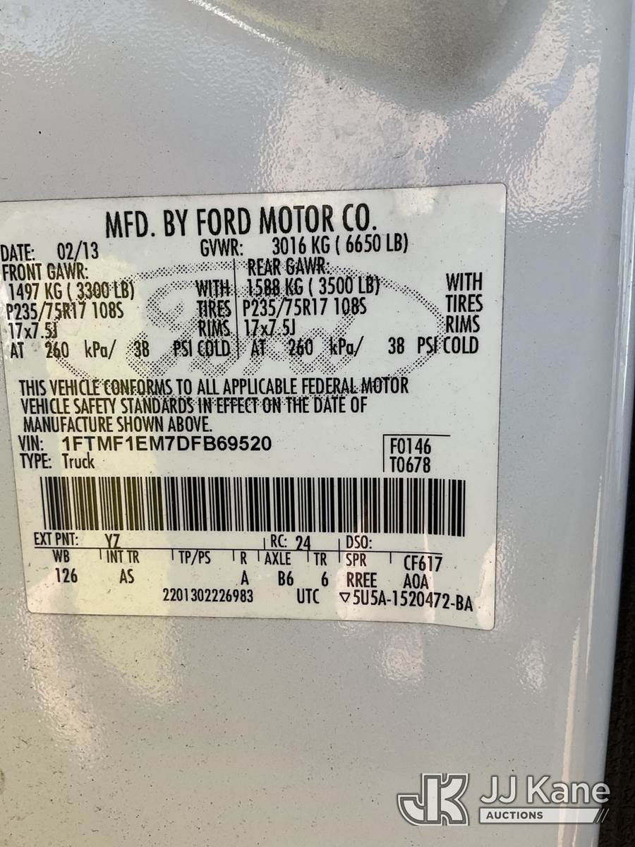 2013 Ford F-150 Pickup Truck, 6-cyl gas, 6-Speed Automatic, 4WD, A/C, (077,986 miles) (Runs & Moves) (Mileage 77986) This is a Titled Item NOTE: This unit is being sold AS IS/WHERE IS via Timed Auction and is located in Ocala, FL. For more information & removal arrangements please contact Mike Lessard @ 352-629-6677. (Buyer is responsible for removal. Assistance by consignor or JJ Kane Auctions is not assured.)