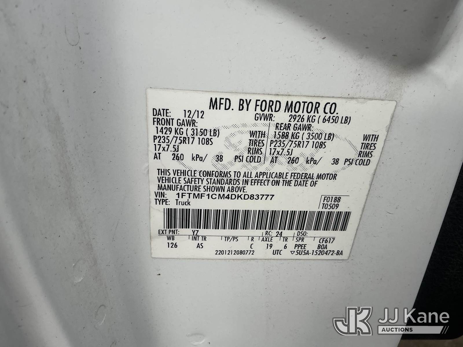 2013 Ford F-150 Pickup Truck, 6-cyl gas, RWD, Auto, A/C, (148,518 miles) (Runs & Moves, Intermittent Transmission Issue Sticking In 2nd Gear) This is a Titled Item NOTE: This unit is being sold AS IS/WHERE IS via Timed Auction and is located in Griffith, IN. For more information & removal arrangements please contact Kurt Detzler @ 317-926-8985 or kurt.detzler@jjkane.com (Buyer is responsible for removal. Assistance by consignor or JJ Kane Auctions is not assured.)