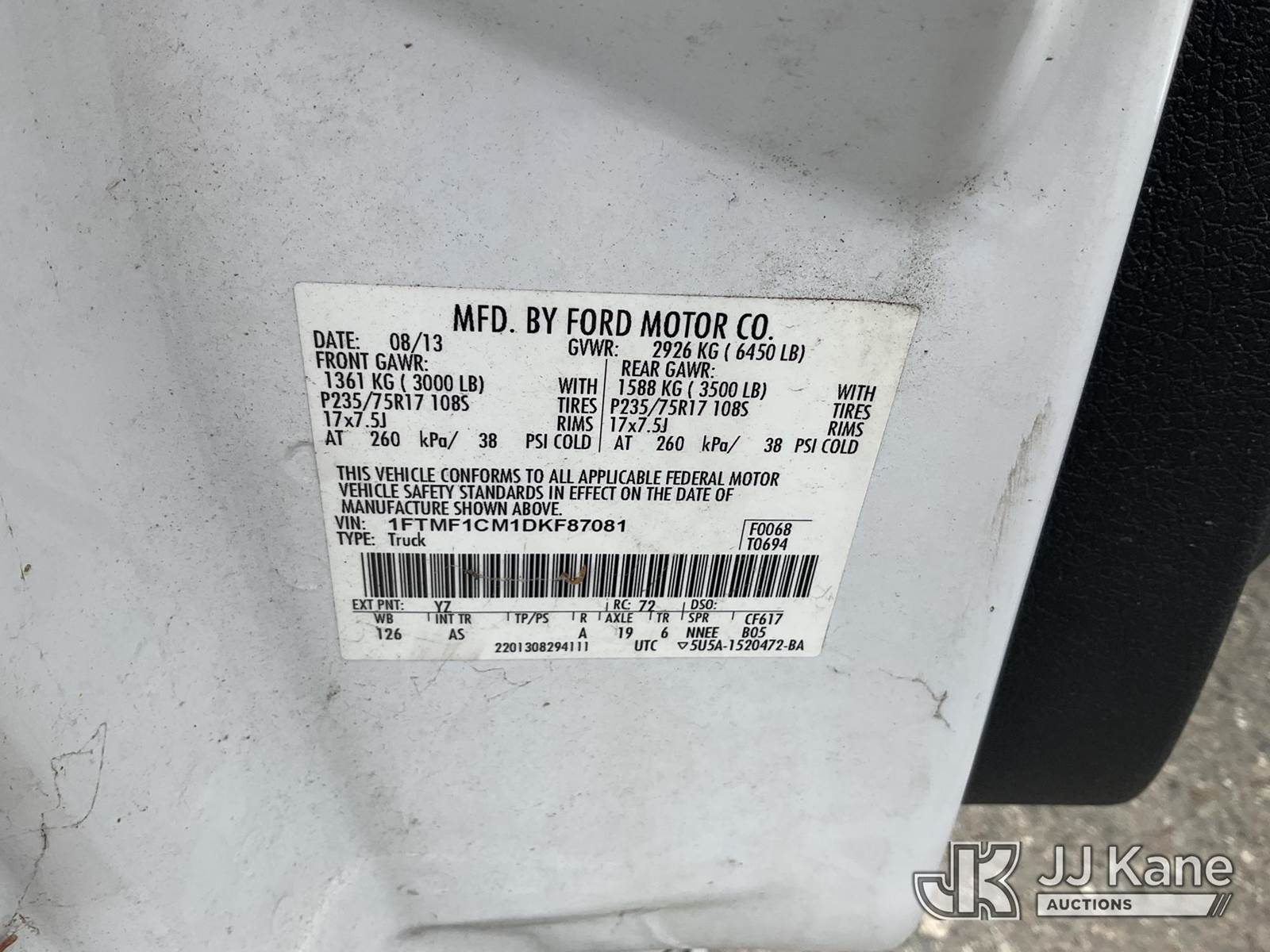 2013 Ford F-150 Pickup Truck, 6-cyl gas, 6-Speed Automatic, A/C, with Amber light, tool box, (56,253 miles) (Runs & Moves) This is a Titled Item NOTE: This unit is being sold AS IS/WHERE IS via Timed Auction and is located in Dixon, CA. Inspection & preview days for this unit are the 2 business days prior to the first day of items closing for this auction, item is located at 8668 Sparling Ln Dixon, CA 95620 and hours of operations are 8a-4p. For pre-sale questions, please contact JJ Kane Staff at (707) 678-8060 (dixon@jjkane.com). Dealer License Number 45696. (Buyer is responsible for removal. Assistance by consignor or JJ Kane Auctions is not assured.)