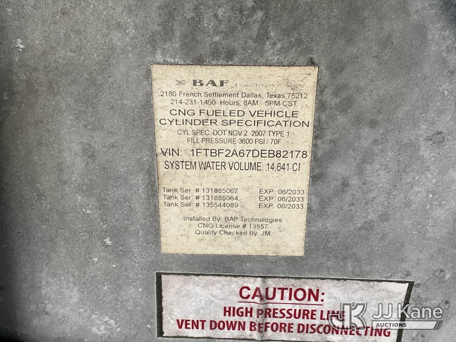 2013 Ford F-250 SD Pickup Truck, 8-cyl, CNG Only 6-Speed Automatic, A/C, with Tow package, toolbox, (149,764 miles) (Runs & Moves) (CNG Tank Expires 06-2033) This is a Titled Item NOTE: This unit is being sold AS IS/WHERE IS via Timed Auction and is located in Jurupa Valley, CA. Inspection & preview days for this unit are the 2 business days prior to the first day of items closing for this auction, item is located at 4510 Muth Way Jurupa Valley, CA 92509 and hours of operations are 8a-4p. For pre-sale questions, please contact please contact Office Staff @ (310) 353-7140. Dealer License Number 45696. (Buyer is responsible for removal. Assistance by consignor or JJ Kane Auctioneers is not assured.)