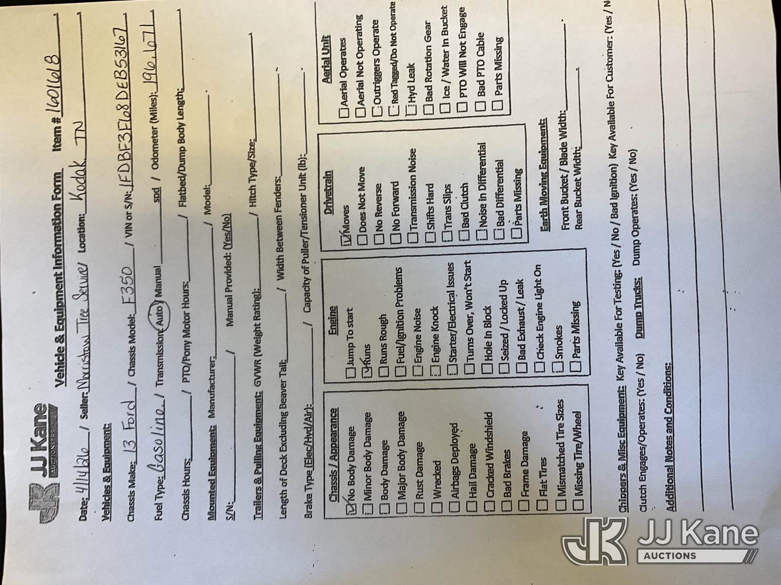 2013 Ford F-350 SD Service Truck, 8-cyl gas, 4WD, Auto, A/C, (196,671 miles) (Runs & Moves) This is a Titled Item NOTE: This unit is being sold AS IS/WHERE IS via Timed Auction and is located in Kodak, TN. Inspection & preview days for this unit are by appointment only; please contact us at contact@jjkane.com or 84-Go-JJKane for more details. (Buyer is responsible for removal. Assistance by consignor or JJ Kane Auctions is not assured.)