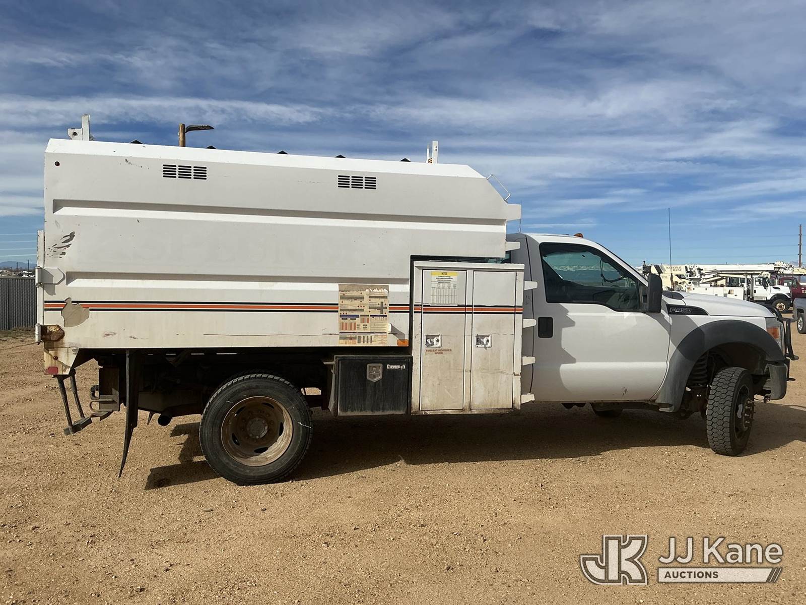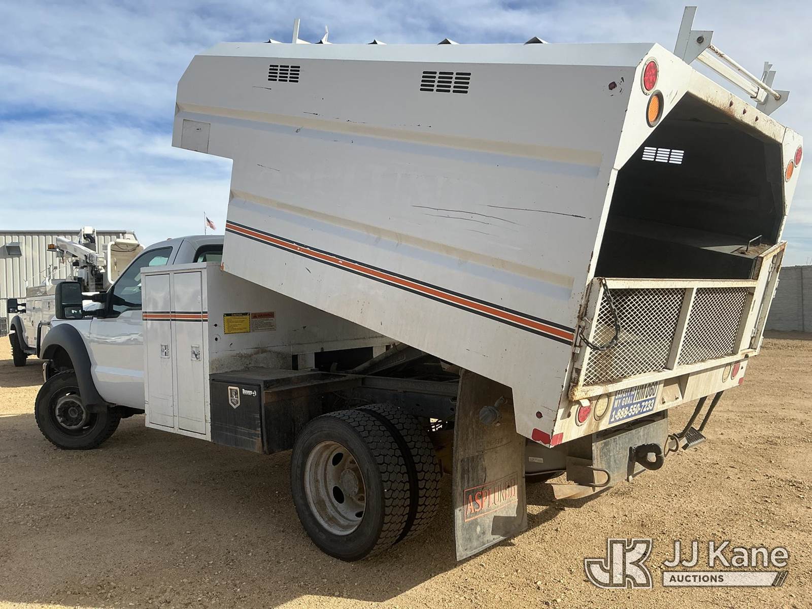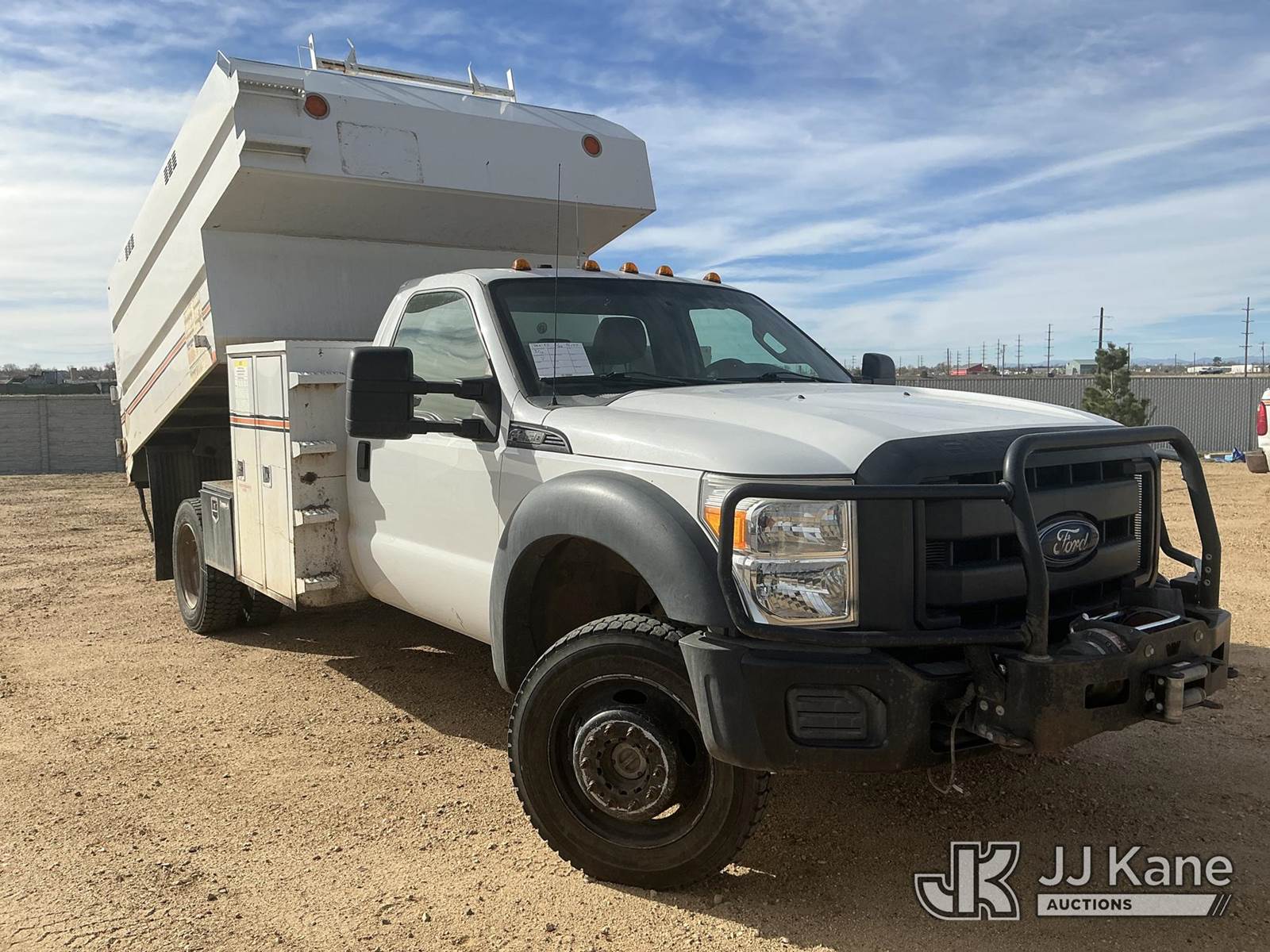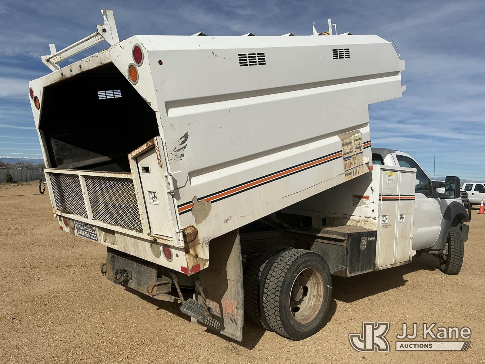2013 Ford F-450 SD Chipper Dump Truck, 10-cyl gas, 4WD, Auto, A/C, with SouthCO Dump Bed, Front Bumper Winch, (062,359 miles) (Runs, Moves & Dump Operates) (Seller States: Needs Front End Work & Complete Brake Replacement) (Check Engine Light On: Condition Unknown, Dash Box Does Not Latch) (Reads 5,503 hours) This is a Titled Item NOTE: This unit is being sold AS IS/WHERE IS via Timed Auction and is located in Fort Lupton, CO. Inspection & preview days for this unit are the 2 business days prior to the first day of items closing for this auction, item is located at 2105 Northland Dr Fort Lupton, CO 80621 and hours of operations are 8a-4p. For pre-sale questions, please contact Dakota Hoffman @ (720) 621-0786. Dealer License Number 47109. (Buyer is responsible for removal. Assistance by consignor or JJ Kane Auctions is not assured.)