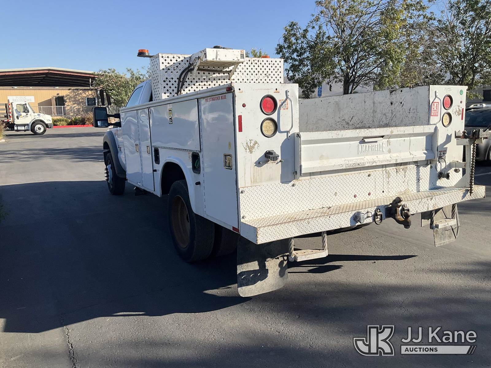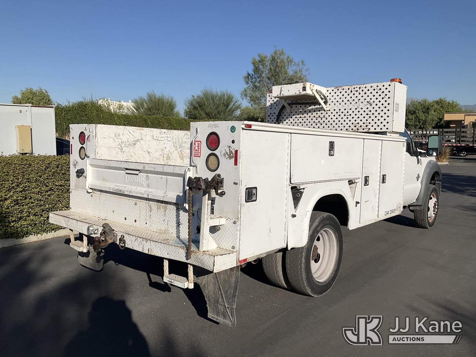 2013 Ford F-450 SD Service Truck, 6.7L Auto, diesel, A/C, with Tow Package , (137,201 miles) (Runs & Moves ) May be subject to ARB Regulations This is a Titled Item NOTE: This unit is being sold AS IS/WHERE IS via Timed Auction and is located in Jurupa Valley, CA. Inspection & preview days for this unit are the 2 business days prior to the first day of items closing for this auction, item is located at 4510 Muth Way Jurupa Valley, CA 92509 and hours of operations are 8a-4p. For pre-sale questions, please contact please contact Office Staff @ (310) 353-7140. Dealer License Number 45696. (Buyer is responsible for removal. Assistance by consignor or JJ Kane Auctioneers is not assured.)