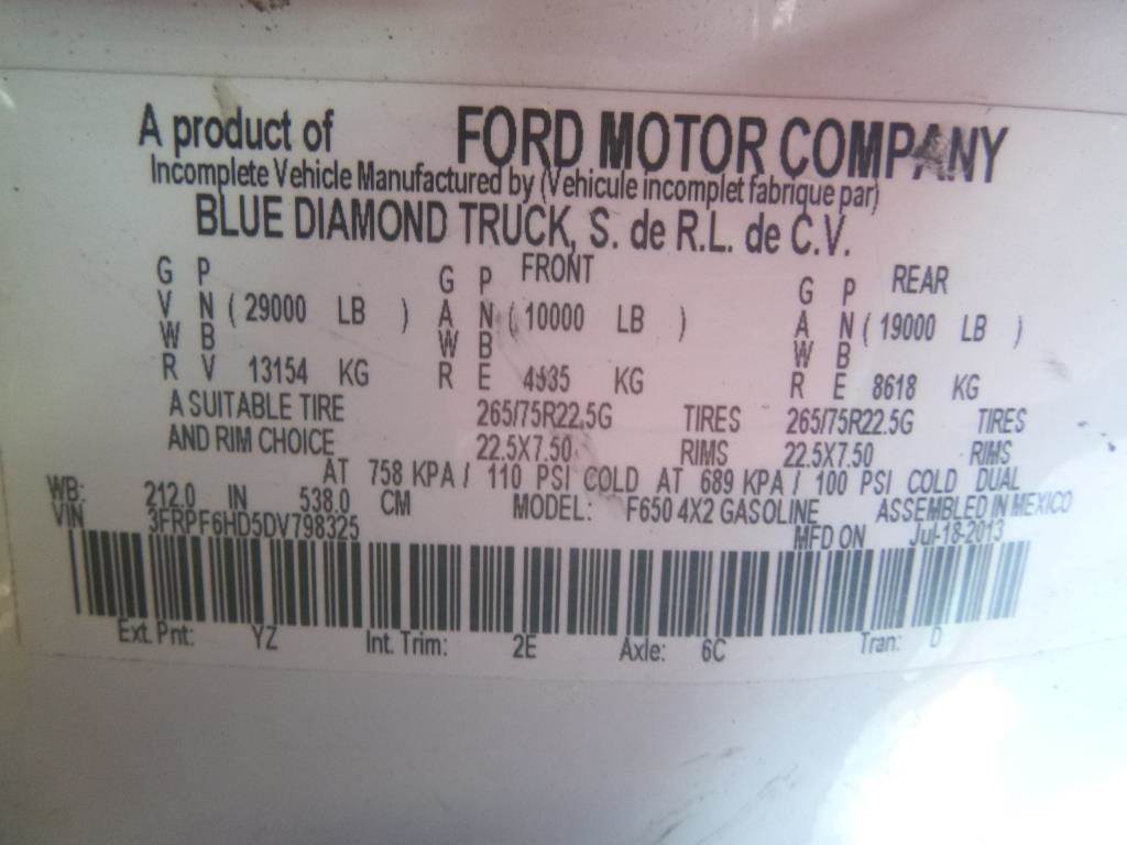 VIN: 3FRPF6HD5DV798325 6.8L V10 Propane, Automatic, 29,000lbs GVWR, 10,000lbs Front Axle, 19,000lbs Rear Axle, AC, Heat, CD, Cruise Control, Power Windows, Power Locks, PTO, Hydraulic Brakes, VanAir Hydraulic Air Compressor W/Hoses & Reels, Heated Asphalt/Tar Unit W/Hoses & Reels, Spring Suspension, 212" Wheel Base, 22.5" Tire Size Odometer Reading: 009,878 Disclaimer: Mileage and hours are visually observed and not verified.