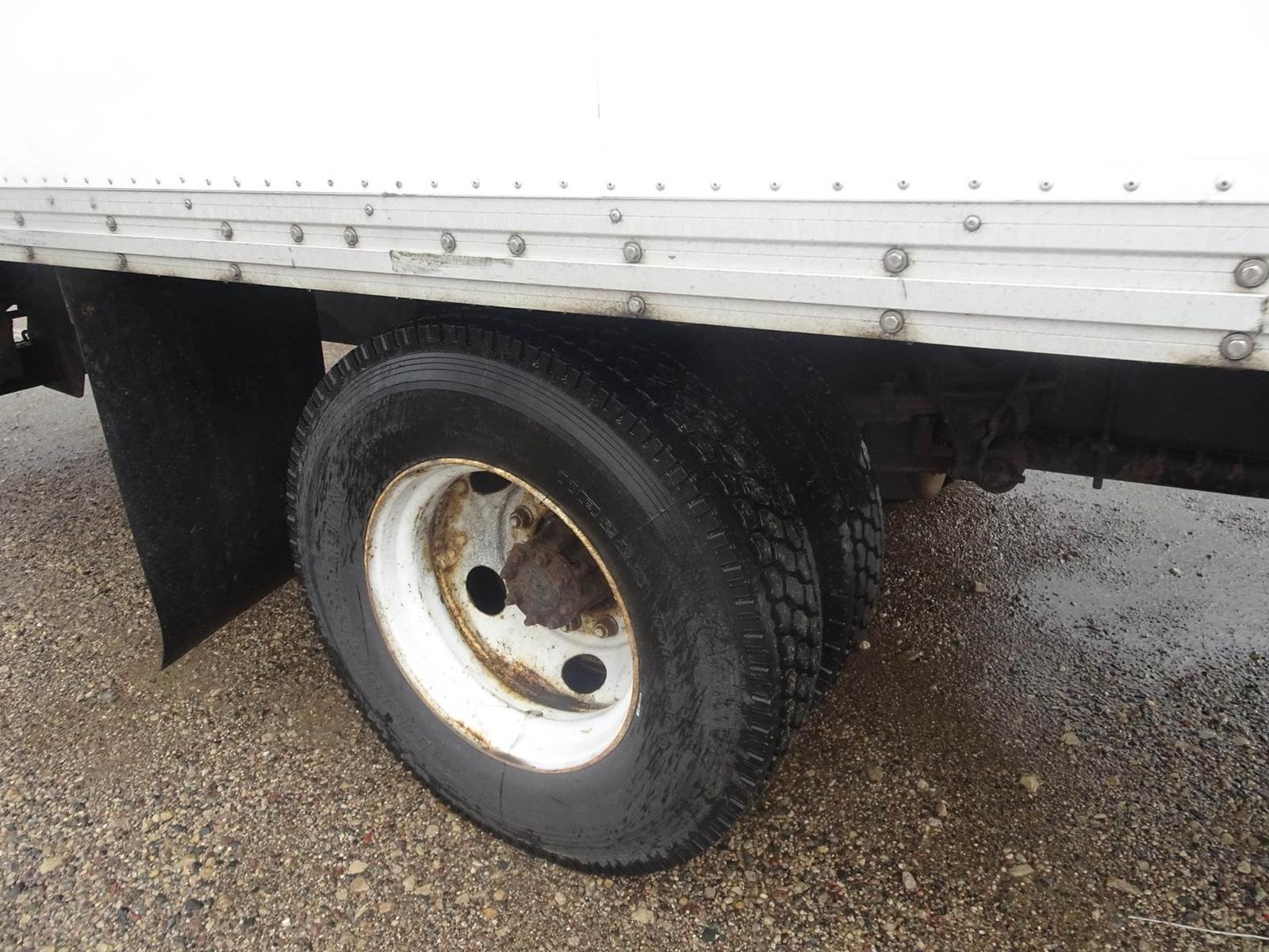 runs but needs work, posswible injector out, windshield cracked, driveline is pulled, 26' van, auto, hyd. brakes,