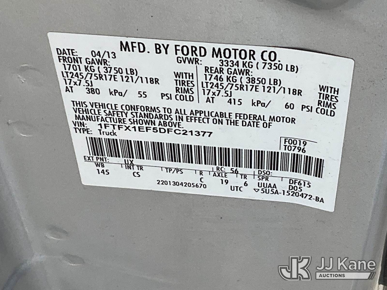 2013 Ford F150 4x4 Extended-Cab Pickup Truck, 8-cyl gas, Auto, A/C, (113,277 miles) (Runs & Moves) This is a Titled Item NOTE: This unit is being sold AS IS/WHERE IS via Timed Auction and is located in Salt Lake City, UT. Inspection & preview days for this unit are the 2 business days prior to the first day of items closing for this auction, item is located at 2353 N Redwood Rd Salt Lake City, UT 84116 and hours of operations are 8a-4p. Titles executed exactly as bidder registered. Ensure your name and/or business name and address in JJ Kane and/or ProxiBid is correct before bidding. For pre-sale questions, please contact Office Staff @ (801) 519-0123. (Buyer is responsible for removal. Assistance by consignor or JJ Kane Auctions is not assured.)