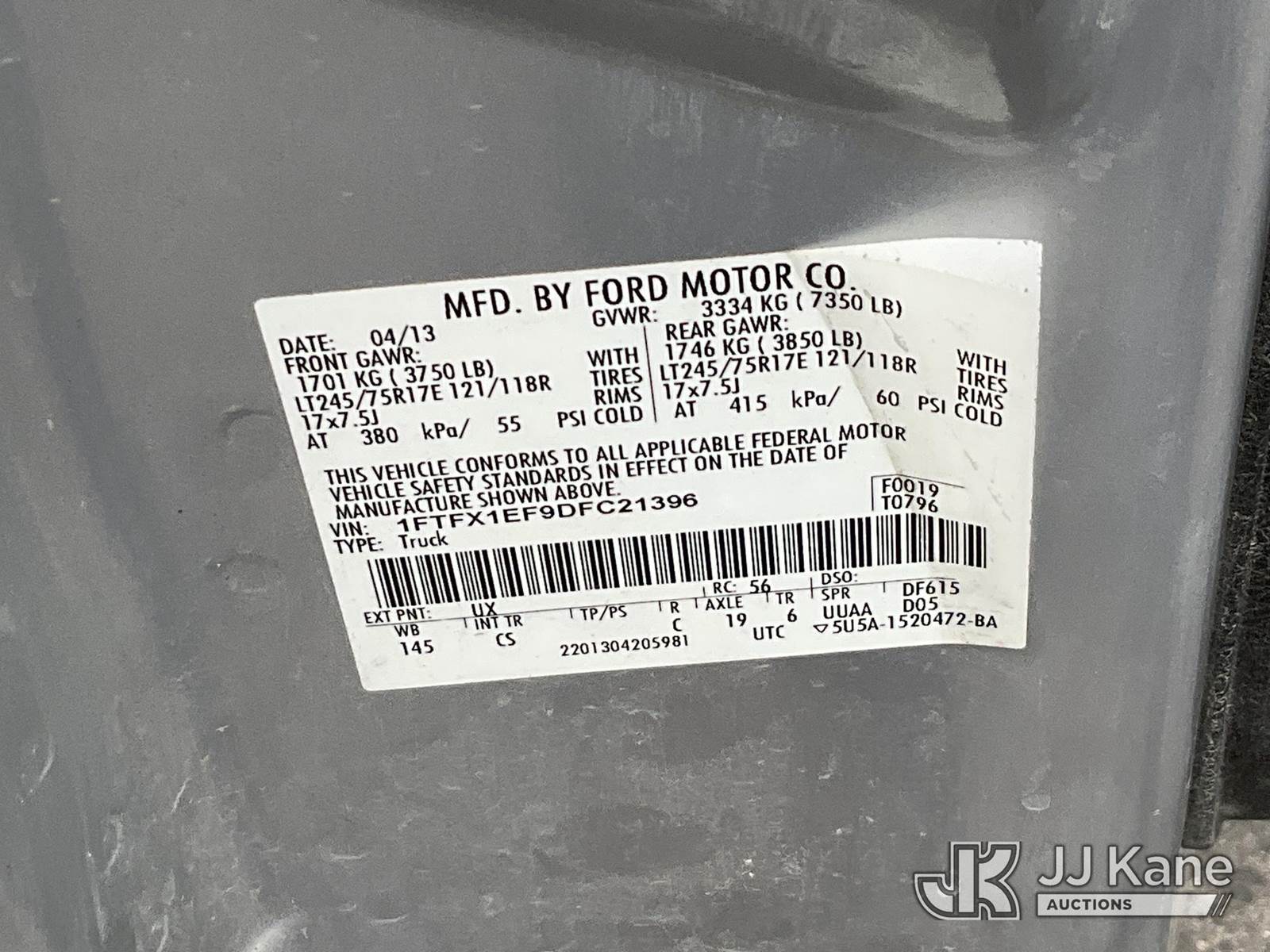2013 Ford F150 4x4 Extended-Cab Pickup Truck, 8-cyl gas, Auto, A/C, (199,231 miles) (Runs & Moves) This is a Titled Item NOTE: This unit is being sold AS IS/WHERE IS via Timed Auction and is located in Salt Lake City, UT. Inspection & preview days for this unit are the 2 business days prior to the first day of items closing for this auction, item is located at 2353 N Redwood Rd Salt Lake City, UT 84116 and hours of operations are 8a-4p. Titles executed exactly as bidder registered. Ensure your name and/or business name and address in JJ Kane and/or ProxiBid is correct before bidding. For pre-sale questions, please contact Office Staff @ (801) 519-0123. (Buyer is responsible for removal. Assistance by consignor or JJ Kane Auctions is not assured.)