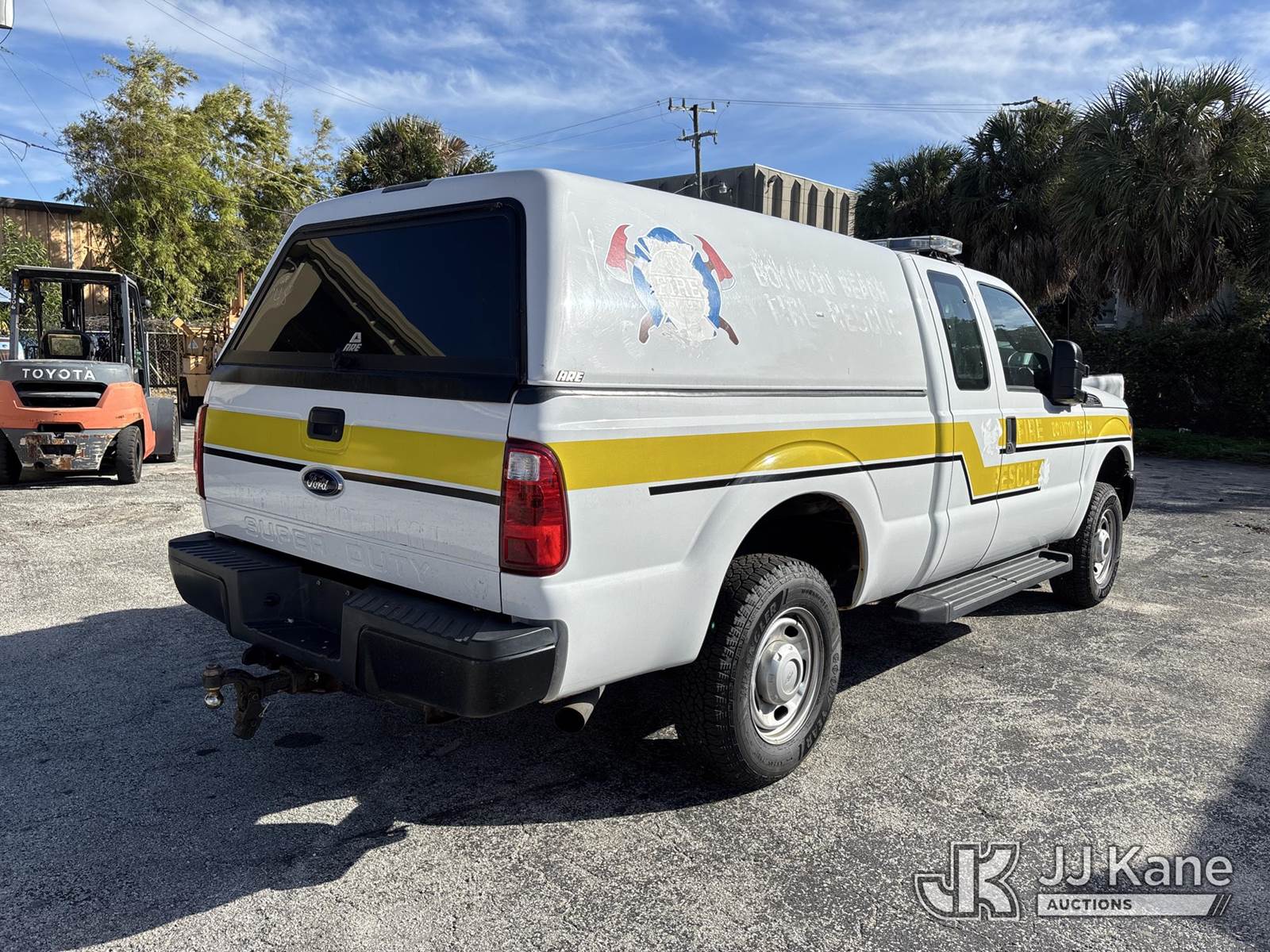 2013 Ford F250 4x4 Extended-Cab Pickup Truck, 8-cyl gas, Auto, A/C, with bed cap & bed slide, (8,032 miles) (Not Running, Condition Unknown) (Body/Paint Damage) (Seller States: Engine Caught Fire) (FL Residents Purchasing Titled Items - tax, title & registration fees will be collected at the maximum rate of $400.00 under 25,999 and $800.00 for Over 26,000 and $250.00 trailers - Proof of insurance is mandatory; Out of State Residents Purchasing Title Items - tax will be collected based upon your state rate.) This is a Titled Item NOTE: This unit is being sold AS IS/WHERE IS via Timed Auction and is located in West Palm Beach, FL. Inspection & preview days for this unit are the 2 business days prior to the first day of items closing for this auction, item is located at 2570 Old Okeechobee Rd West Palm Beach, FL 33409 and hours of operations are 8a-4p. For pre-sale questions, please contact Andy Garcia @ (561) 215-0085. (Buyer is responsible for removal. Assistance by consignor or JJ Kane Auctions is not assured.)