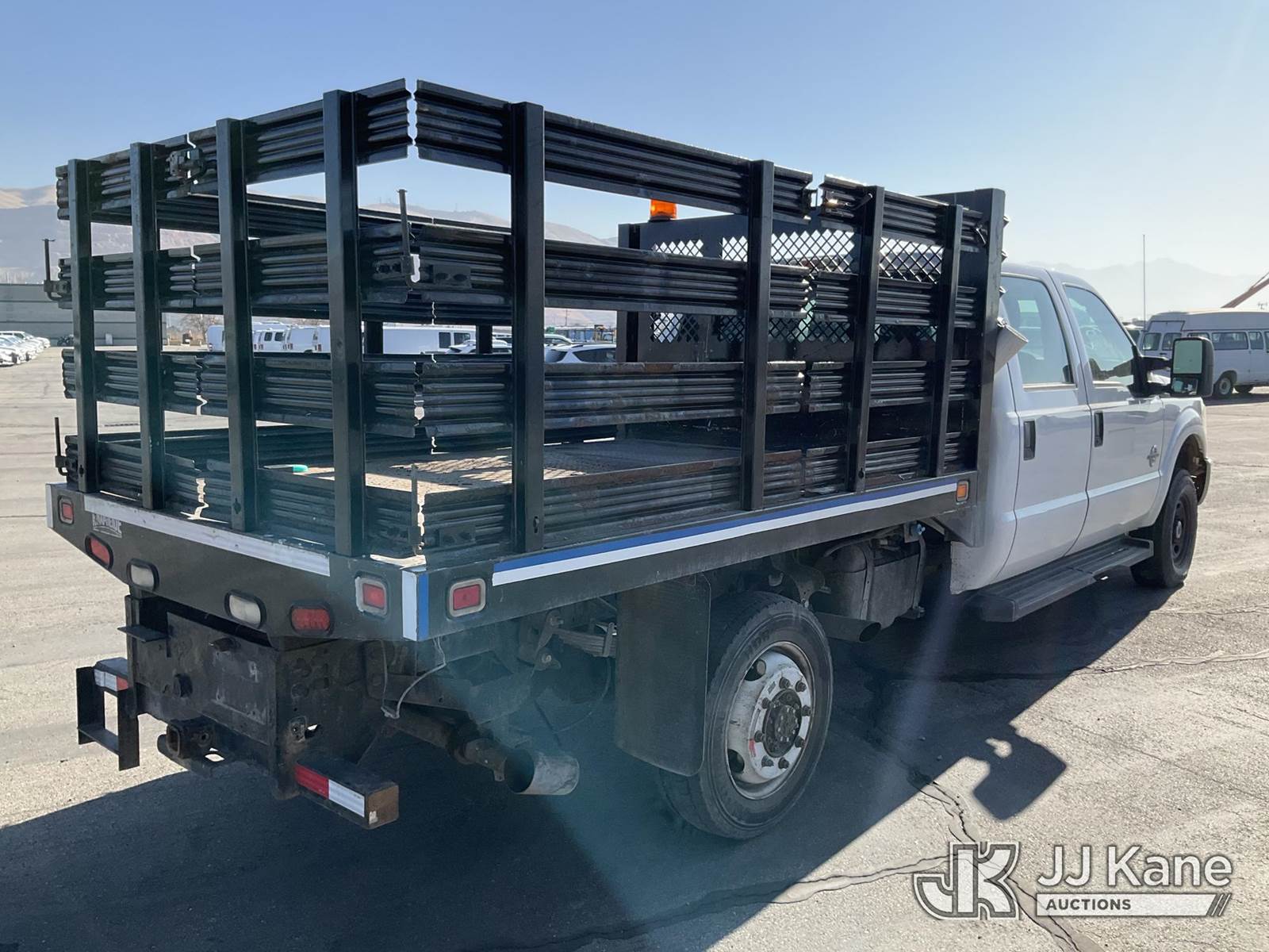 2013 Ford F350 4x4 Crew-Cab Flatbed Truck, 6.7L diesel, Auto, A/C, with stake sides, (155,811 miles) (Runs & Moves) (Check Engine & Airbag Lights On, Body Damage, Missing Rear Door Window) This is a Titled Item NOTE: This unit is being sold AS IS/WHERE IS via Timed Auction and is located in Salt Lake City, UT. Inspection & preview days for this unit are the 2 business days prior to the first day of items closing for this auction, item is located at 2353 N Redwood Rd Salt Lake City, UT 84116 and hours of operations are 8a-4p. Titles executed exactly as bidder registered. Ensure your name and/or business name and address in JJ Kane and/or ProxiBid is correct before bidding. For pre-sale questions, please contact Office Staff @ (801) 519-0123. (Buyer is responsible for removal. Assistance by consignor or JJ Kane Auctions is not assured.)