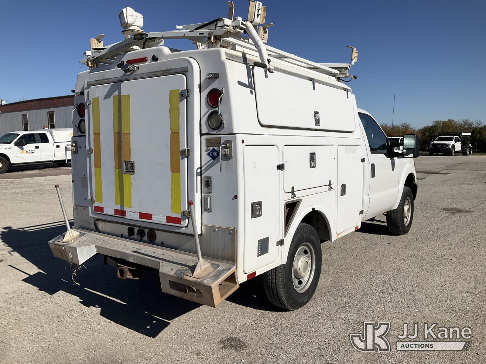 2013 Ford F350 4x4 Enclosed Service Truck, 8-cyl, Auto, CNG Only, A/C, with Cummins onan 7kw generator, (108,485 miles) (Runs & Moves) (Check Engine Light & Brake System Light On, Runs Rough, Has Exhaust Leak, Flashing Light On The Top Of Cab Smokes At Electrical Wire.) This is a Titled Item NOTE: This unit is being sold AS IS/WHERE IS via Timed Auction and is located in Kansas City, MO. For pre-sale questions or to schedule an inspection, please contact Ricky McPherson @ 816-610-2250. (Buyer is responsible for removal. Assistance by consignor or JJ Kane Auctioneers is not assured.)