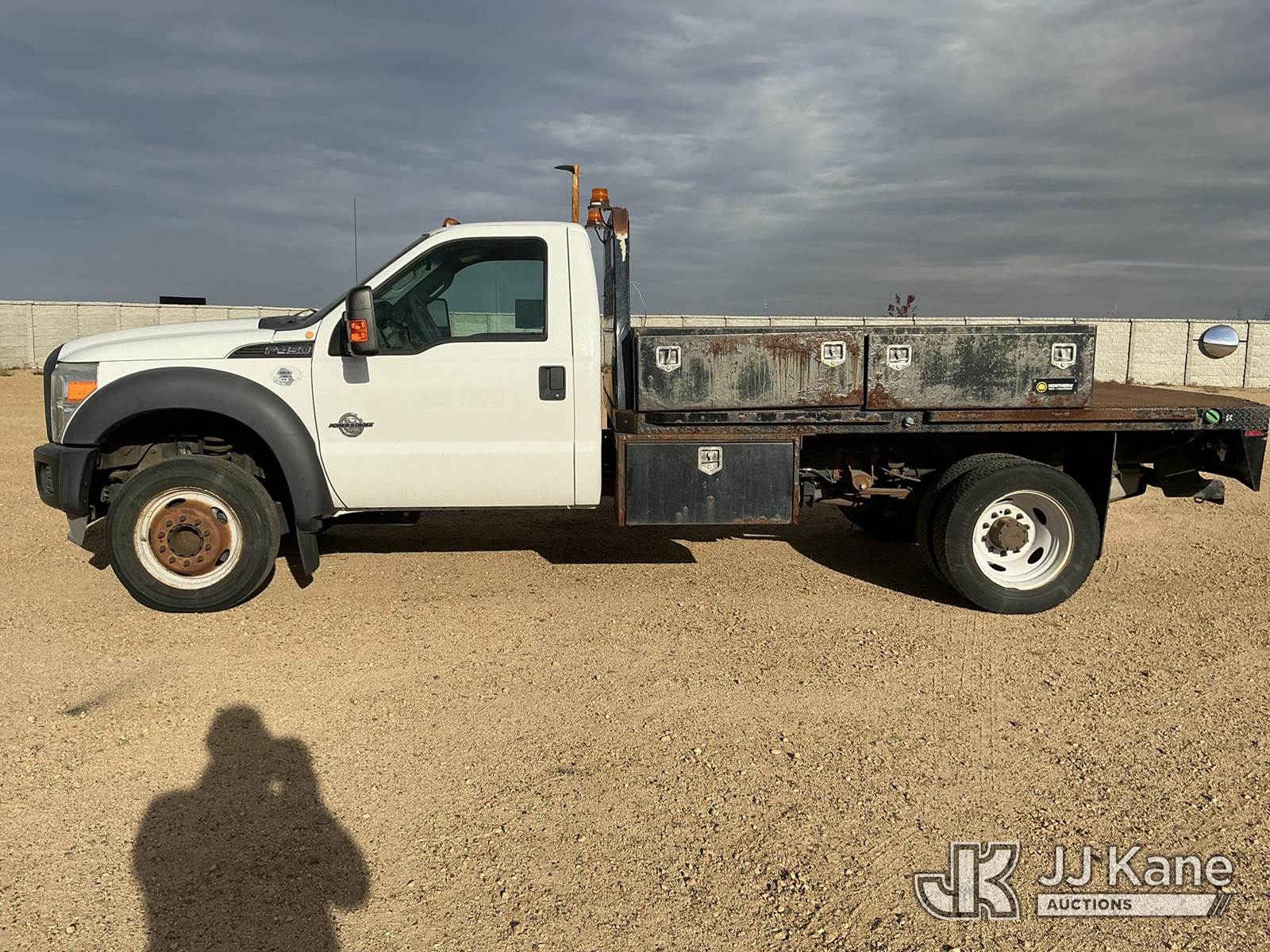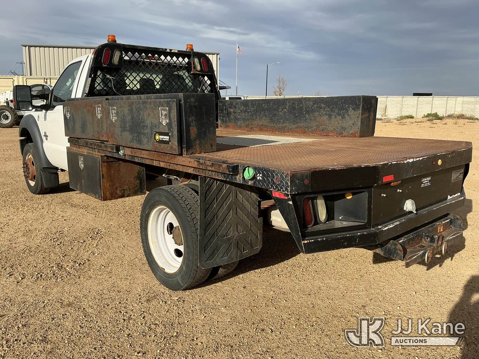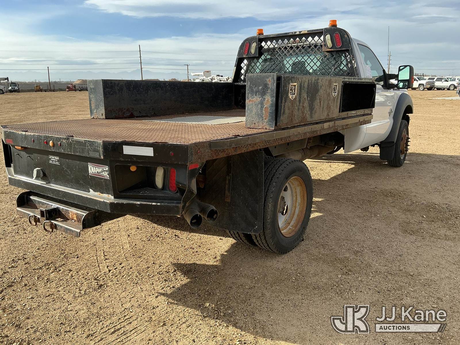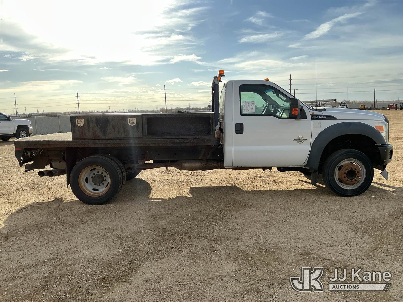 2013 Ford F450 SD Flatbed/Service Truck, 6.7L Auto, diesel, A/C, (096,521 miles) (Jump To Run & Move) (Non-Drive Away Removal Only, Stops Running When Jump Removed, Drivers Side Reverse Light Out) This is a Titled Item NOTE: This unit is being sold AS IS/WHERE IS via Timed Auction and is located in Fort Lupton, CO. Inspection & preview days for this unit are the 2 business days prior to the first day of items closing for this auction, item is located at 2105 Northland Dr Fort Lupton, CO 80621 and hours of operations are 8a-4p. For pre-sale questions, please contact Dakota Hoffman @ (720) 621-0786. Dealer License Number 47109. (Buyer is responsible for removal. Assistance by consignor or JJ Kane Auctioneers is not assured.)