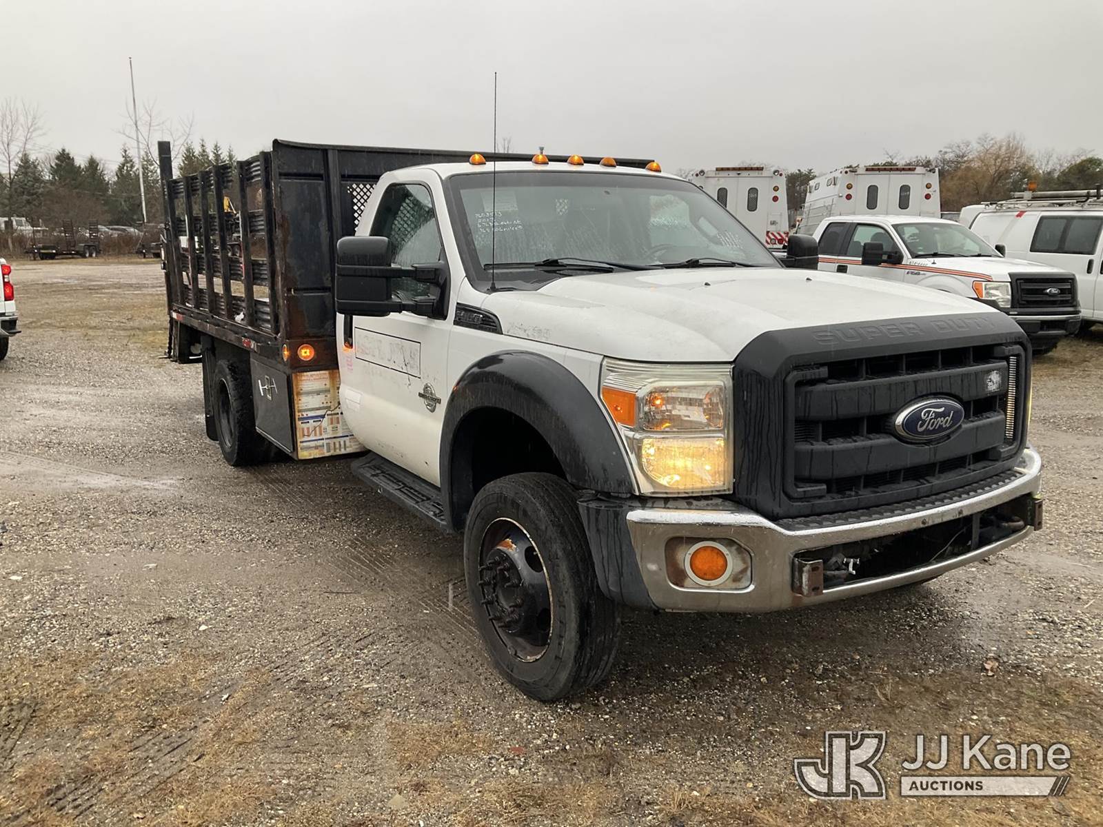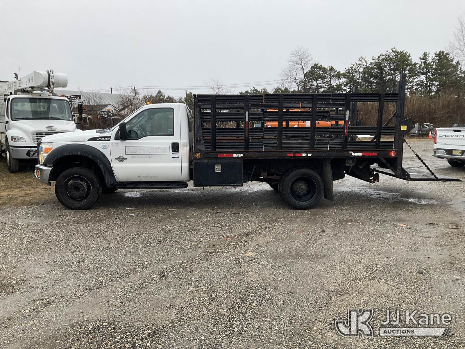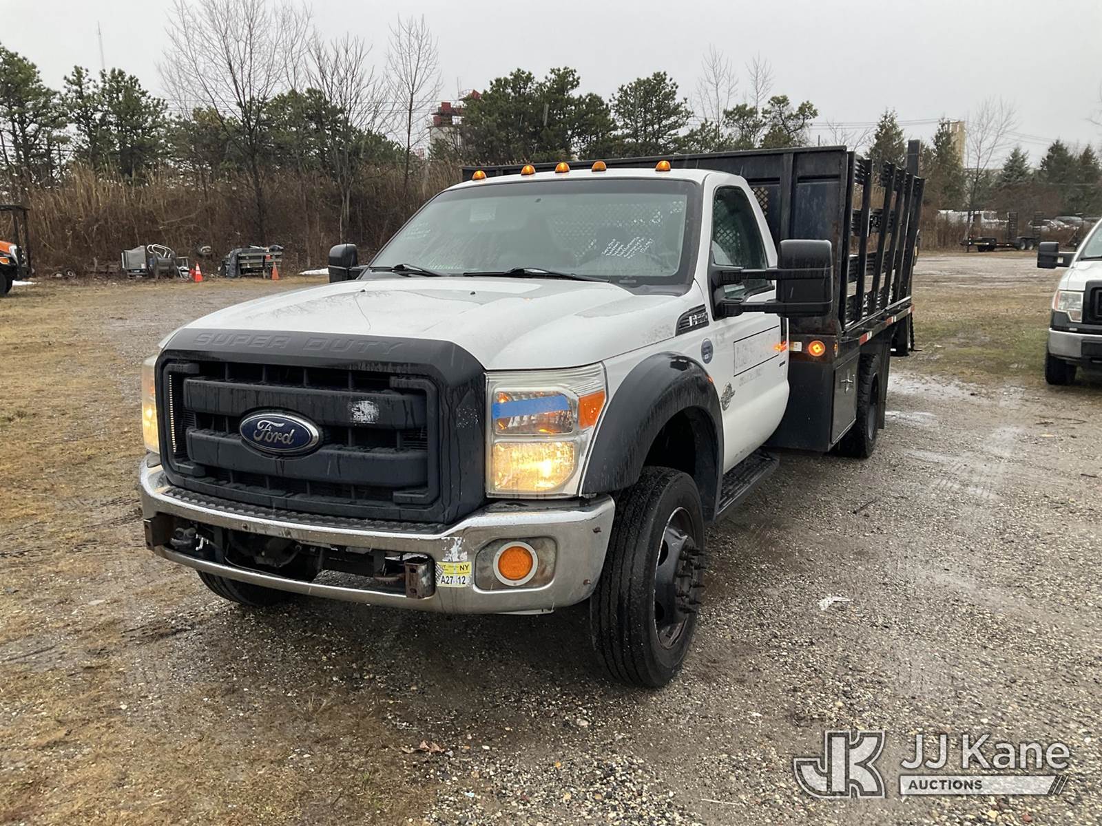 2013 Ford F550 2WD Flatbed Truck, 6.7L Auto, diesel, with 12ft Body, Stake Sides & Liftgate, (168,306 miles) (Jump To Start, Runs & Moves, Liftgate Operates, Bad Engine, Body & Rust Damage, Check Engine Light On, Must Tow) (Removal is by Appointment Only, Buyer MUST make a appointment prior to picking up, Buyer/Transporter Must have PAID IN FULL RELEASE. No onsite assistance available, Please Come prepared.) This is a Titled Item NOTE: This unit is being sold AS IS/WHERE IS via Timed Auction and is located in Bellport, NY. Inspection & preview days for this unit are by appointment only; please contact us at contact@jjkane.com or 84-Go-JJKane for more details. (Buyer is responsible for removal. Assistance by consignor or JJ Kane Auctions is not assured.)