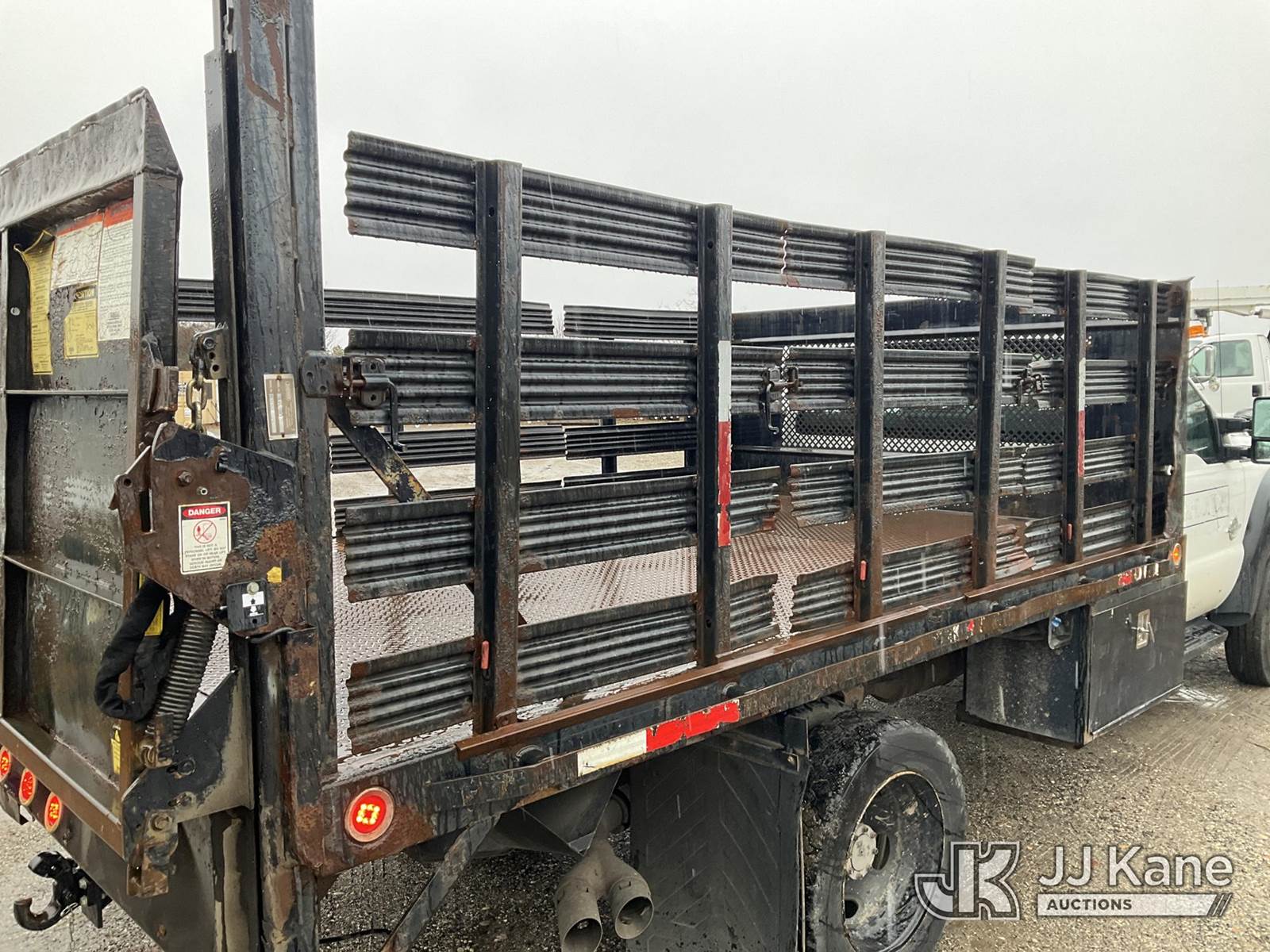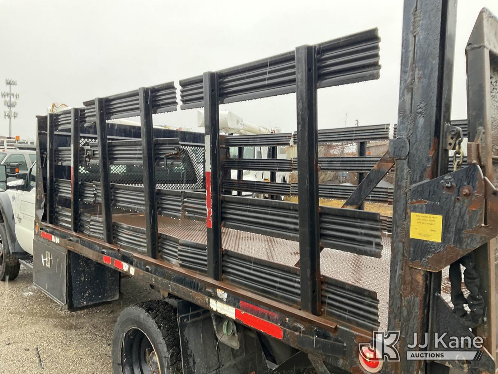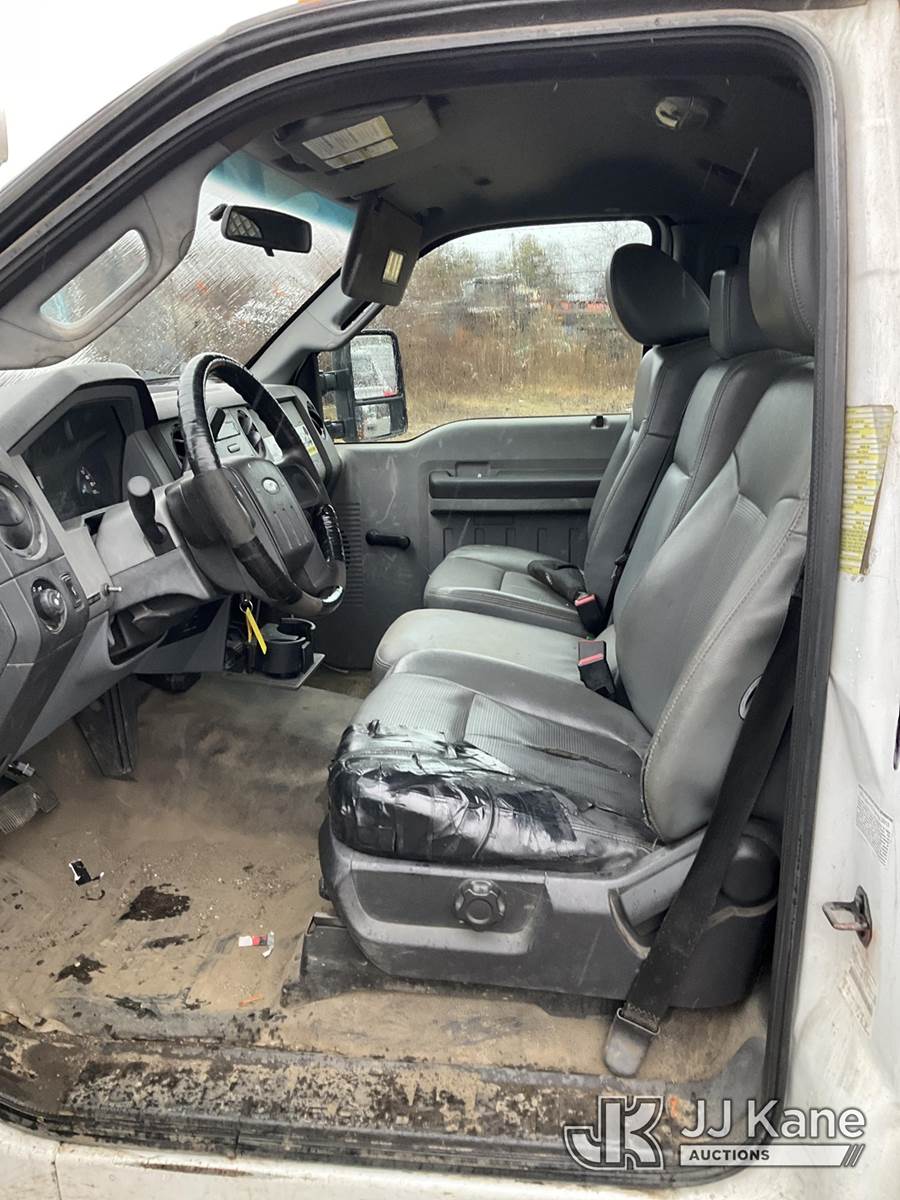 2013 Ford F550 2WD Flatbed Truck, 6.7L Auto, diesel, with 12ft Body, Stake Sides & Liftgate, (168,306 miles) (Jump To Start, Runs & Moves, Liftgate Operates, Bad Engine, Body & Rust Damage, Check Engine Light On, Must Tow) (Removal is by Appointment Only, Buyer MUST make a appointment prior to picking up, Buyer/Transporter Must have PAID IN FULL RELEASE. No onsite assistance available, Please Come prepared.) This is a Titled Item NOTE: This unit is being sold AS IS/WHERE IS via Timed Auction and is located in Bellport, NY. Inspection & preview days for this unit are by appointment only; please contact us at contact@jjkane.com or 84-Go-JJKane for more details. (Buyer is responsible for removal. Assistance by consignor or JJ Kane Auctions is not assured.)