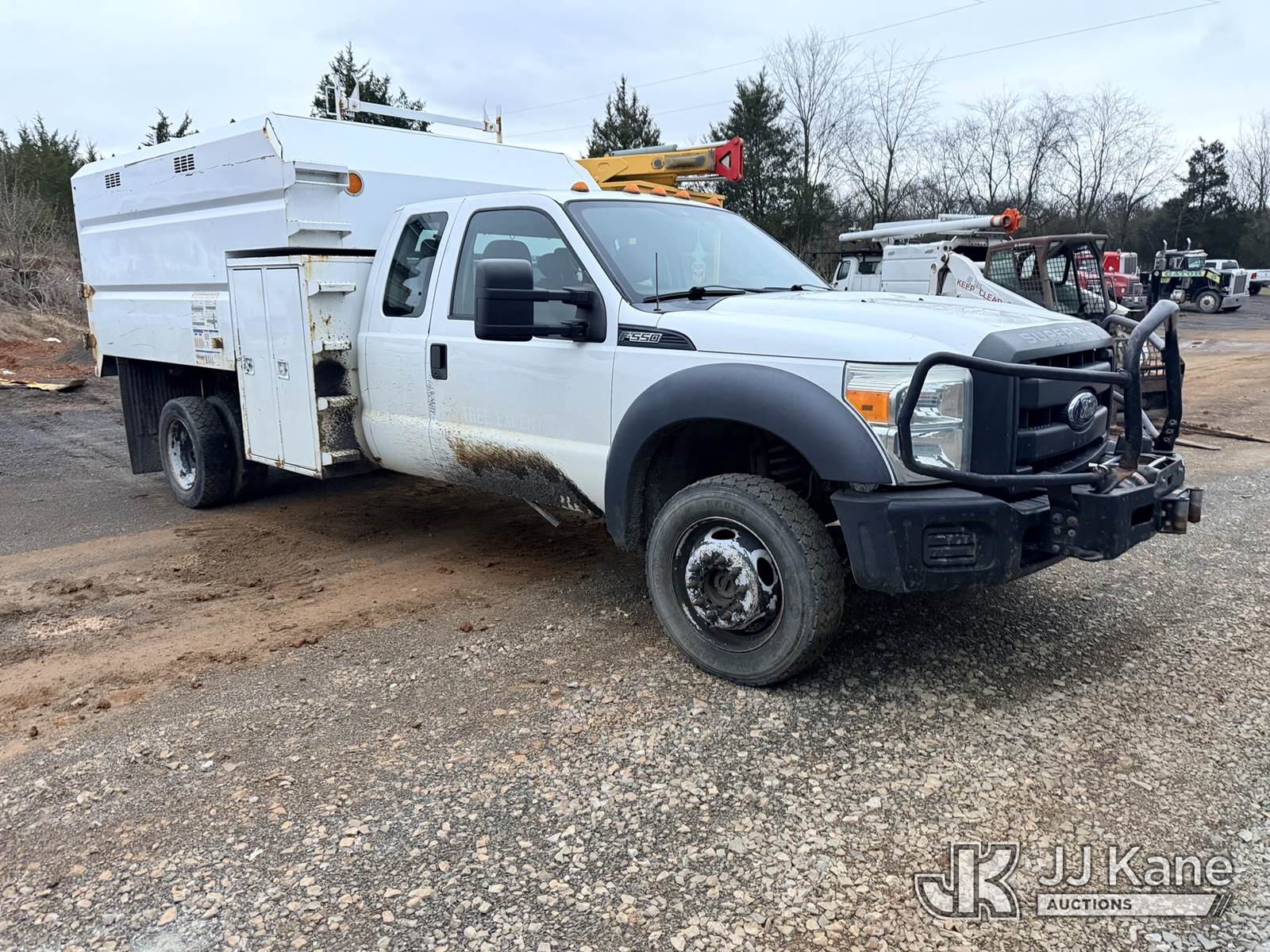 2013 Ford F550 4x4 Chipper Dump Truck, 6.8L V10 SOHC 30V Gas, Auto, with front winch, (98,817 miles (unverified)) (Runs, Does Not Move, Bad Transmission, Condition Unknown) (Seller States: Random Misfires) This is a Titled Item NOTE: This unit is being sold AS IS/WHERE IS via Timed Auction and is located in Kodak, TN. Inspection & preview days for this unit are by appointment only; please contact us at contact@jjkane.com or 84-Go-JJKane for more details. (Buyer is responsible for removal. Assistance by consignor or JJ Kane Auctions is not assured.)