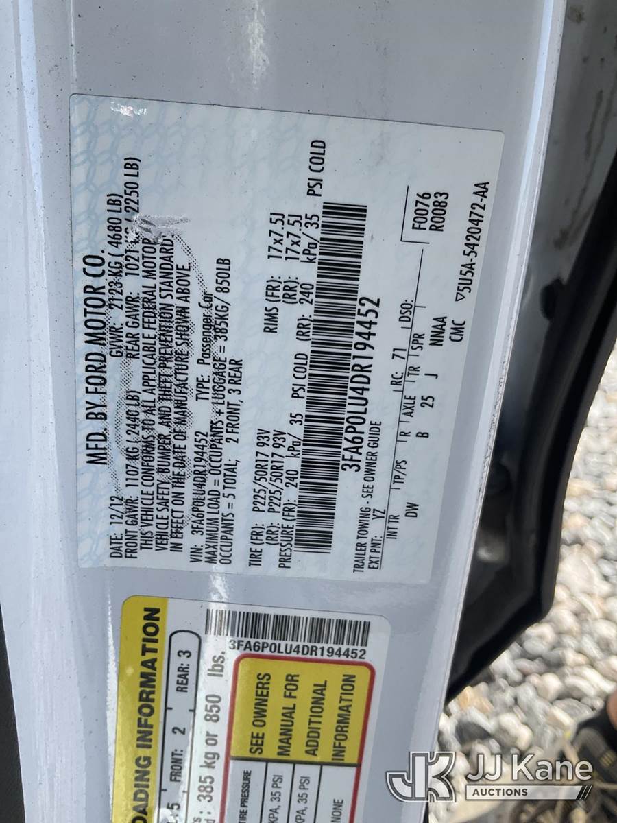 2013 Ford Fusion 4-Door Hybrid Sedan, 4-cyl, Auto, HYBRID, A/C, (68,379 miles (unverified)) (Jump To Start/Moves) (Will Not Stay Running, Bad Hybrid Battery) This is a Titled Item NOTE: This unit is being sold AS IS/WHERE IS via Timed Auction and is located in Las Vegas, NV. Inspection & preview days for this unit are the 2 business days prior to the first day of items closing for this auction, item is located at 14655 Grand Valley Pkwy Las Vegas, NV 89165 and hours of operations are 8a-4p. Titles executed exactly as bidder registered. Ensure your name and/or business name and address in JJ Kane and/or ProxiBid is correct before bidding. For pre-sale questions, please contact Office Staff @ (801) 519-0123 and provide sale date and lot number. Las Vegas Dealer License Number DLR000053086 / OHV000053094. (Buyer is responsible for removal. Assistance by consignor or JJ Kane Auctioneers is not assured.)