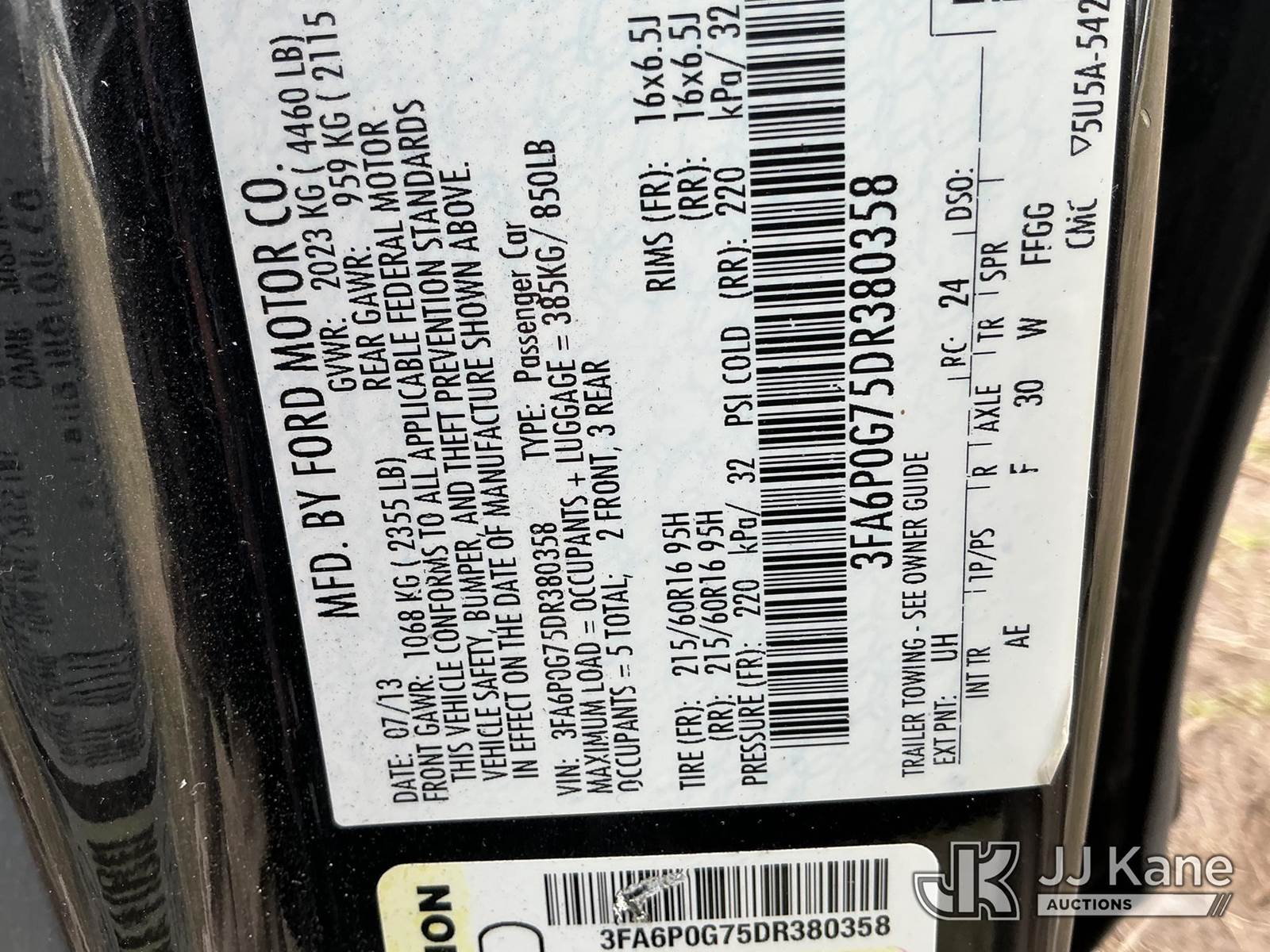 2013 Ford Fusion 4-Door Sedan, 2.5L L4 DOHC 16V gas, Auto, FWD, A/C, (72,310 miles) State of FL Unit (Runs & Moves) (Jump To Start, Paint Damage)(FL Residents Purchasing Titled Items - tax, title & registration fees will be collected at the maximum rate of $400.00 under 25,999 and $800.00 for Over 26,000 and $250.00 trailers - Proof of insurance is mandatory; Out of State Residents Purchasing Title Items - tax will be collected based upon your state rate.) (Branded Title - Police Vehicle) This is a Titled Item NOTE: This unit is being sold AS IS/WHERE IS via Timed Auction and is located in Thonotosassa, FL. Inspection & preview days for this unit are the 2 business days prior to the first day of items closing for this auction, item is located at 11720 N US 301 Thonotosassa, Fl 33592 and hours of operations are 8a-4p. For pre-sale questions, please contact Office Staff @ (813) 986-2485. (Buyer is responsible for removal. Assistance by consignor or JJ Kane Auctions is not assured.)