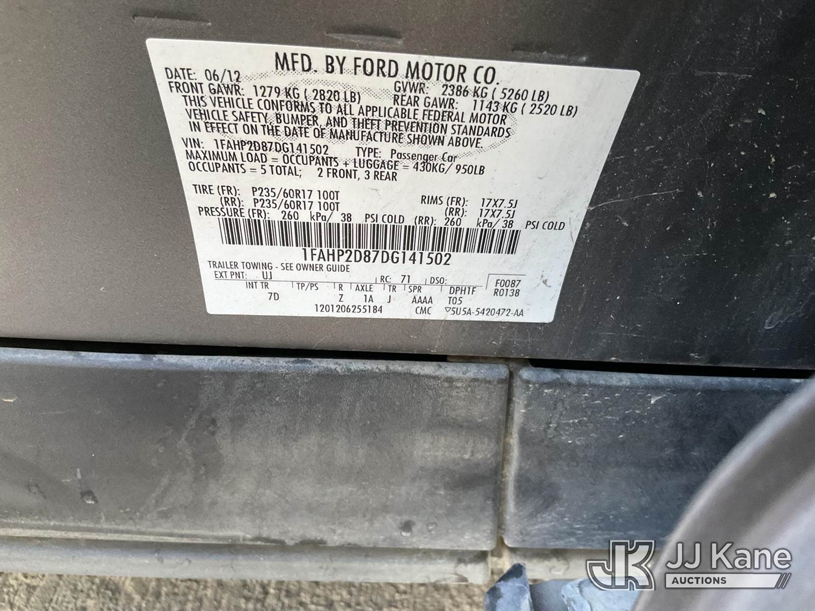 2013 Ford Taurus 4-Door Sedan, 6-cyl gas, FWD, 6-Speed Automatic, A/C, (88,433 miles) (Runs & Moves, Vehicle previously used with a ‘cold plate’ or protected record registration. Due to the prior status, VIN may not yet appear in NMVTIS, which could affect DMV title/registration processing. Buyer acknowledges and accepts this) This is a Titled Item NOTE: This unit is being sold AS IS/WHERE IS via Timed Auction and is located in Jurupa Valley, CA. Inspection & preview days for this unit are the 2 business days prior to the first day of items closing for this auction, item is located at 4510 Muth Way Jurupa Valley, CA 92509 and hours of operations are 8a-4p. For pre-sale questions, please contact please contact Office Staff @ (310) 353-7140. Dealer License Number 45696. (Buyer is responsible for removal. Assistance by consignor or JJ Kane Auctions is not assured.)