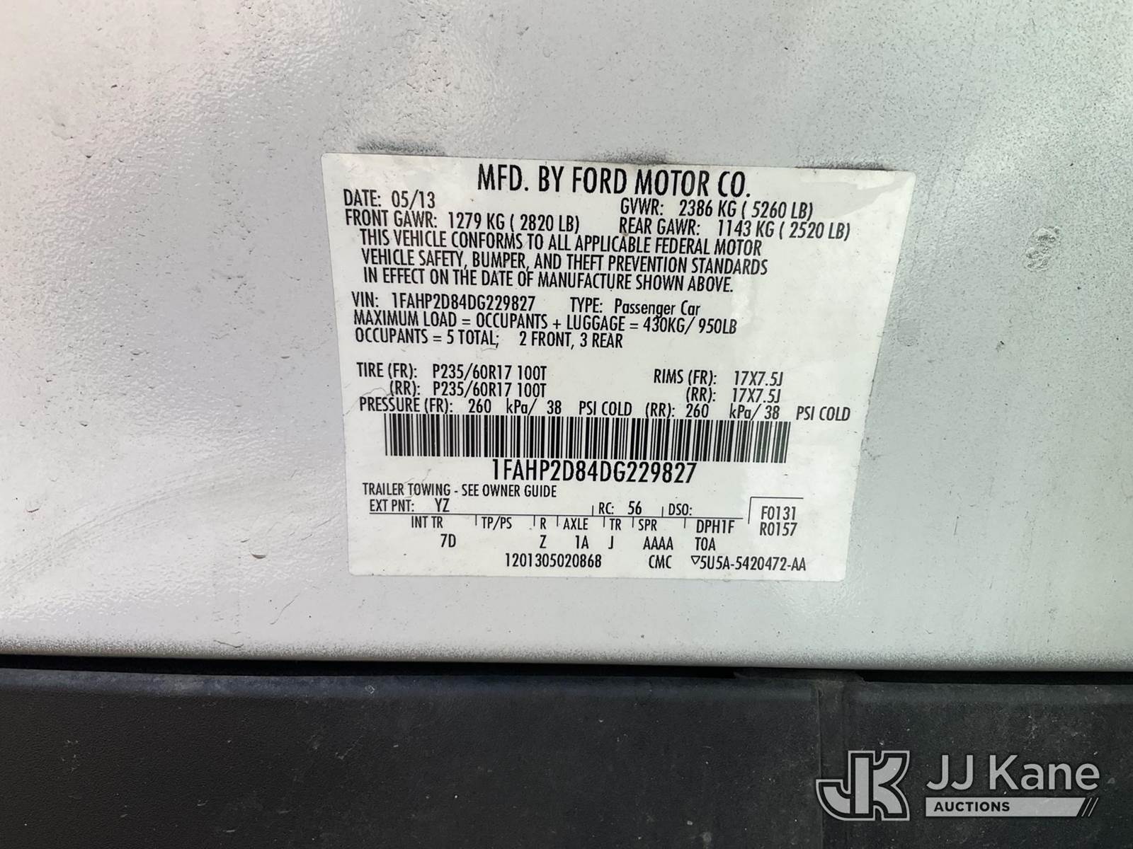 2013 Ford Taurus 4-Door Sedan, 6-cyl gas, 6-Speed Automatic, A/C, (59,050 miles) ((Runs & Moves)) This is a Titled Item NOTE: This unit is being sold AS IS/WHERE IS via Timed Auction and is located in Des Moines, IA. Inspection & preview days for this unit are the 2 business days prior to the first day of items closing for this auction, item is located at 1600 NE 66th Ave Des Moines, IA 50313 and hours of operations are 8a-4p. For pre-sale questions, please contact Eric Stewart @ (515) 626-0492. (Buyer is responsible for removal. Assistance by consignor or JJ Kane Auctions is not assured.)