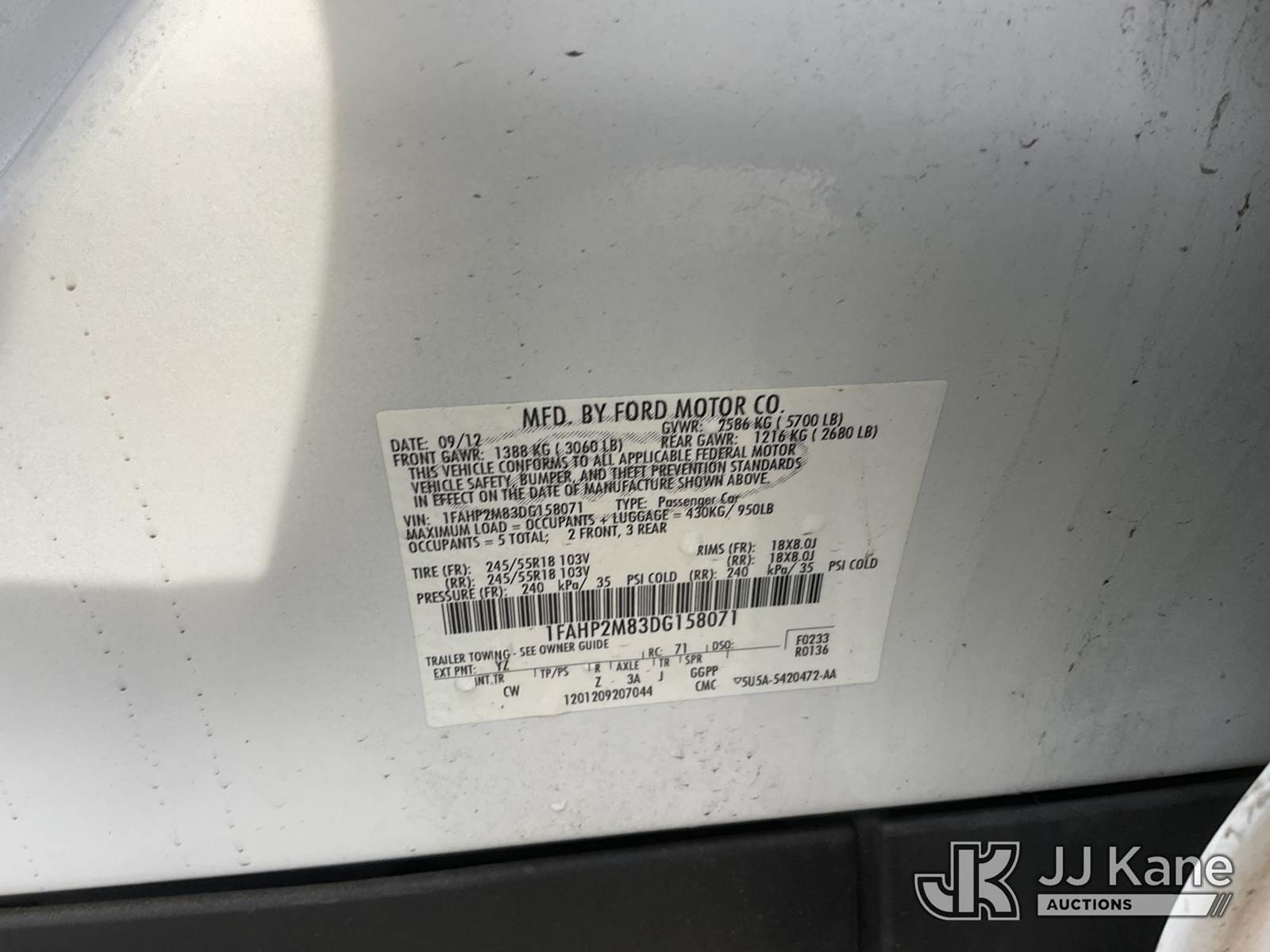 2013 Ford Taurus Police AWD 4-Door Sedan, s/n 1FAHP2M83DG158071, 3.5L V6 DOHC 24V Gas 6-Speed Automatic, (89,884 miles) (Runs & Moves) This is a Titled Item NOTE: This unit is being sold AS IS/WHERE IS via Timed Auction and is located in Jurupa Valley, CA. Inspection & preview days for this unit are the 2 business days prior to the first day of items closing for this auction, item is located at 4510 Muth Way Jurupa Valley, CA 92509 and hours of operations are 8a-4p. For pre-sale questions, please contact please contact Office Staff @ (310) 353-7140. Dealer License Number 45696. (Buyer is responsible for removal. Assistance by consignor or JJ Kane Auctions is not assured.)