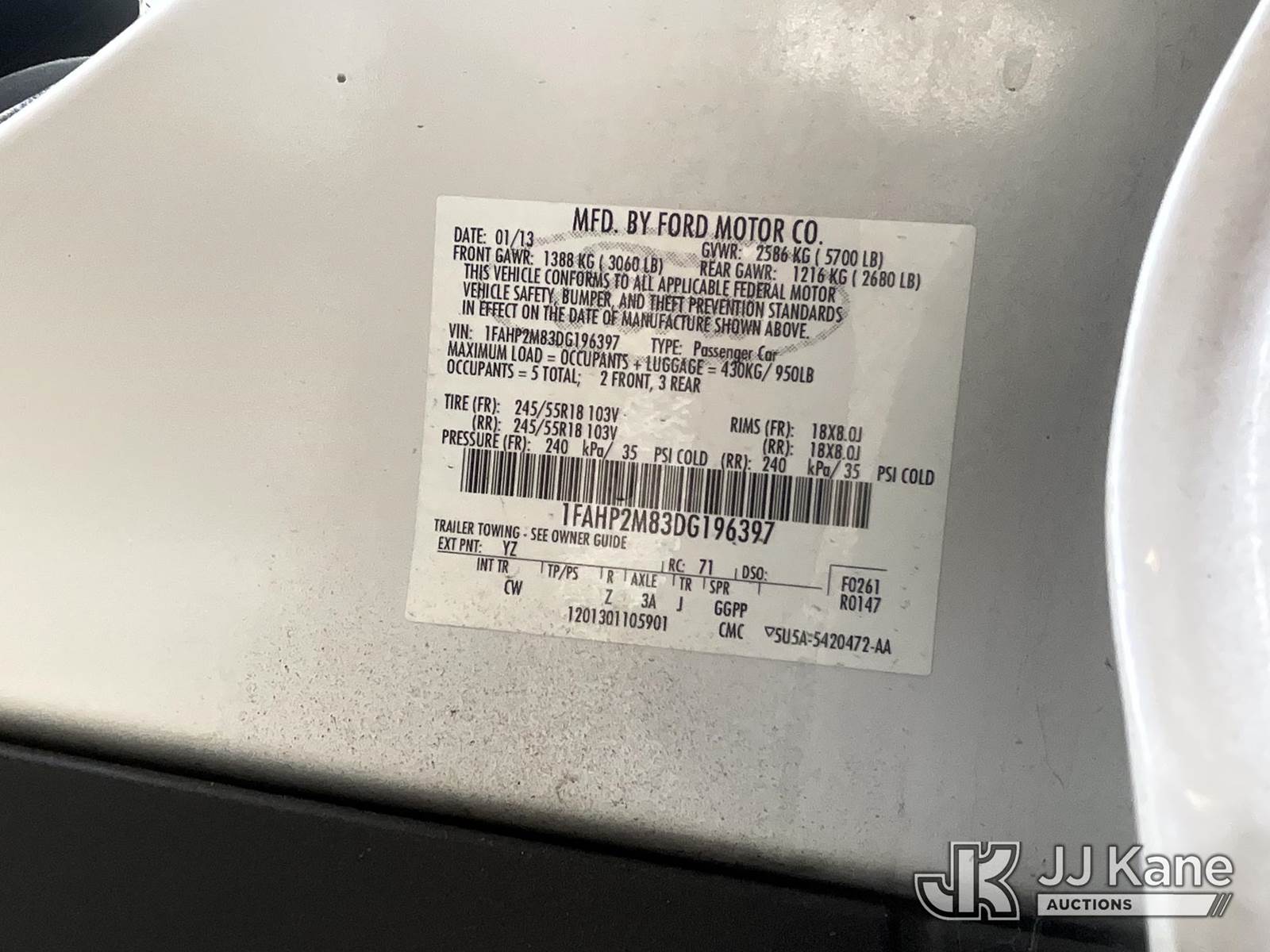 2013 Ford Taurus Police AWD 4-Door Sedan, 3.5L V6 DOHC 24V AWD, GAS, 6-Speed Automatic, A/C, (85,853 miles) (Runs & Moves) This is a Titled Item NOTE: This unit is being sold AS IS/WHERE IS via Timed Auction and is located in Jurupa Valley, CA. Inspection & preview days for this unit are the 2 business days prior to the first day of items closing for this auction, item is located at 4510 Muth Way Jurupa Valley, CA 92509 and hours of operations are 8a-4p. For pre-sale questions, please contact please contact Office Staff @ (310) 353-7140. Dealer License Number 45696. (Buyer is responsible for removal. Assistance by consignor or JJ Kane Auctions is not assured.)
