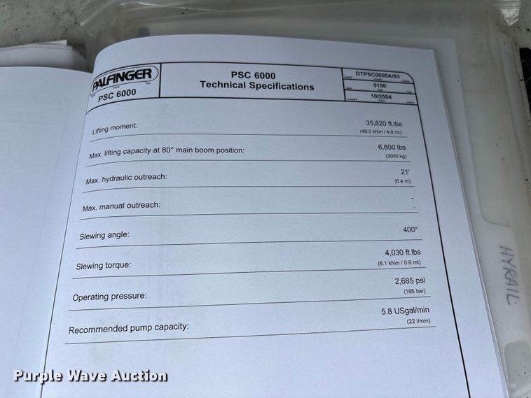 2012 Palfinger PSC 6000