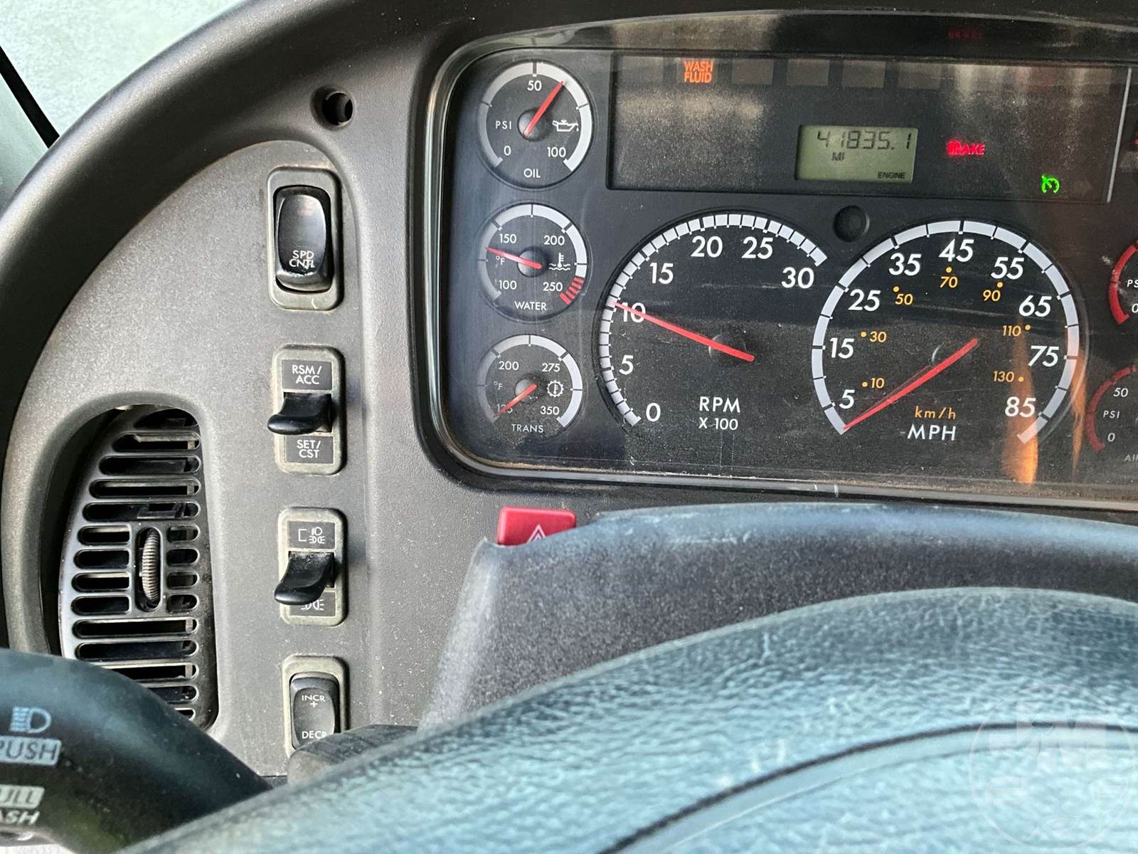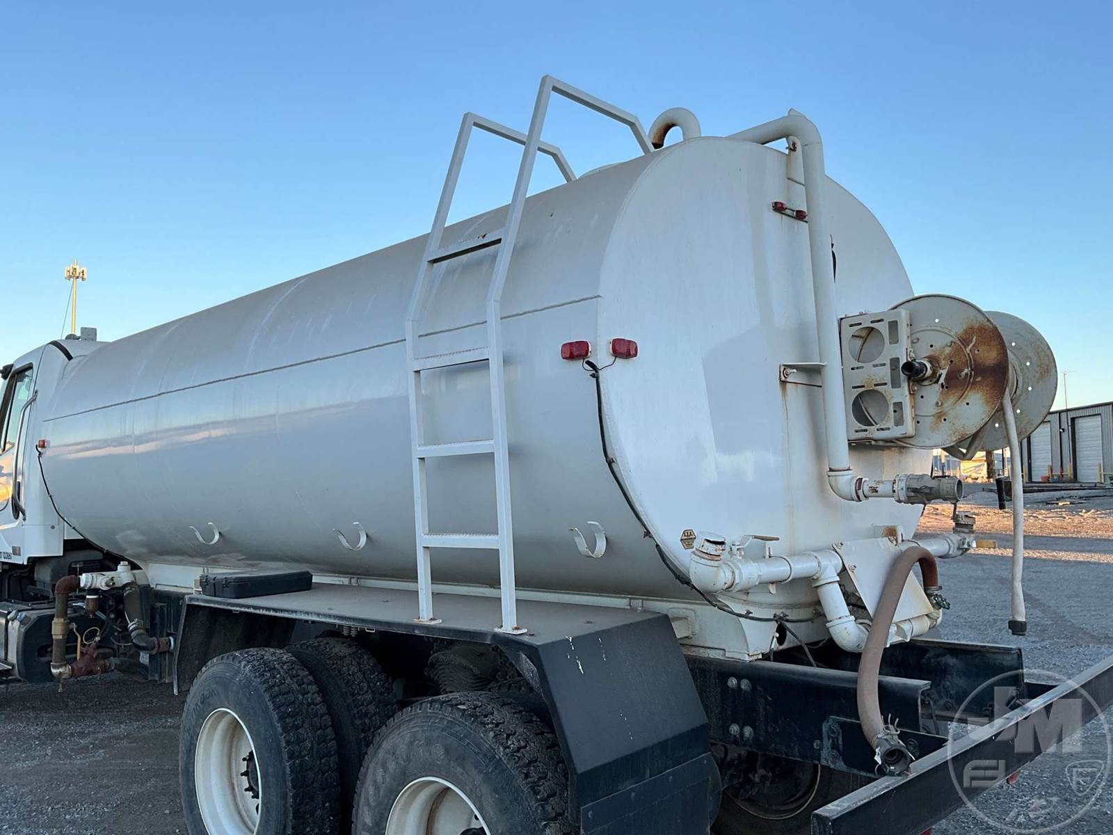 TANDEM AXLE WATER TRUCK, CUMMINS, ALLISON, AUTOMATIC, SPRING SUSPENSION, 227 " WB, DIFF LOCK, CRUISE CONTROL, FRONT, REAR, REAR HOSE REEL DISCHARGE, 16K FRONTS, 40K REARS, STEEL DISC WHEELS, 315/80R22.5 STEER TIRES, 11R22.5 TIRES, 4000 GAL. CAPACITYÂ , HOUR METER READS: 5328, ODOMETER READS: 41835