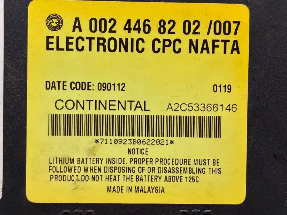 (Used) 2013 Freightliner Cascadia 125 ECMs (Control Modules) BODY ECMs- Make: ELECTRONIC CPC NAFTA, Part Number: A 002 446 82 02/ 007, Serial Number: 7110923B0622021, Date Code: 080917 0080, CONTENENTAL A2C53333146, Freightliner A0024468202 Freightliner A0054460702 2011-2014 Freightliner 108SD 2011-2014 Freightliner 114SD 2011-2014 Freightliner 122SD 2011-2014 Freightliner B2 2011-2014 Freightliner CORONADO 2011-2014 Freightliner M2 100 2011-2014 Freightliner M2 106 2011-2014 Freightliner M2 112 2011-2014 Western Star Trucks 4700 2011-2014 Western Star Trucks 4800 2011-2014 Western Star Trucks 4900 2011-2014 Western Star Trucks 4900E 2011-2014 Western Star Trucks 4900EX 2011-2014 Western Star Trucks 4900FA 2011-2014 Western Star Trucks 6900 2011-2015 Freightliner CASCADIA Freightliner 108SD-Western Star Trucks 6900 2011-2015 (CPC2+, Detroit EPA10, P# A0024468202, A0054460702) 3 Rectangular Plug with 18 Pins each, 1 Rectangular Plug with 21 Pins, Reference images for condition. For more information about this item. give us a call. We ship Worldwide! (CRG HEAVY TRUCK PARTS) 929 W PULASKI HWY, ELKTON MD 21921