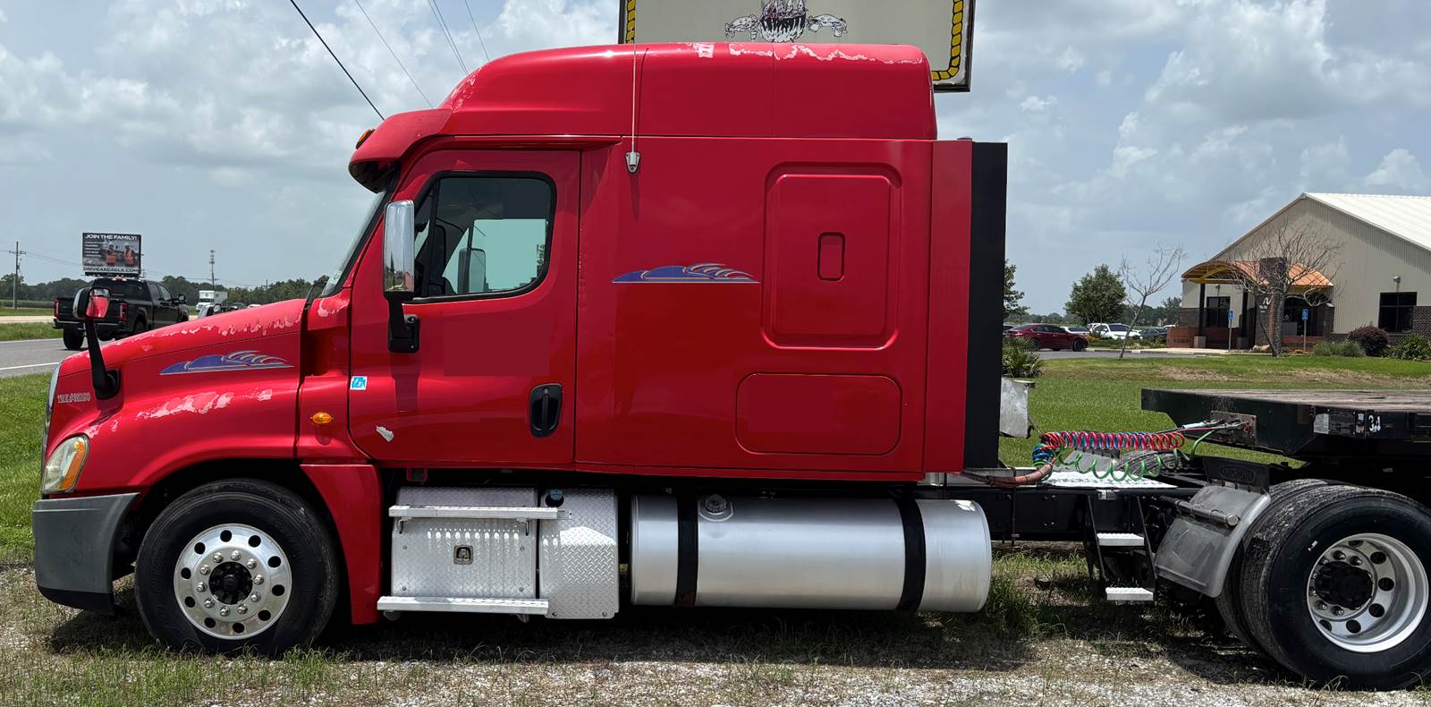 2013 Freightliner Cascadia 125 Sleeper, 500HP Detroit DD15, Tandem Axle, 10 Speed, Def Deleted, Air Ride 5th Wheel, Aluminum wheels, tires good, brakes good, headache rack, 72" Mid roof Sleeper.
