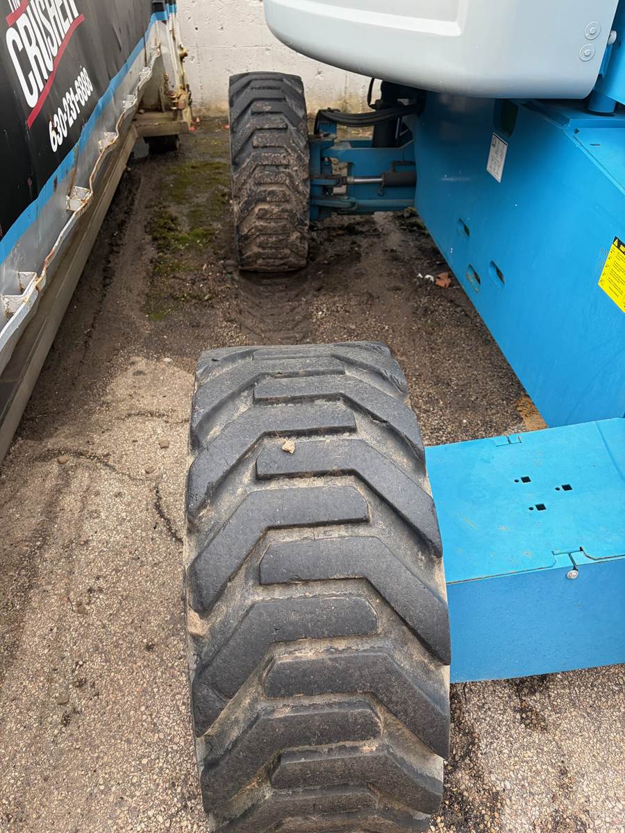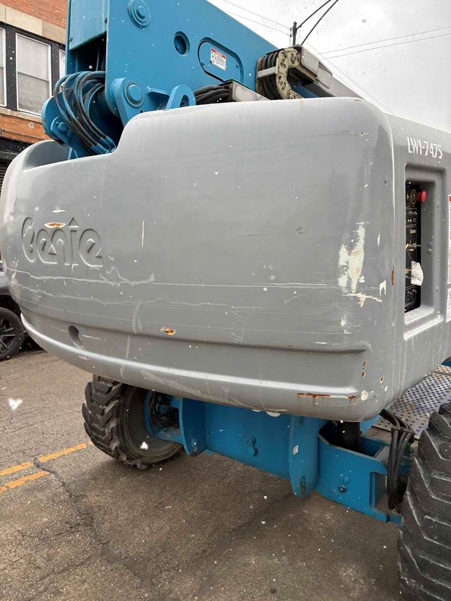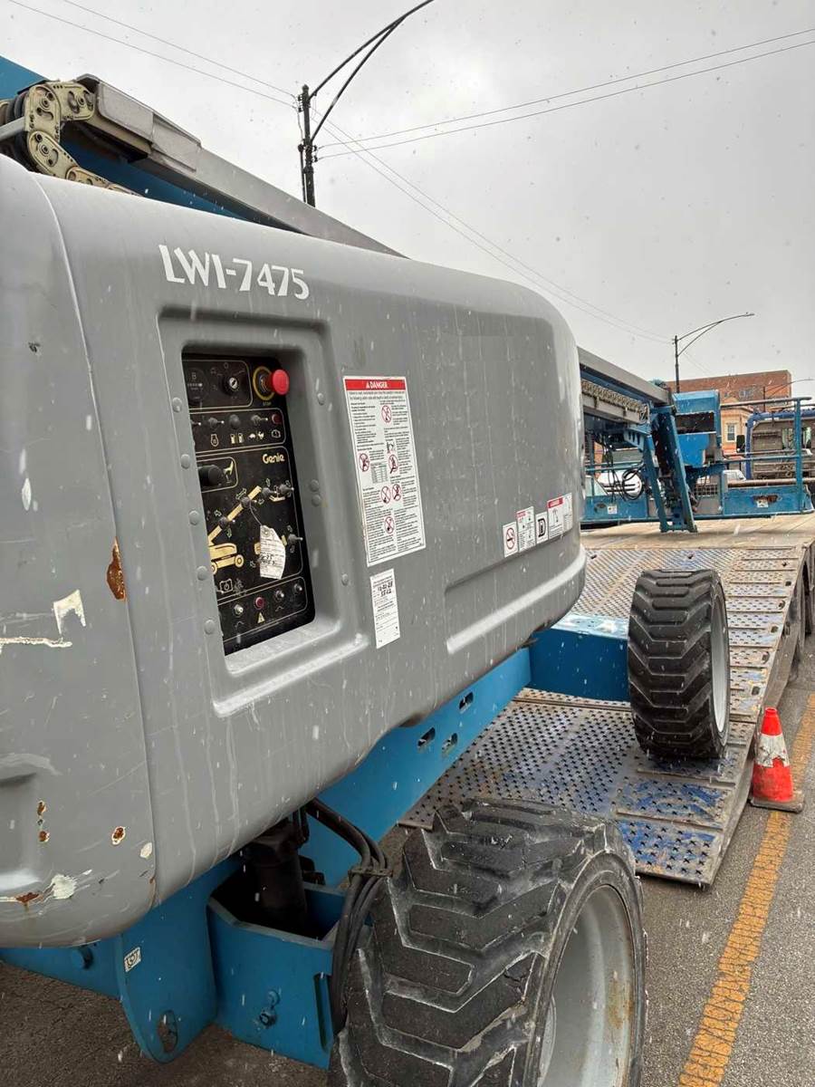 2013 Genie S65 telescopic boom lift located FOB Chicago, Illinois (USA). Powered by a reliable Deutz diesel engine, this 4WD unit has 5,570 operating hours and delivers a 71 ft working height and 65 ft platform height. Equipped with foam-filled tires for enhanced durability and reduced downtime on rough job sites.